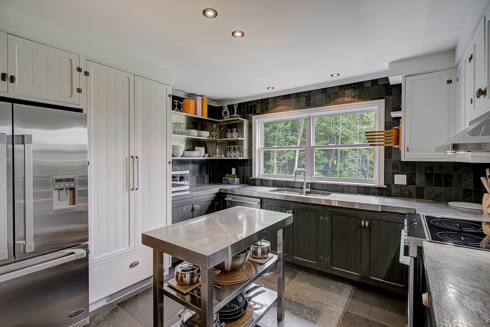 - Kitchen: new slate floor, stainless steel countertop, taps, dishwasher and cooker