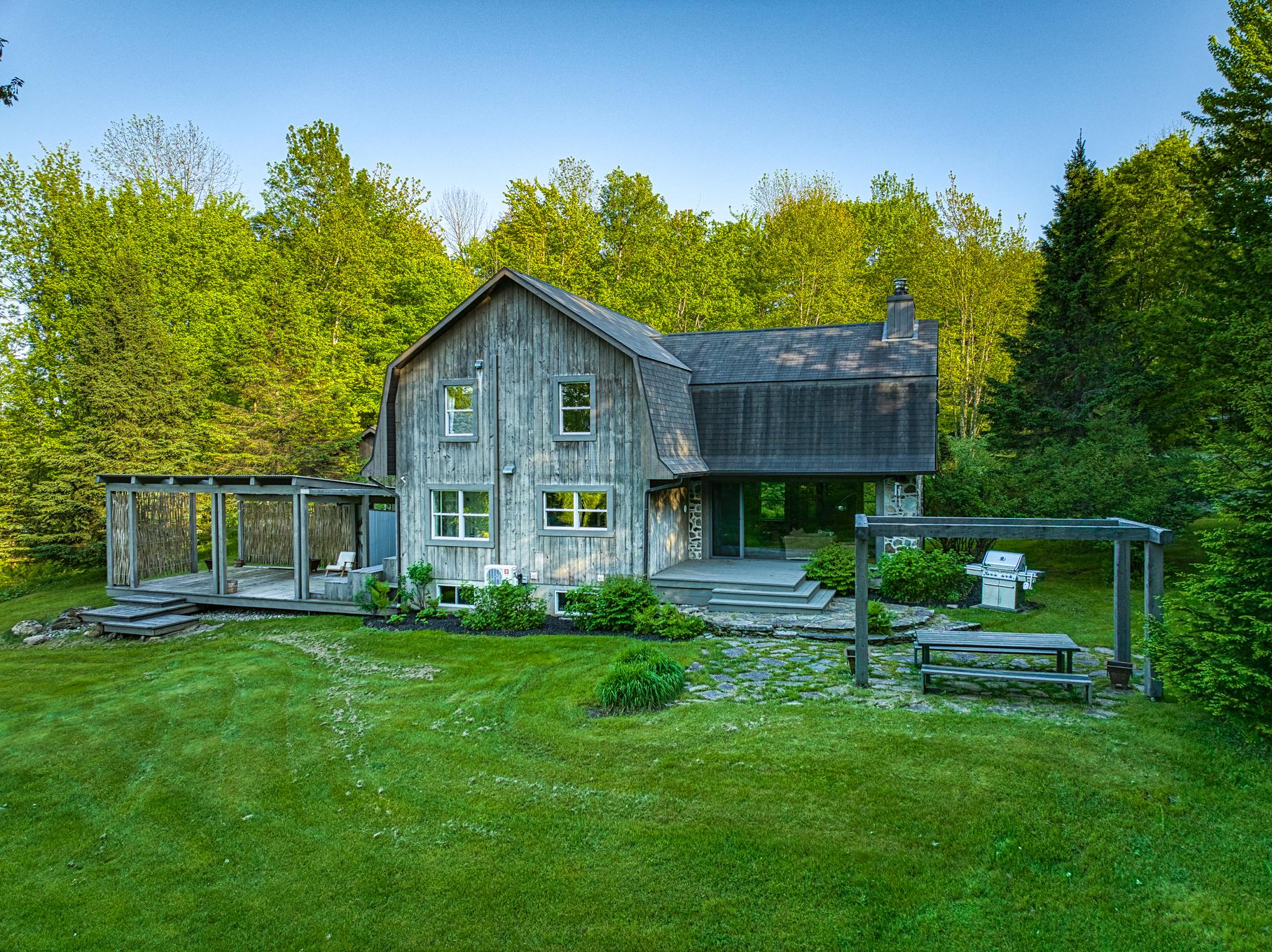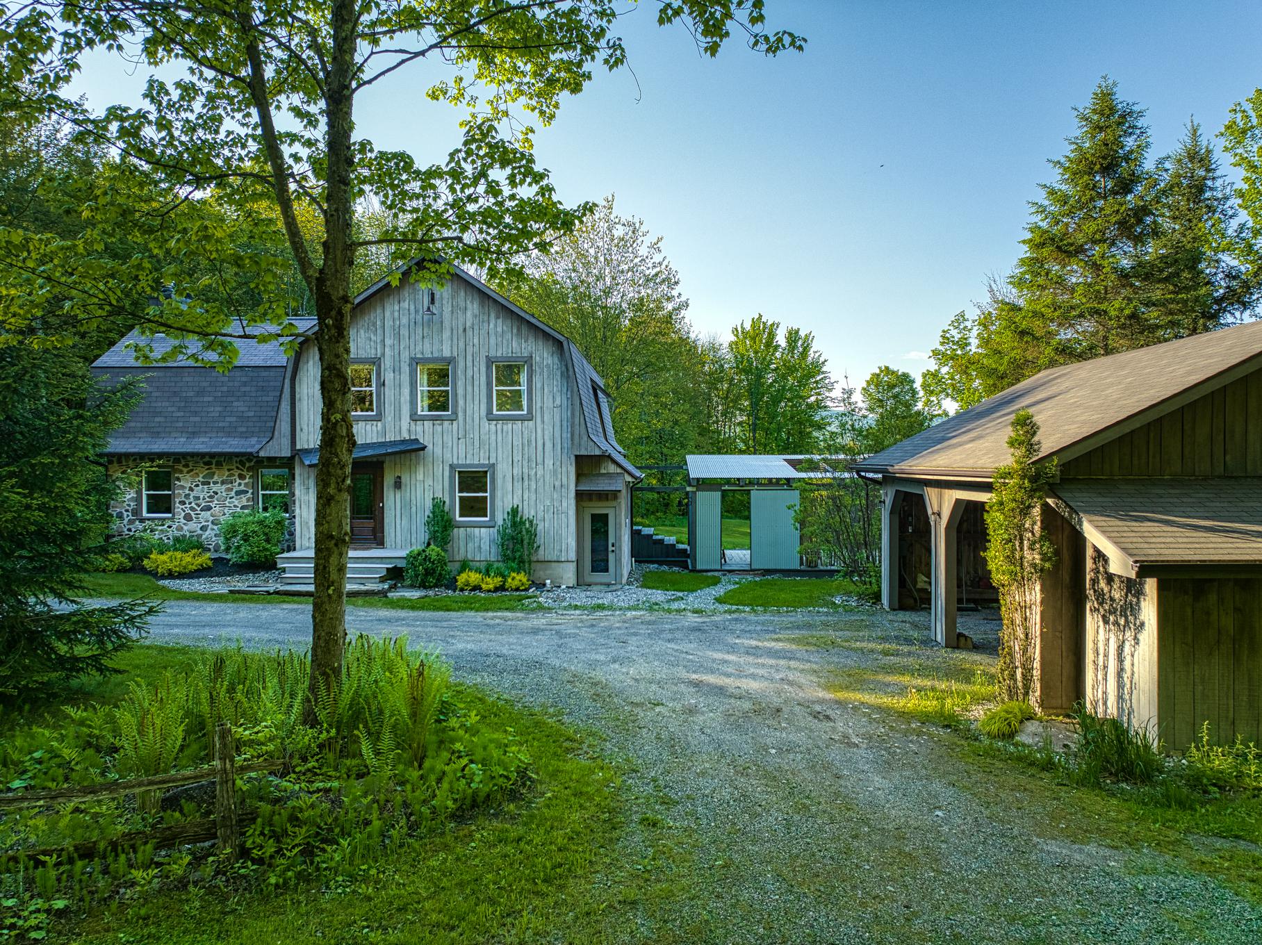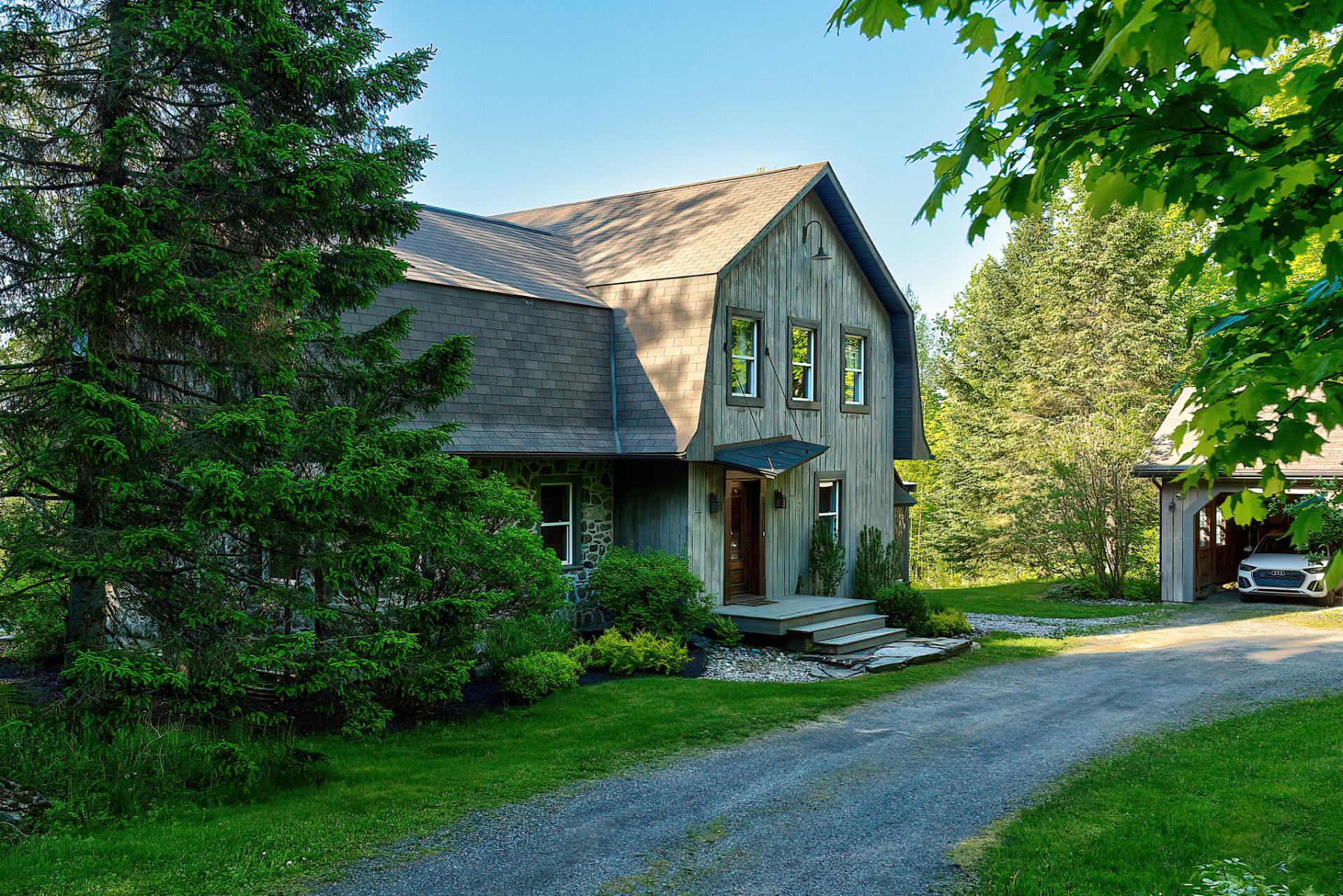*A FEW MINUTES OF SKI BROMONT* In one of Bromont's most sought-after, highly private and homogeneous areas, you'll find a 5 acres property offering exceptional views of the surrounding mountains. This property, the fruit of the talent of an architect and designer, is nestled in an enchanting estate. Its warm, atypical look, with its wood panelling and generous windows providing plenty of natural light, make it a real haven of peace. This estate comprises a main house, a double carports and a loft-style accessory building. You'll be just a few minutes from Bromont's ski slopes and essential services.