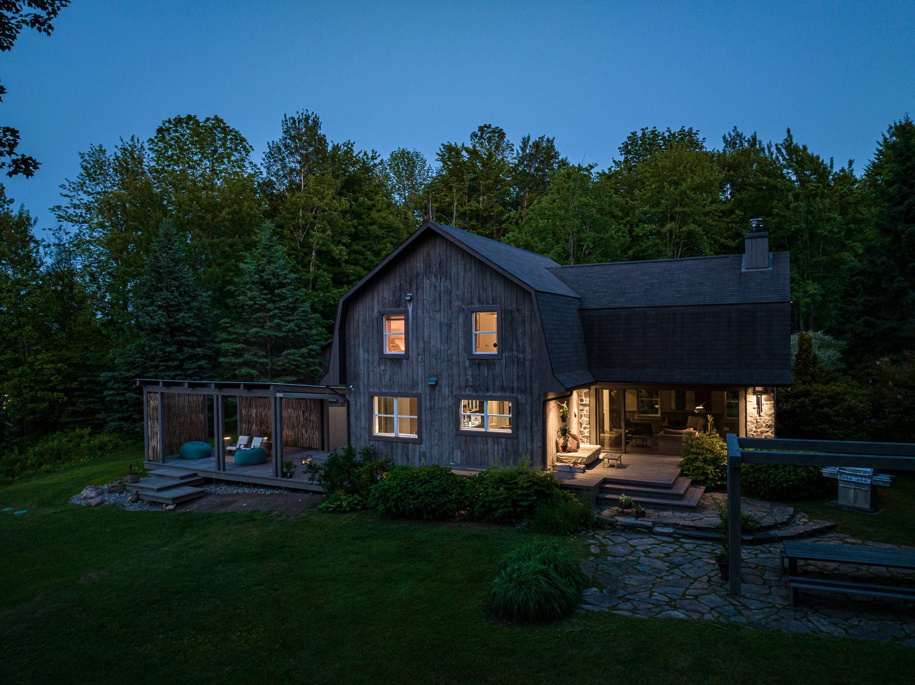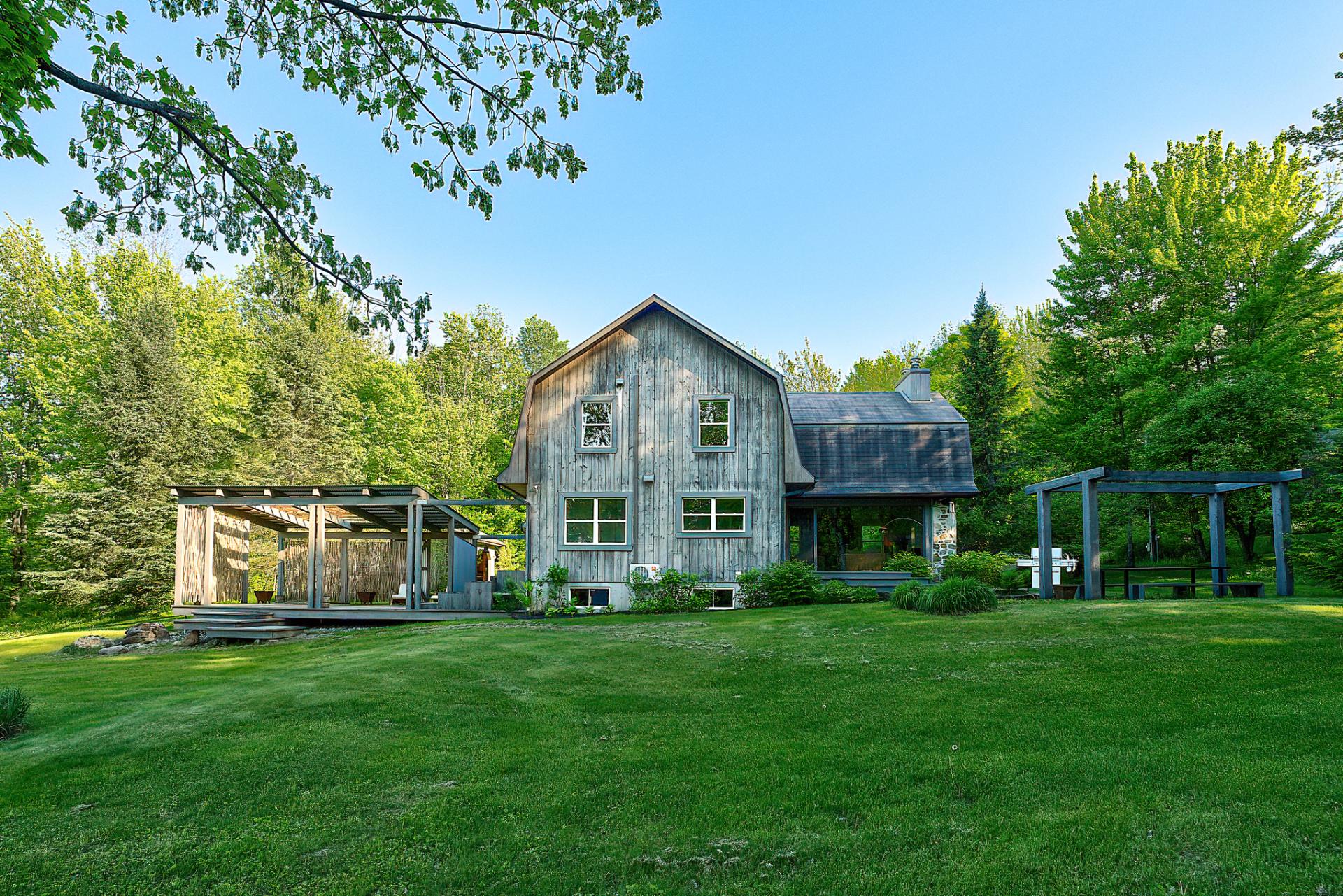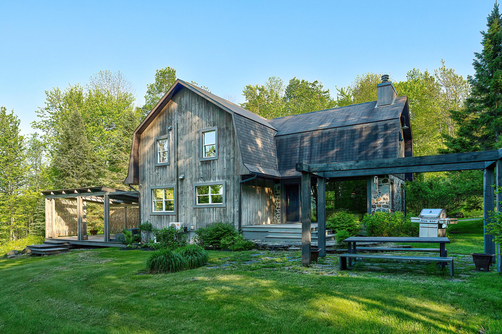 *A FEW MINUTES OF SKI BROMONT* In one of Bromont's most sought-after, highly private and homogeneous areas, you'll find a 5 acres property offering exceptional views of the surrounding mountains. This property, the fruit of the talent of an architect and designer, is nestled in an enchanting estate. Its warm, atypical look, with its wood panelling and generous windows providing plenty of natural light, make it a real haven of peace. This estate comprises a main house, a double carports and a loft-style accessory building. You'll be just a few minutes from Bromont's ski slopes and essential services.