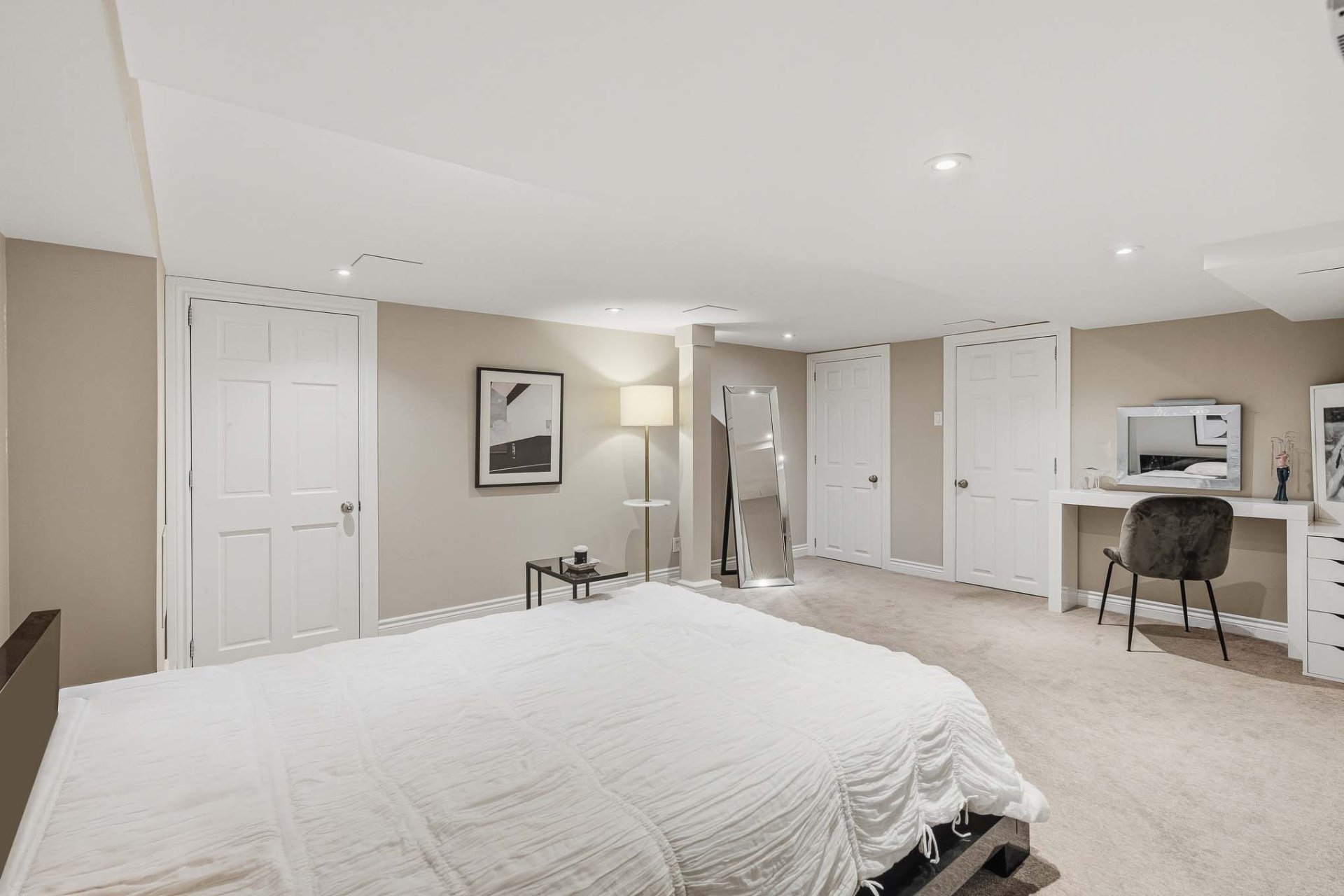 The fully finished lower level features a private fifth bedroom with walk-in closet and ensuite, plus a mudroom, ample storage, and direct exterior access.