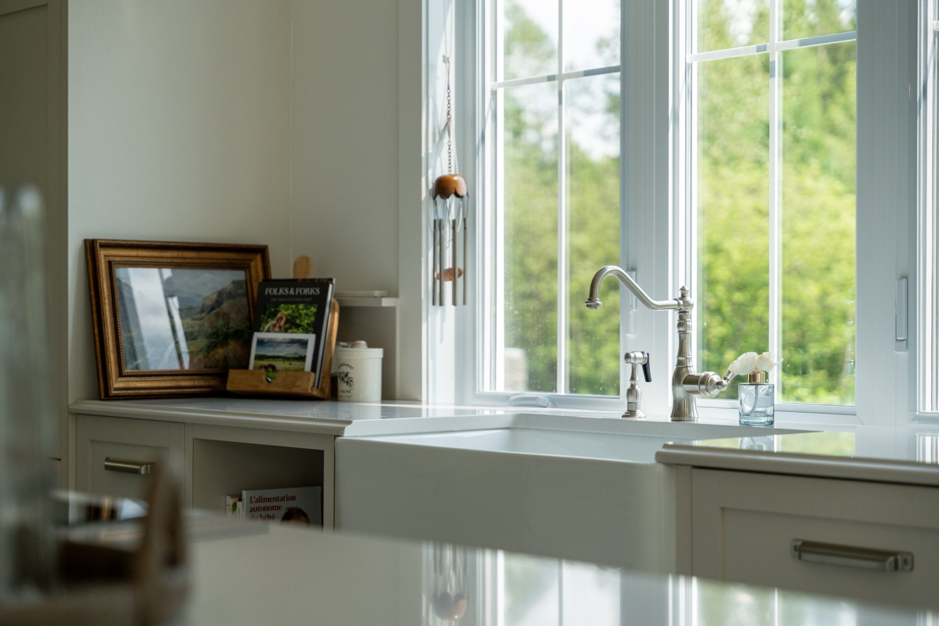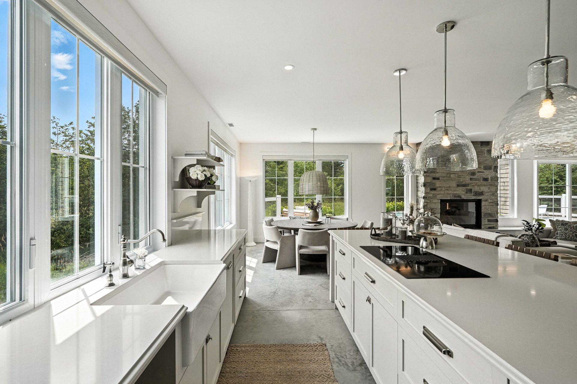 From the moment you enter, the clean lines and abundance of natural light take center stage. The entrance hall, with its stone wall, sets the tone for an interior full of character. The kitchen--truly the heart of the home--features Cape Cod-inspired aesthetics with shaker cabinets, quartz countertops, and a farmhouse sink. It is not only inviting but also highly functional.