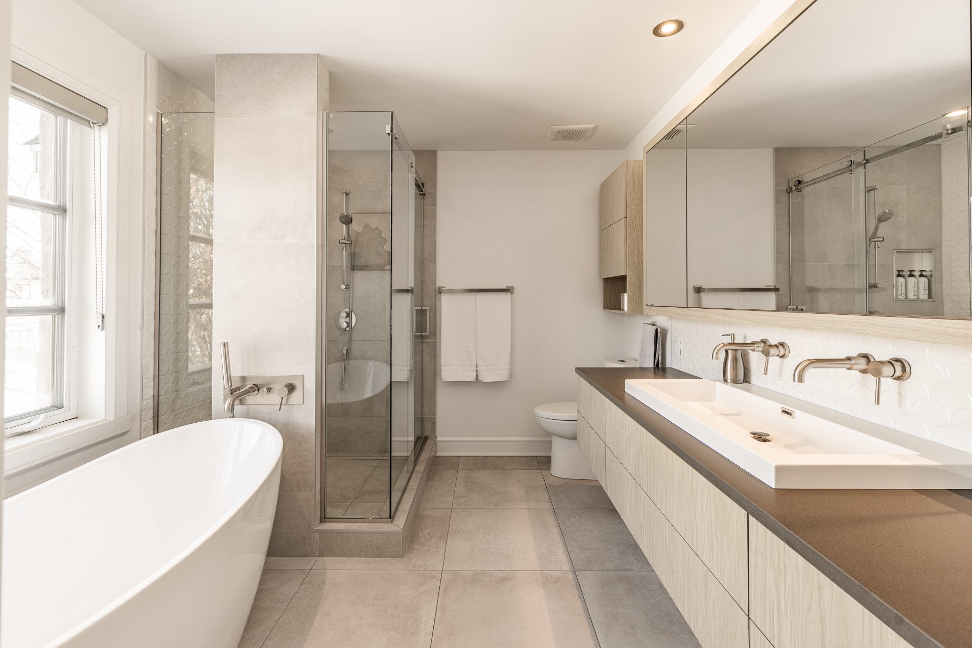 * Extension with bedroom/office including a Murphy bed and a new bathroom with ceramic shower, double vanity and quartz countertop