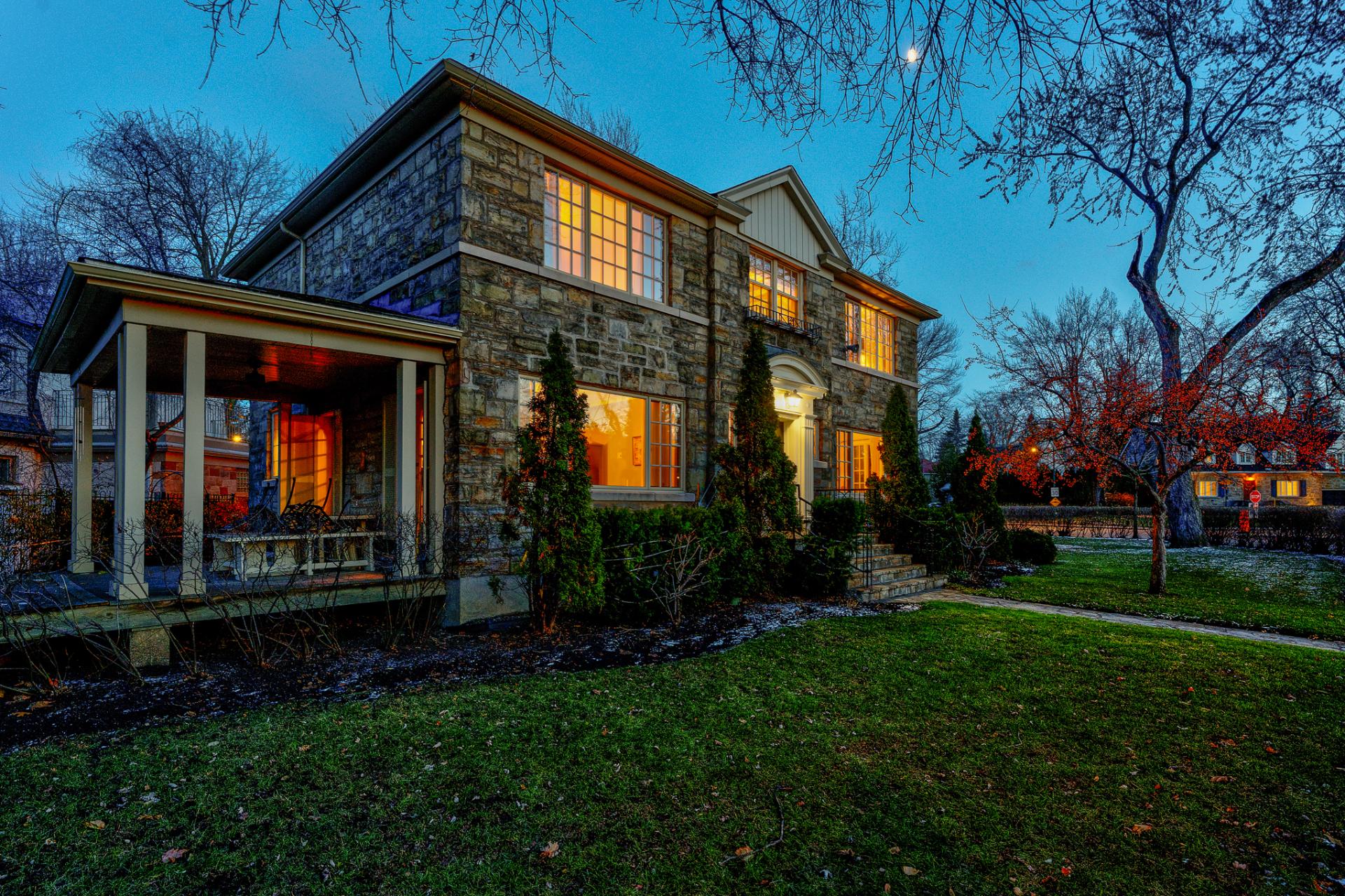 Located on a rare corner lot facing the magnificent Kindersley Park in Town of Mount Royal, this elegant stone house stands out for its classic architecture and exceptional brightness. It exudes elegance with its generous reception areas: a living room with fireplace, a light-filled dining room and a superb boudoir. Upstairs, a sought-after family layout with three harmoniously proportioned bedrooms, including the master suite with private bathroom. Large family room in the basement, a lovely covered terrace, driveway and garage. A combination of the distinction of heritage homes and the exceptional living environment of TMR.