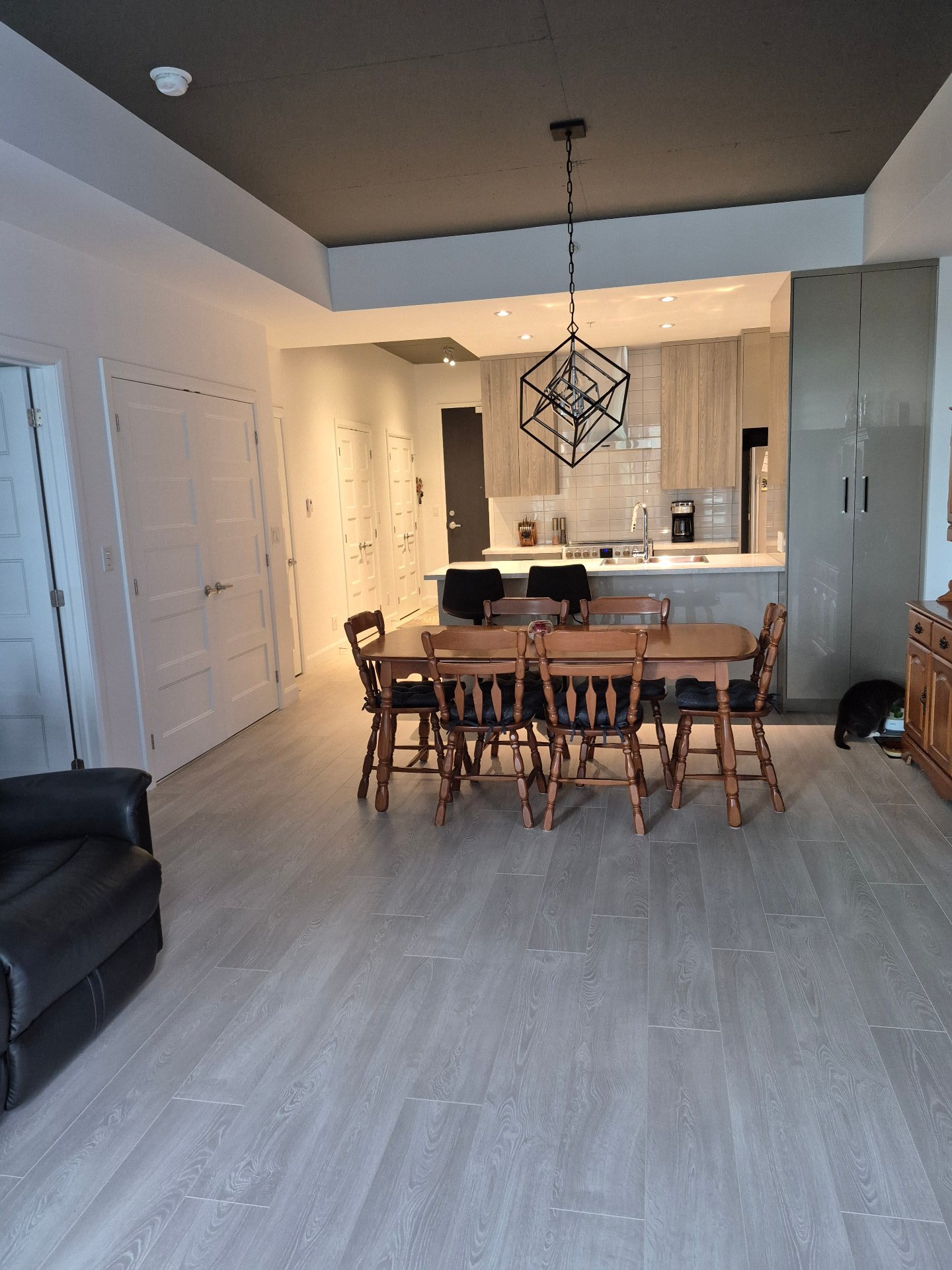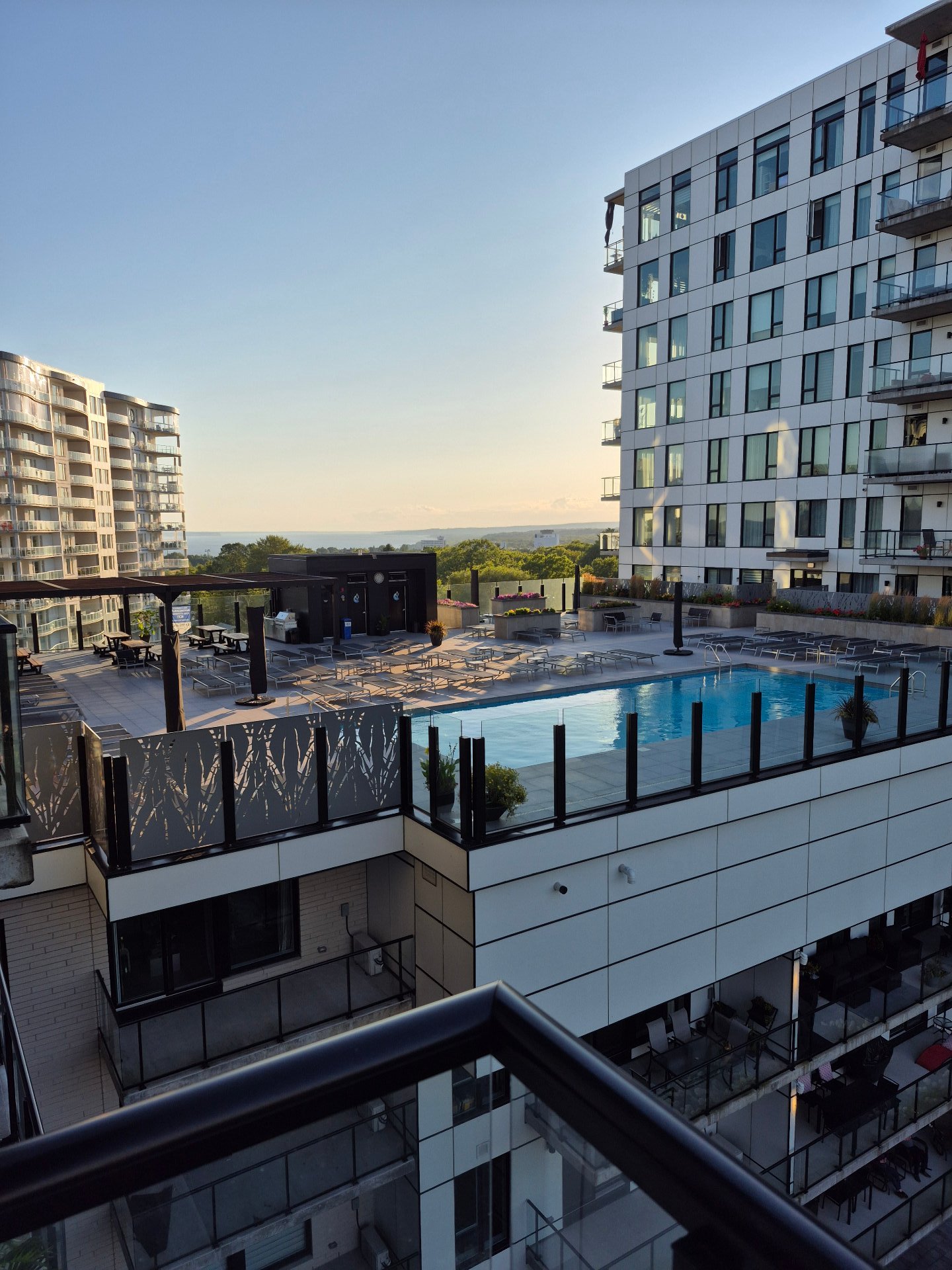 Stunning 1-bedroom luxury condo! Available from October 2025 to June 2026, this bright, high-end 7th-floor unit offers breathtaking views of the river, pool, sunsets, and mountains. Superior soundproofing, large shower, freestanding tub, polymer cabinets, generous windows, and low heating costs. Includes a heated indoor garage and basement storage. Additional parking available ($). Access to gym, billiard room, indoor golf, and reading lounge. A true turnkey living experience!