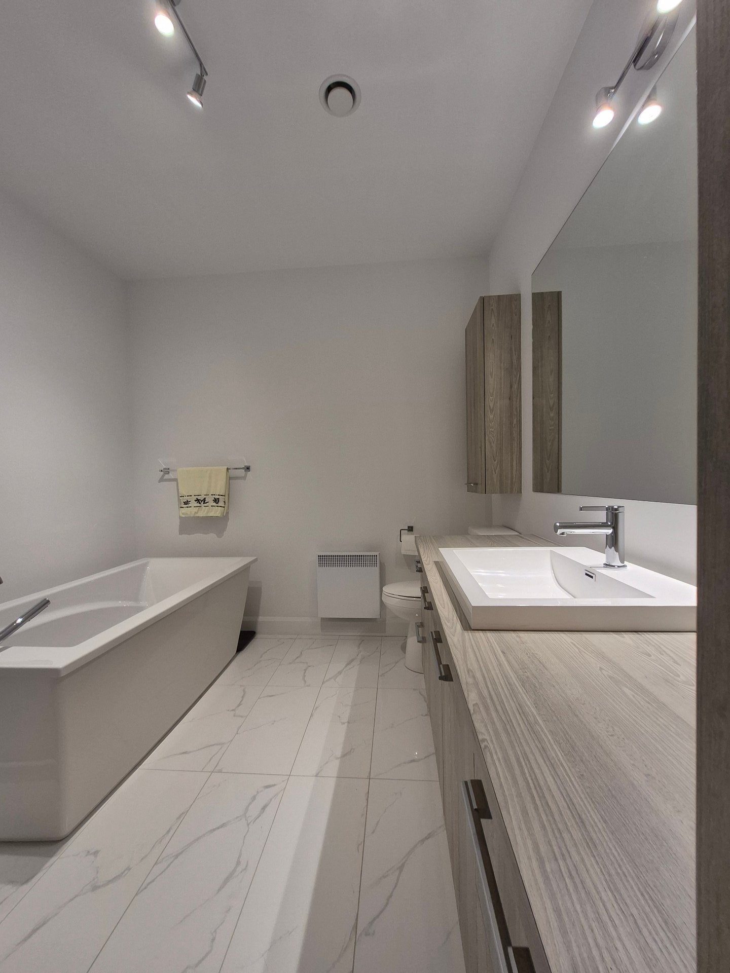 High-end condo located in a modern, impeccably maintained building offering a luxurious and peaceful lifestyle. Exceptional soundproofing, two elevators, heated indoor garage, and large storage space in the basement. Residents enjoy premium amenities including an outdoor pool, fully equipped gym, billiard room, indoor golf simulator, and reading lounge. The property stands out for its comfort, security, and superior maintenance.