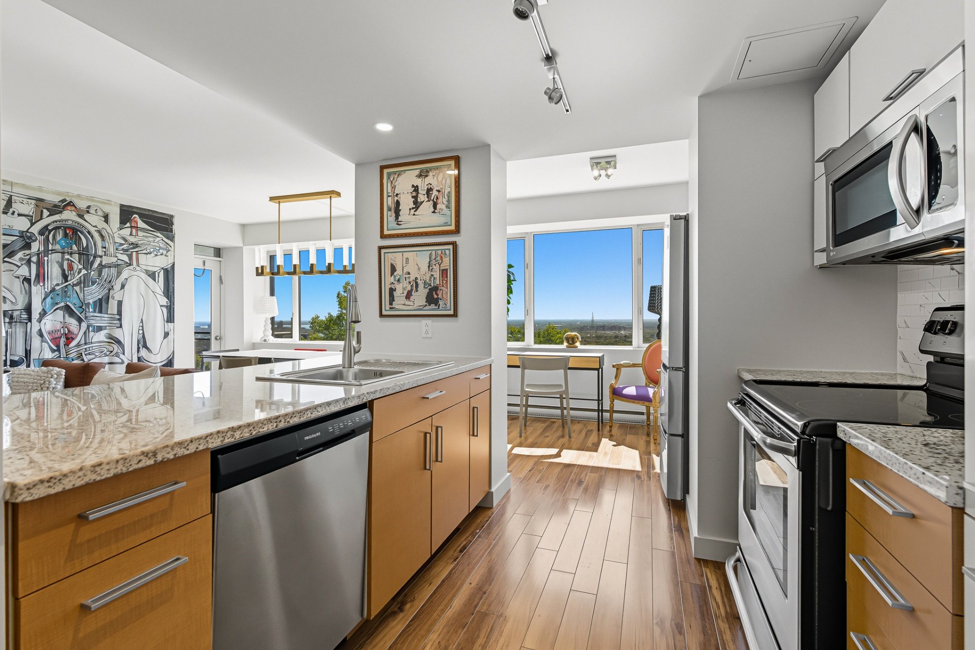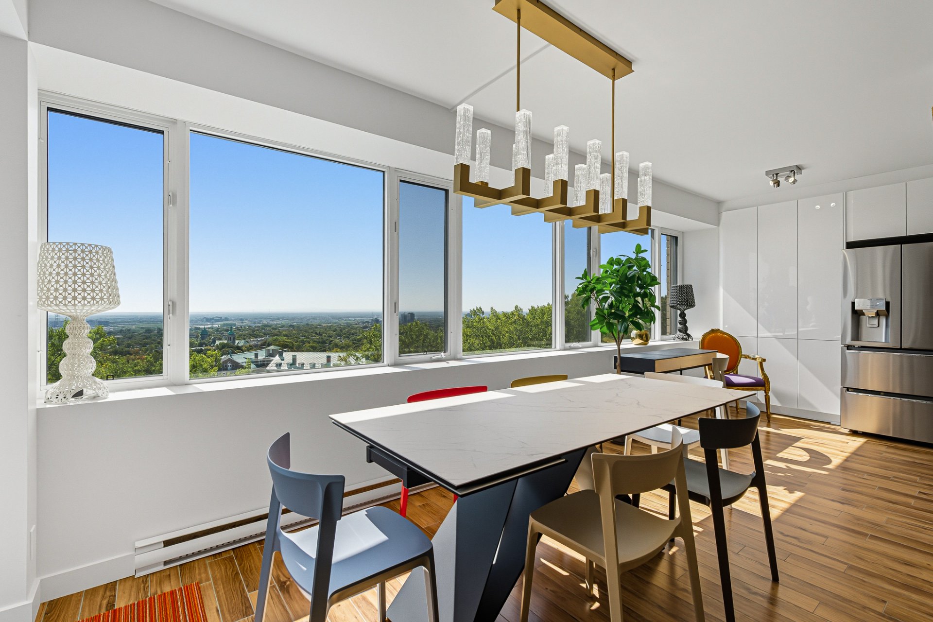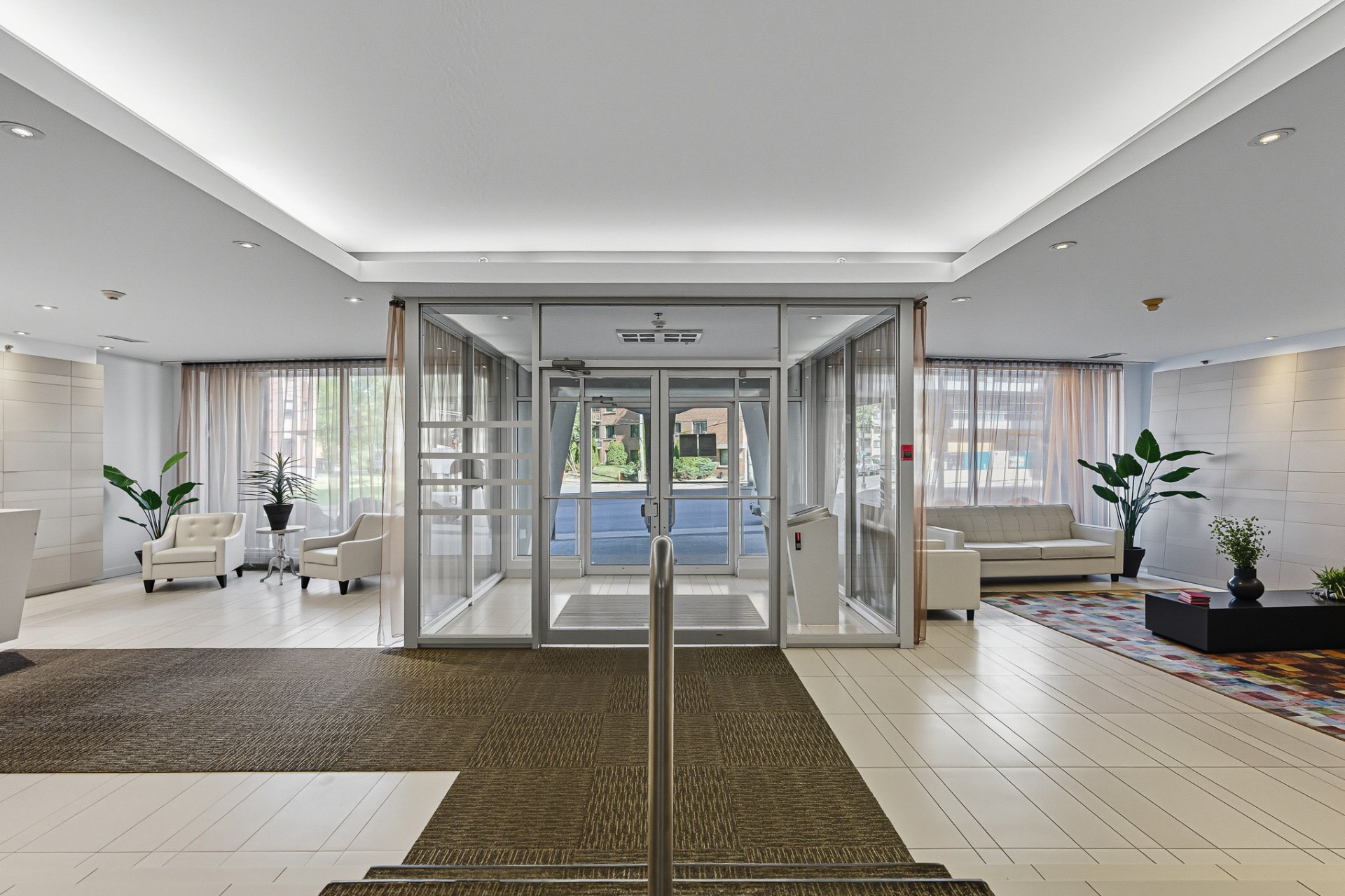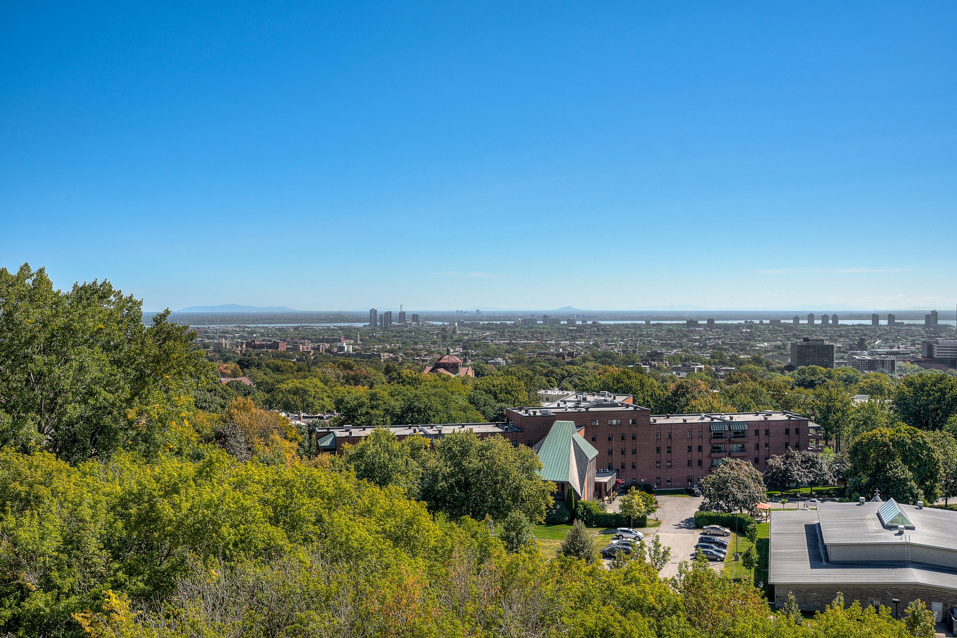 Welcome to the Montebello! Stunning 1-bedroom condo on the 8th floor, south-facing and filled with natural light. Open-concept layout with living room, dining area, and modern kitchen featuring quartz countertops. Elegant bathroom with granite finishes, ventless washer/dryer, and central air conditioning. Enjoy a large private balcony with unobstructed views and one exterior parking space. Ideally located near Westmount, Downtown, Mount Royal Park, Villa-Maria metro, and top-rated schools. Undivided co-ownership (no Welcome Tax).