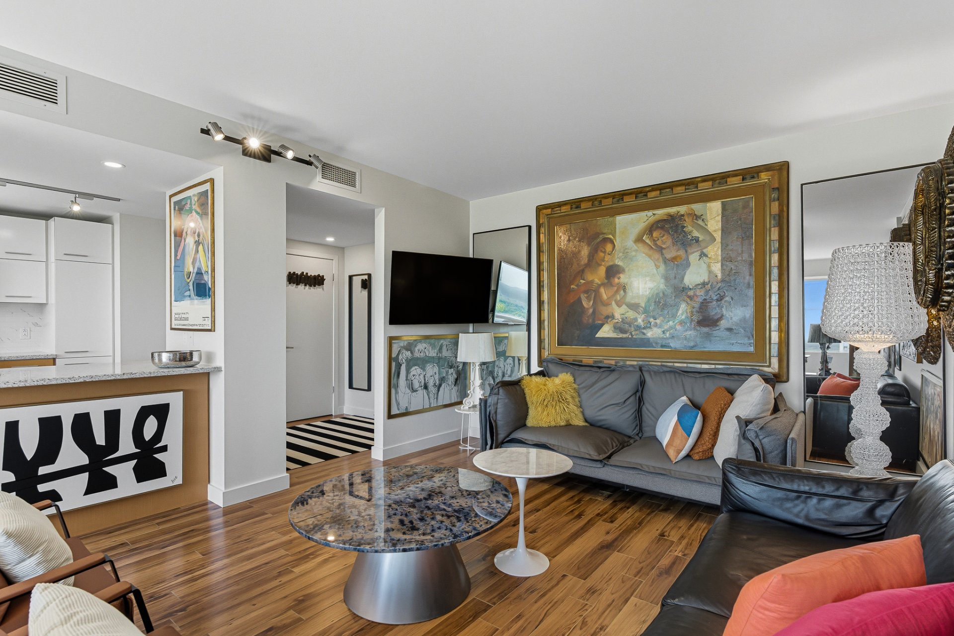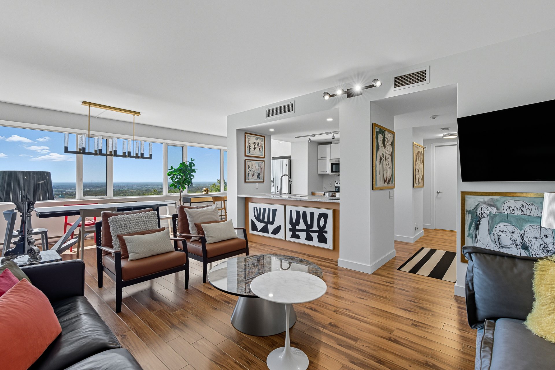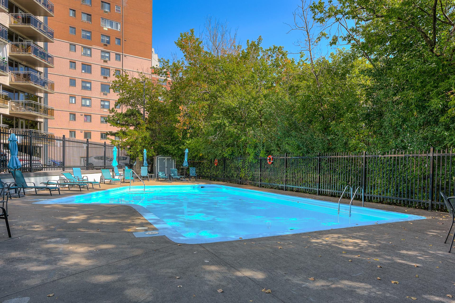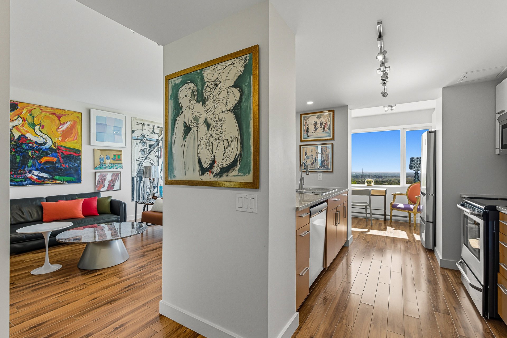 Welcome to the Montebello! Stunning 1-bedroom condo on the 8th floor, south-facing and filled with natural light. Open-concept layout with living room, dining area, and modern kitchen featuring quartz countertops. Elegant bathroom with granite finishes, ventless washer/dryer, and central air conditioning. Enjoy a large private balcony with unobstructed views and one exterior parking space. Ideally located near Westmount, Downtown, Mount Royal Park, Villa-Maria metro, and top-rated schools. Undivided co-ownership (no Welcome Tax).