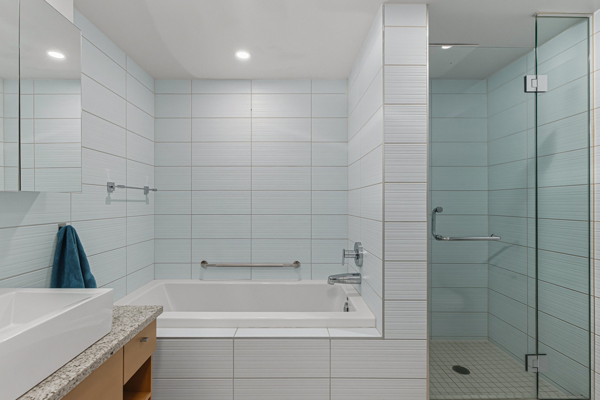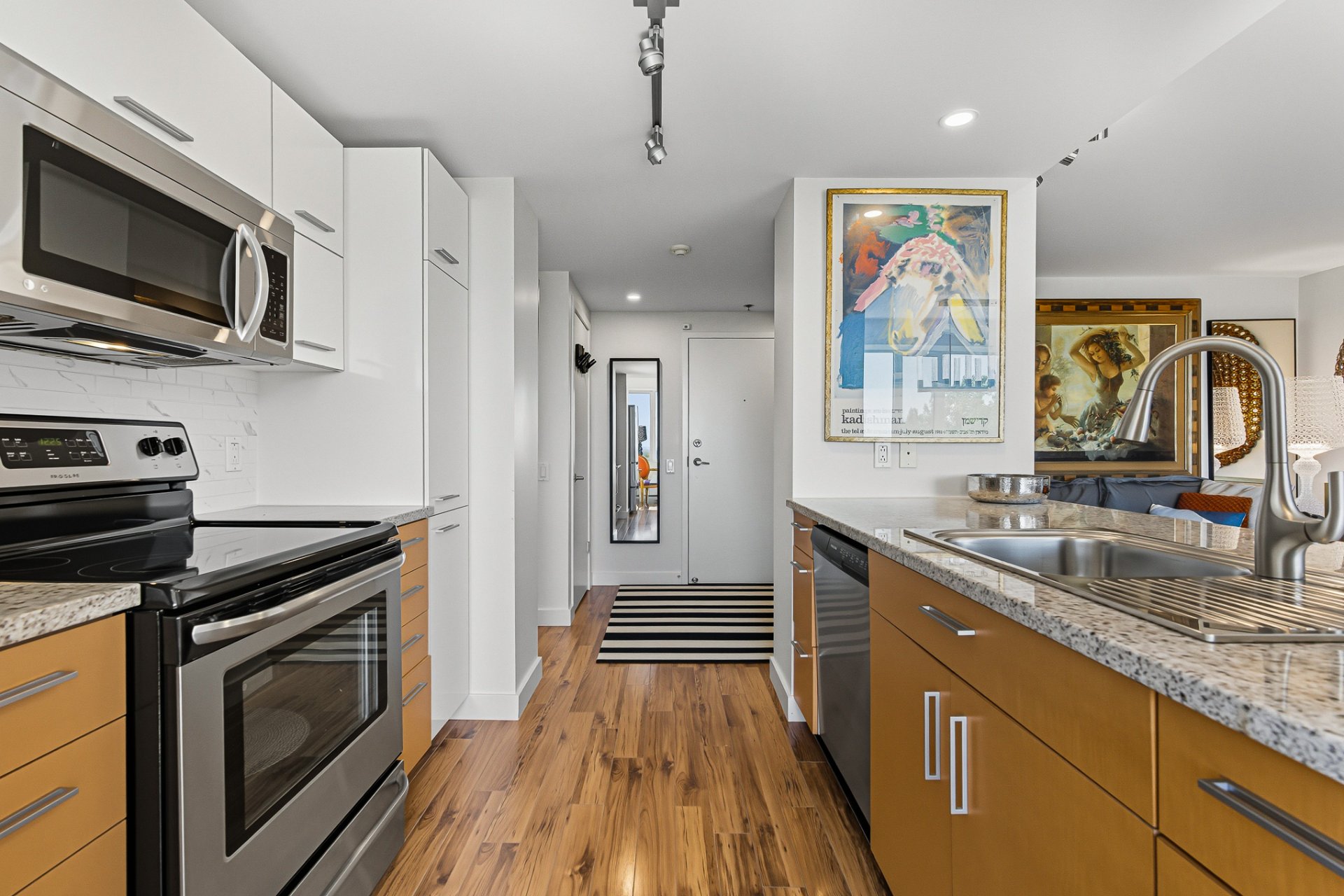 The bedroom offers a generous retreat with closet space, while the elegant bathroom is finished with granite surfaces.