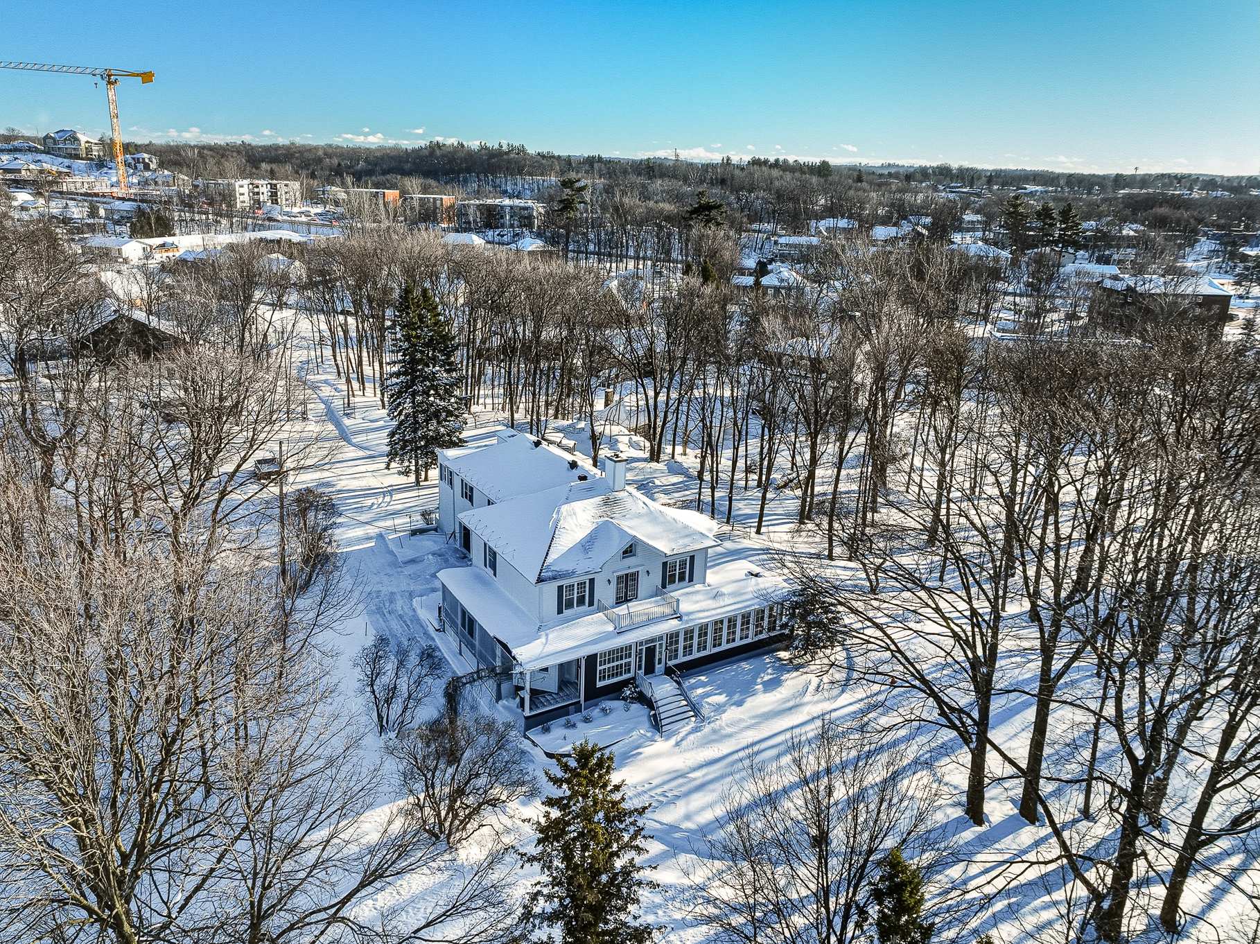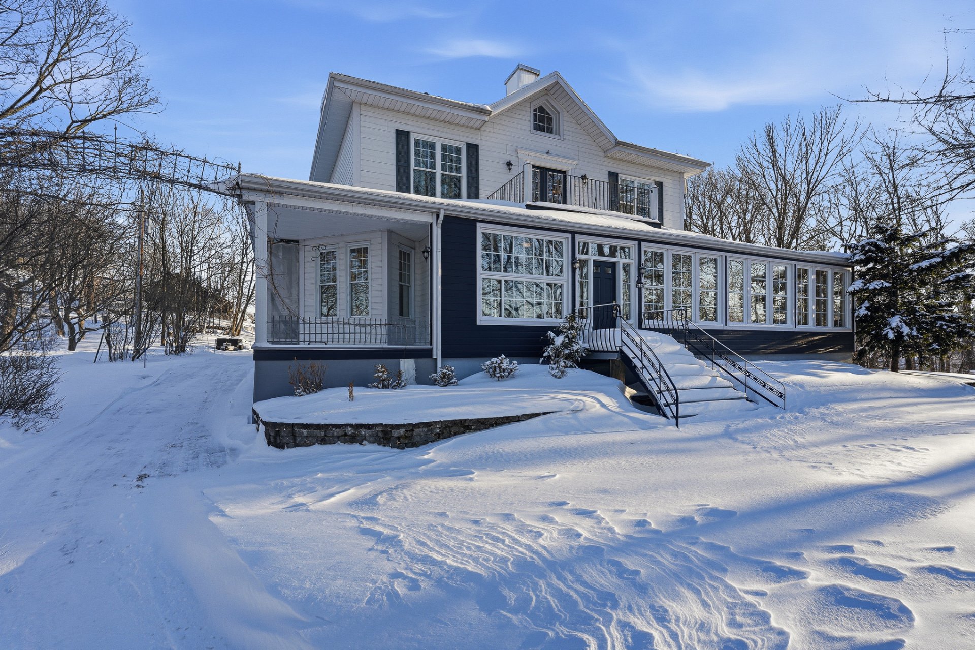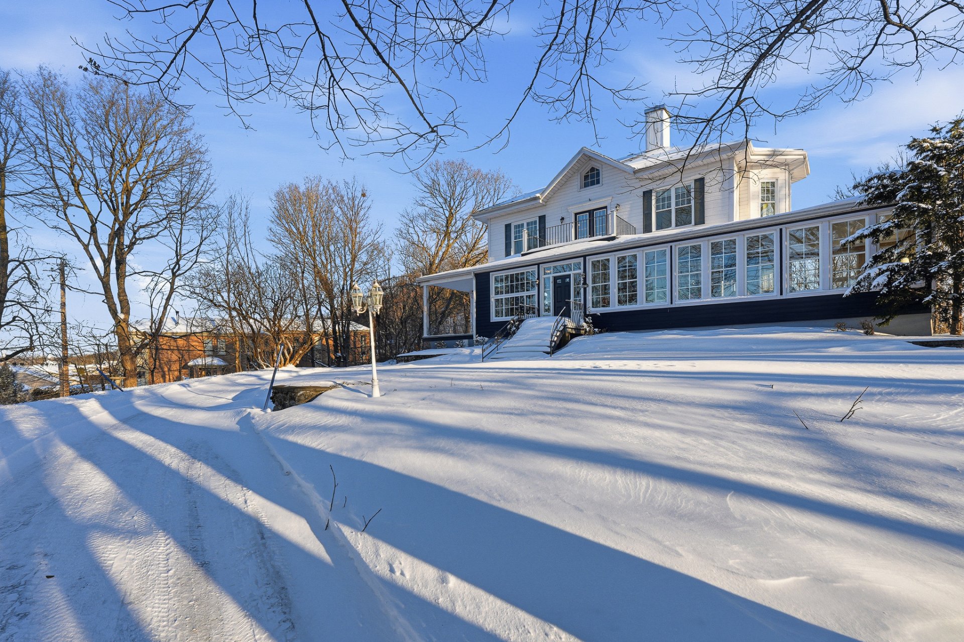 Le Grand Prieuré de Lévis (1890) - A rare heritage estate in the heart of Lévis, just 15 minutes from the bridges. Nestled in an exceptional setting surrounded by mature trees and accessed by a majestic tree-lined driveway, this remarkable ancestral residence will appeal to lovers of character and expansive living spaces. Offering 6,549 sq. ft. of living area: 4 bedrooms, office, boudoir, sun-filled solarium and a spacious attic with great potential. River views in summer. In-ground pool, attached double garage, basement garage and a 5½ apartment (available March 2026). Private road with gatehouse.