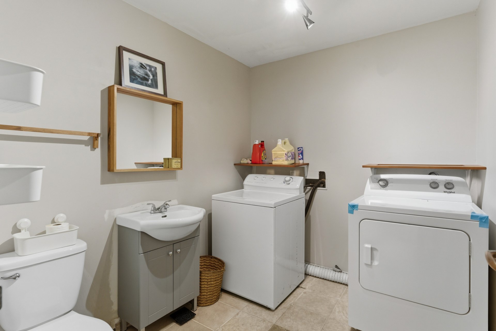 * The basement includes a large bedroom, a storage area, and a bathroom combined with the laundry space.