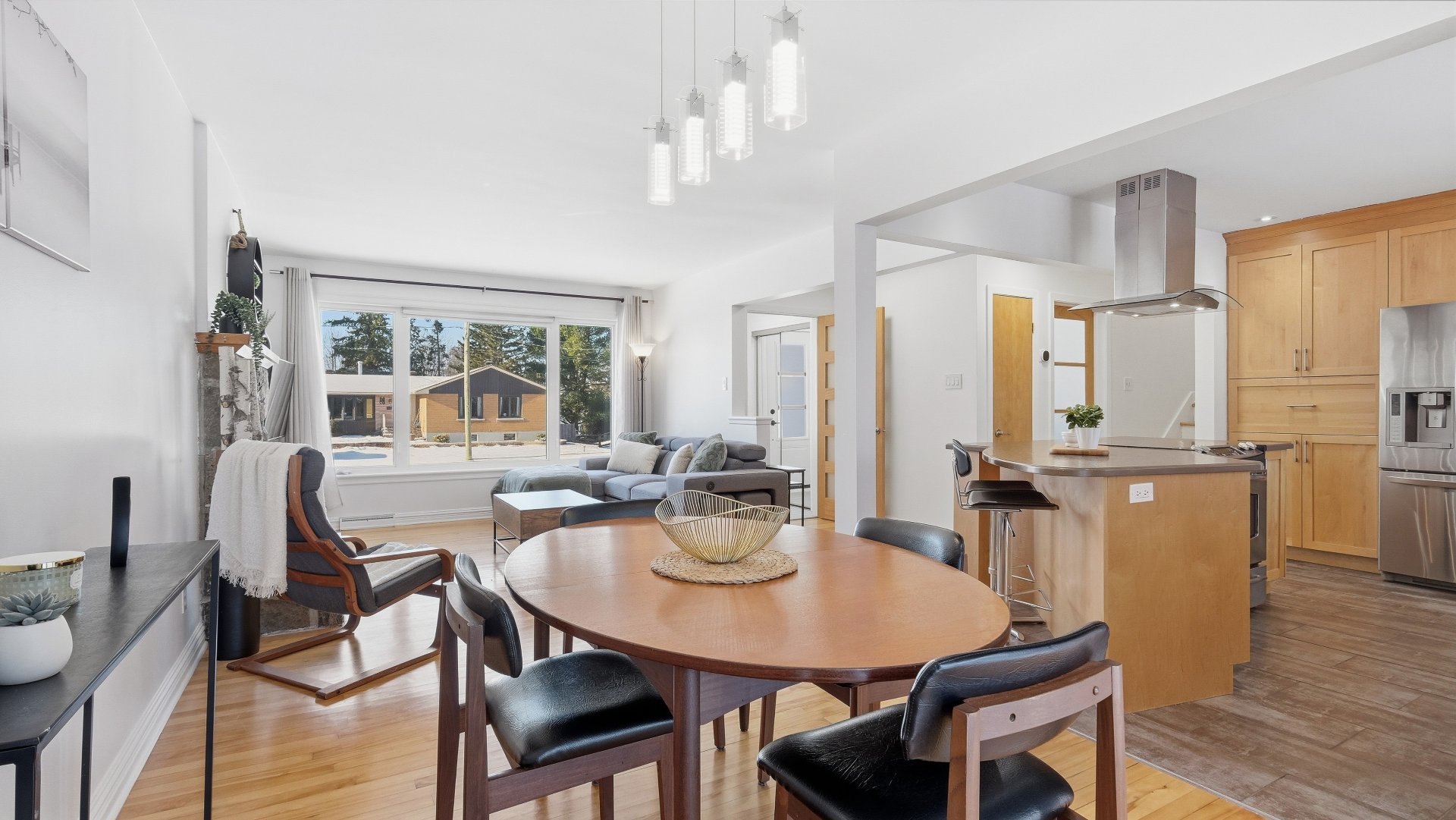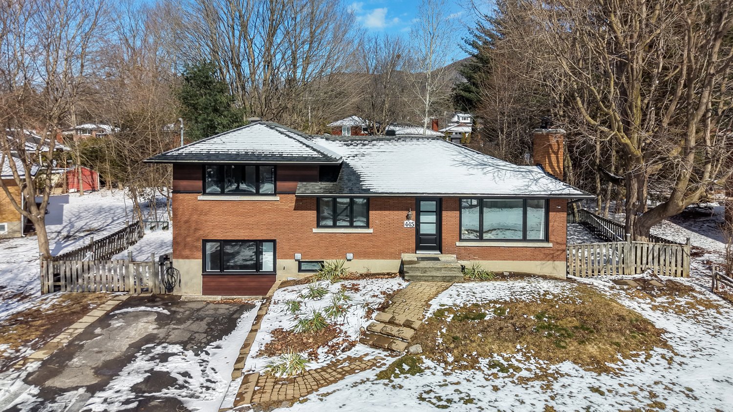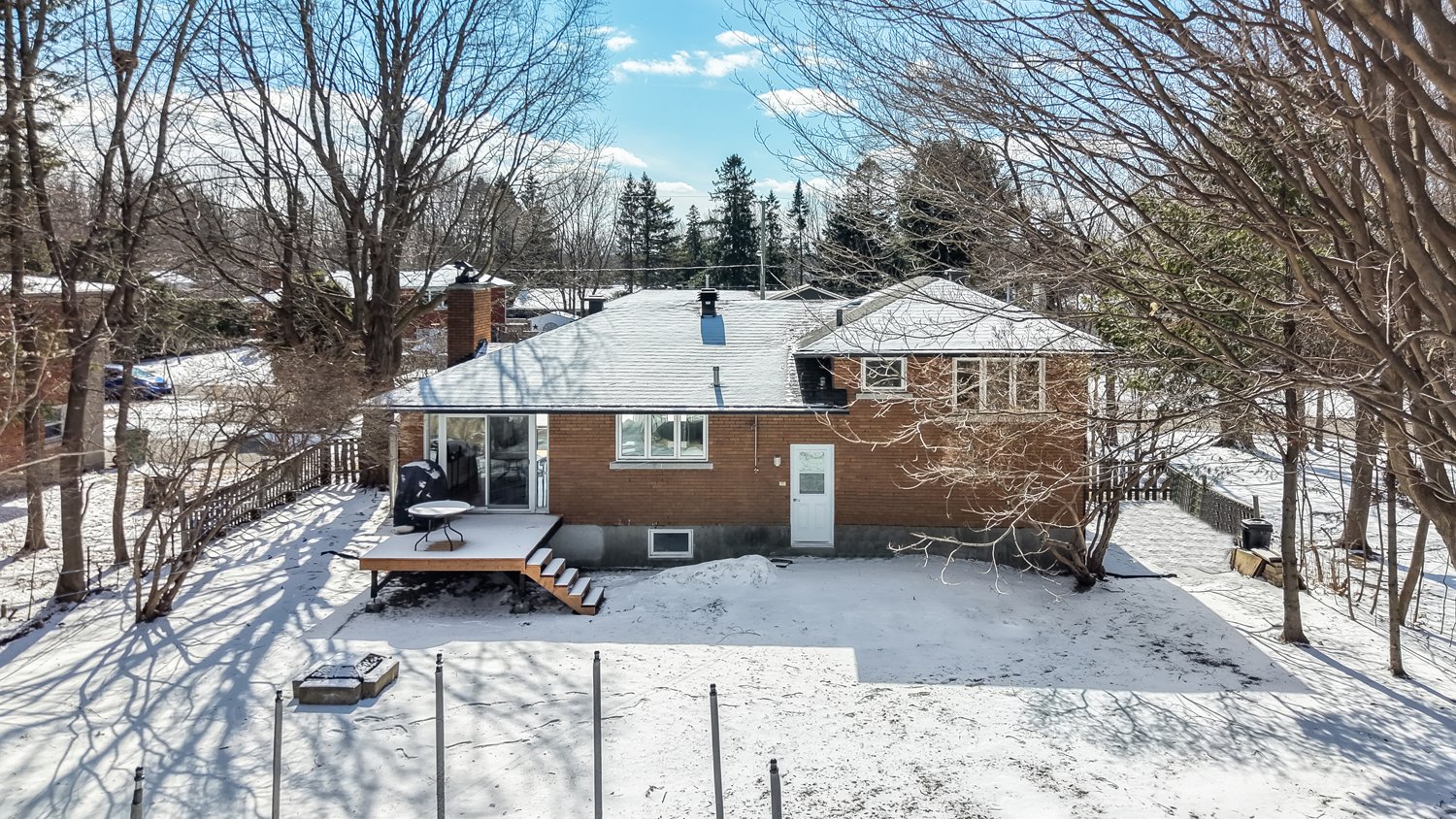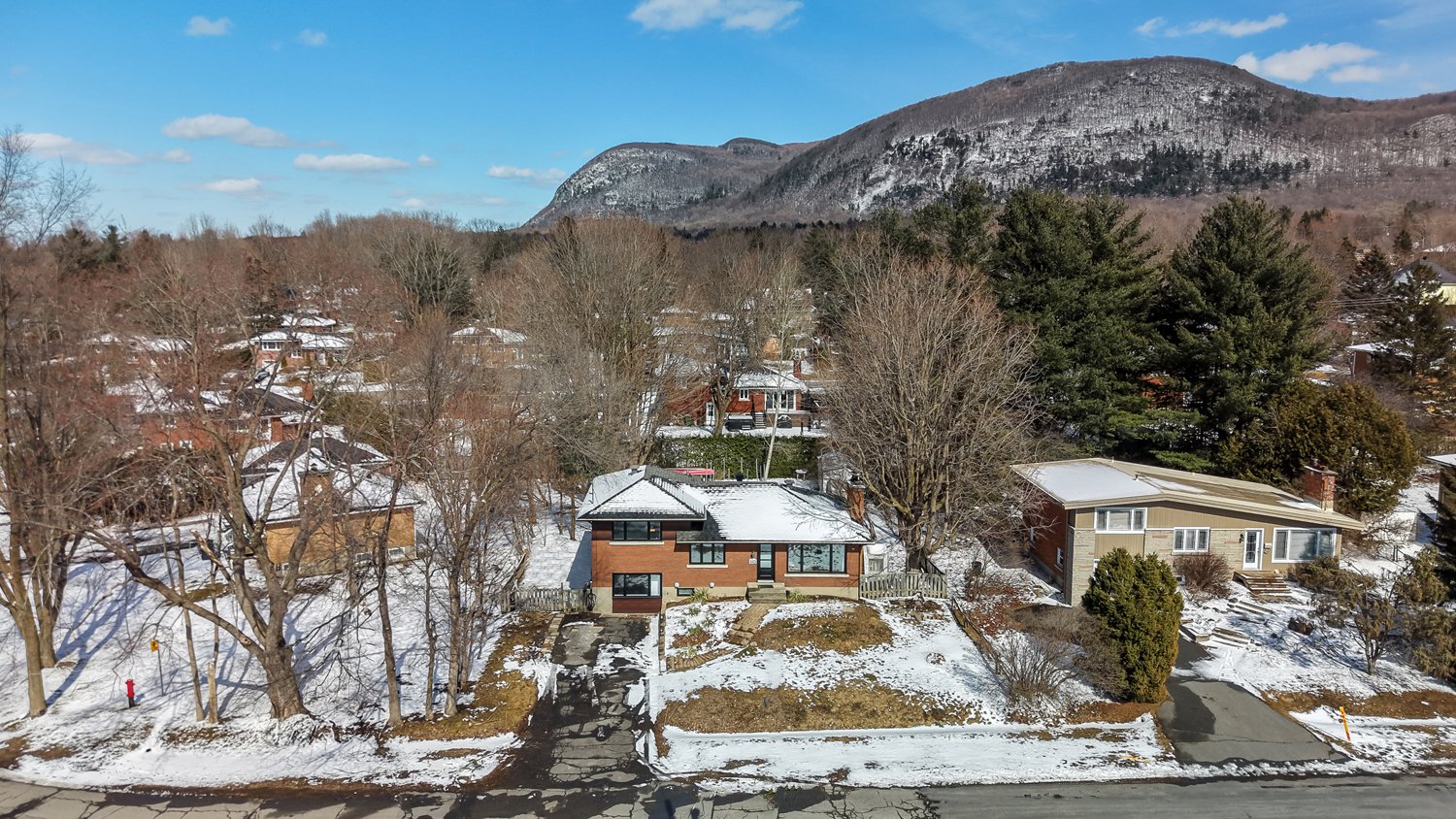 Set on a lot of approximately 9,000 sq. ft., surrounded by mature trees, the property provides privacy and a beautiful view of Mont Saint-Hilaire. Its orientation allows for optimal sunlight throughout the day, creating a bright and welcoming atmosphere.