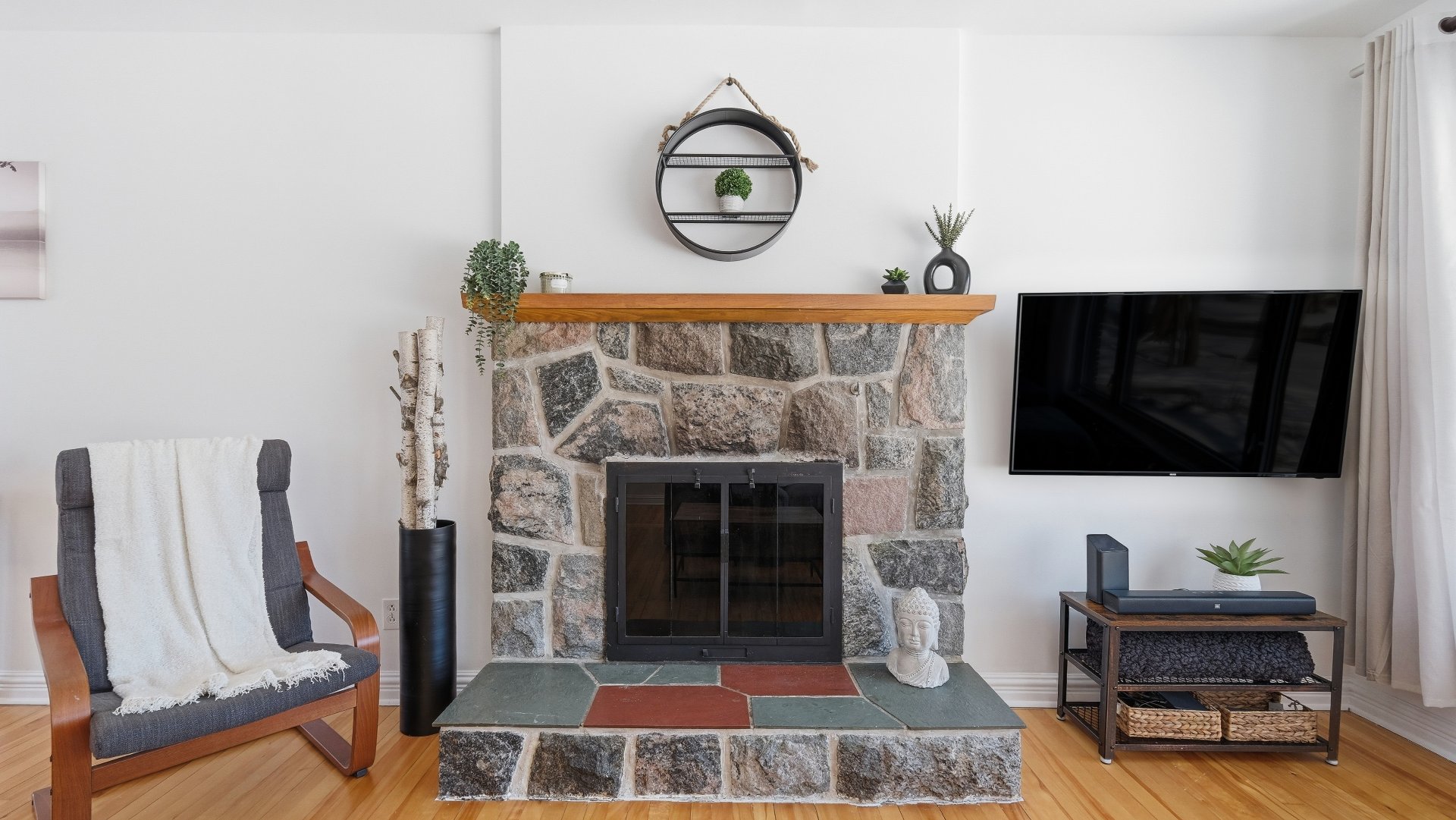 - Wood fireplace