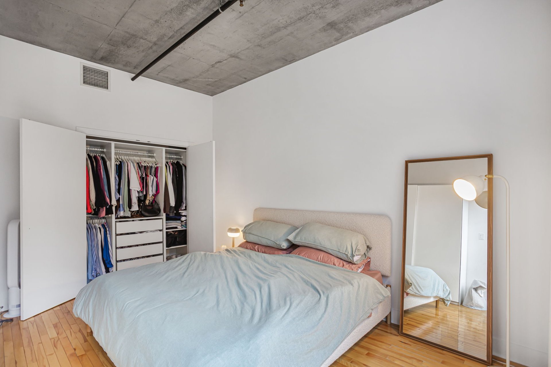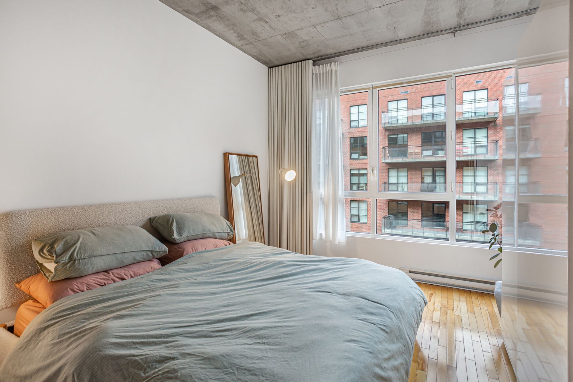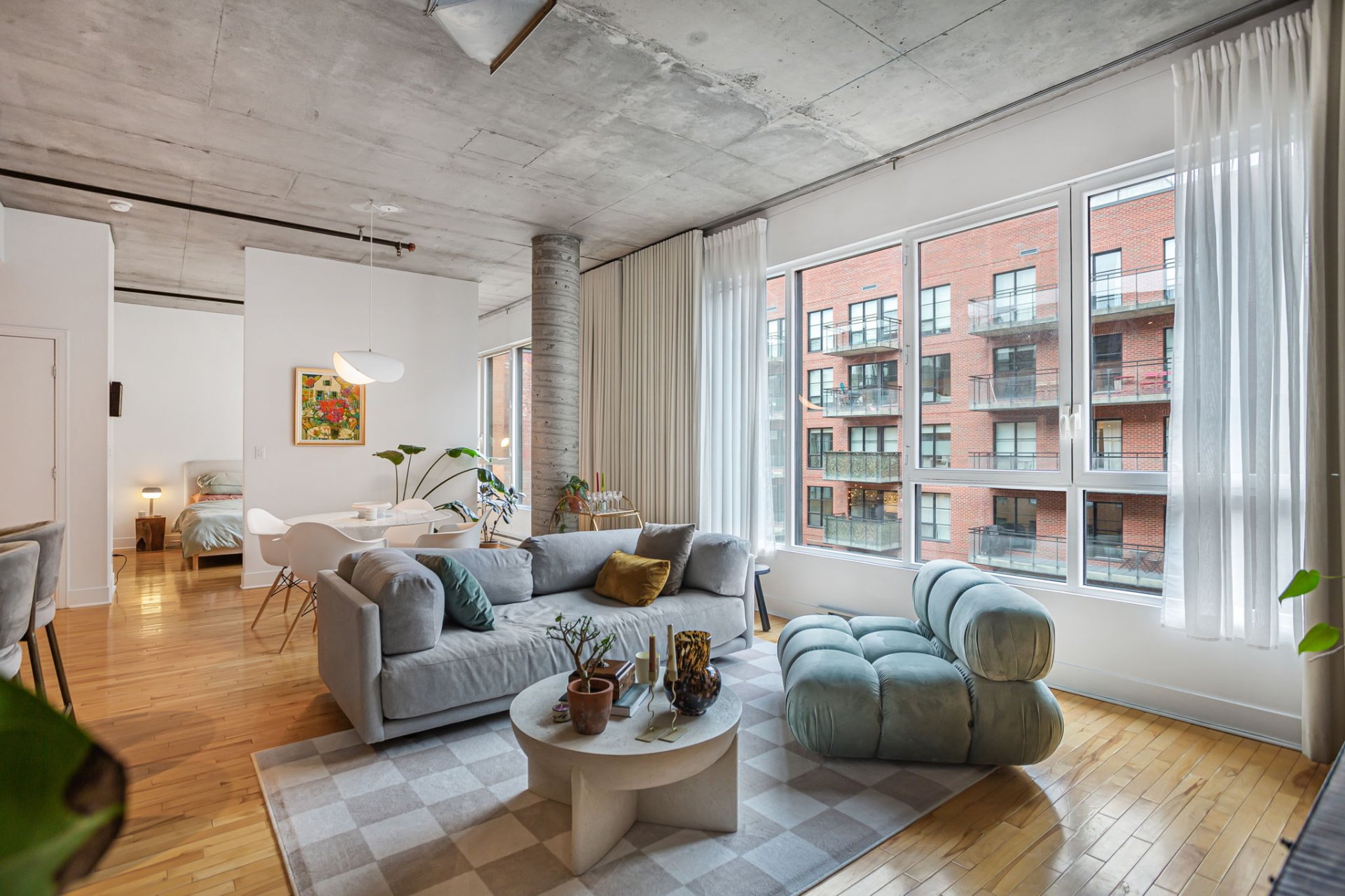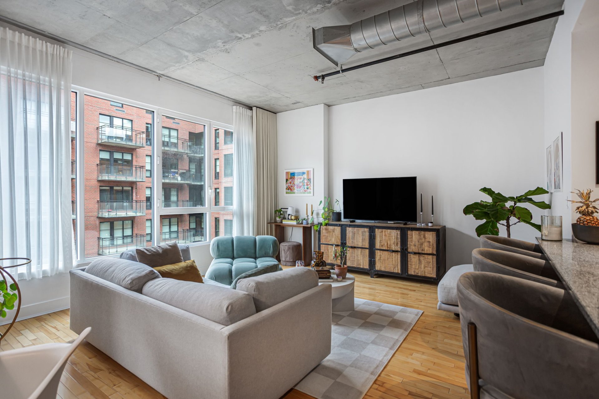 1 indoor parking included. Bright and spacious condo in a AAA location. Open concept, 10 foot ceilings with large bedroom, this beautiful space is a must see. Walking distance from the best the city has to offer. Come live the beauty of this wonderful neighborhood a only steps away from Old Montreal. Monthly fees include central heating, air conditioning and hot water.