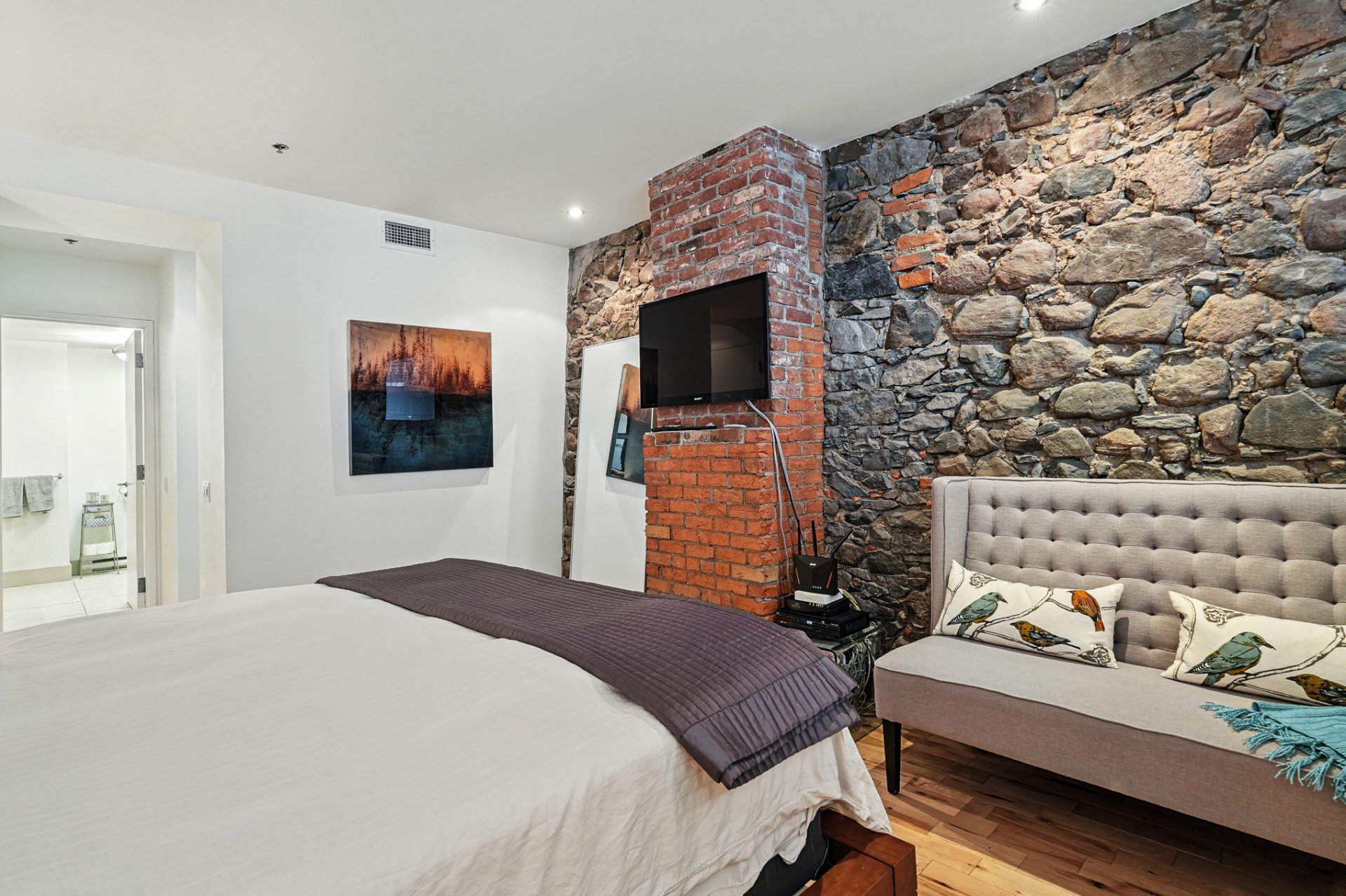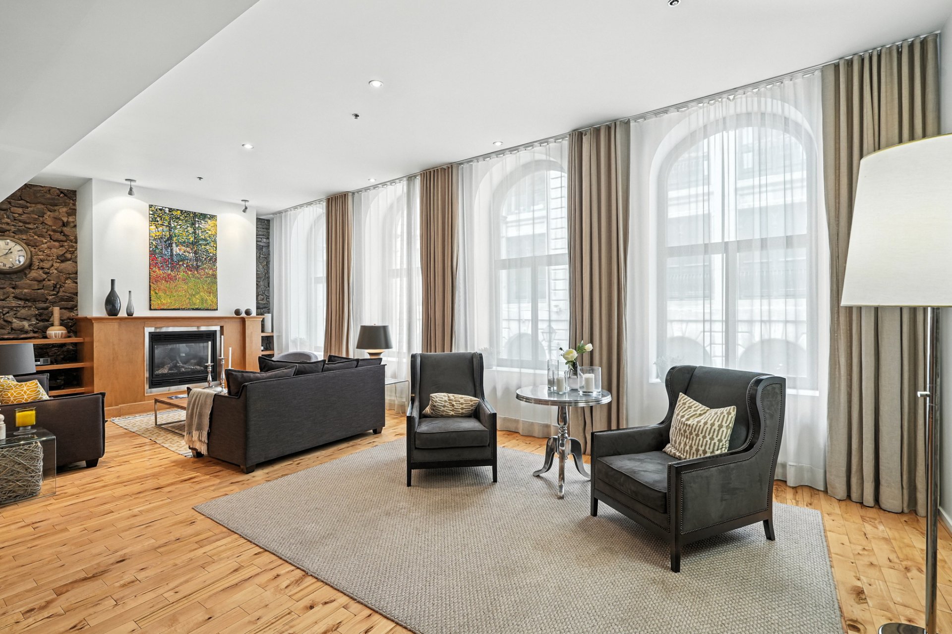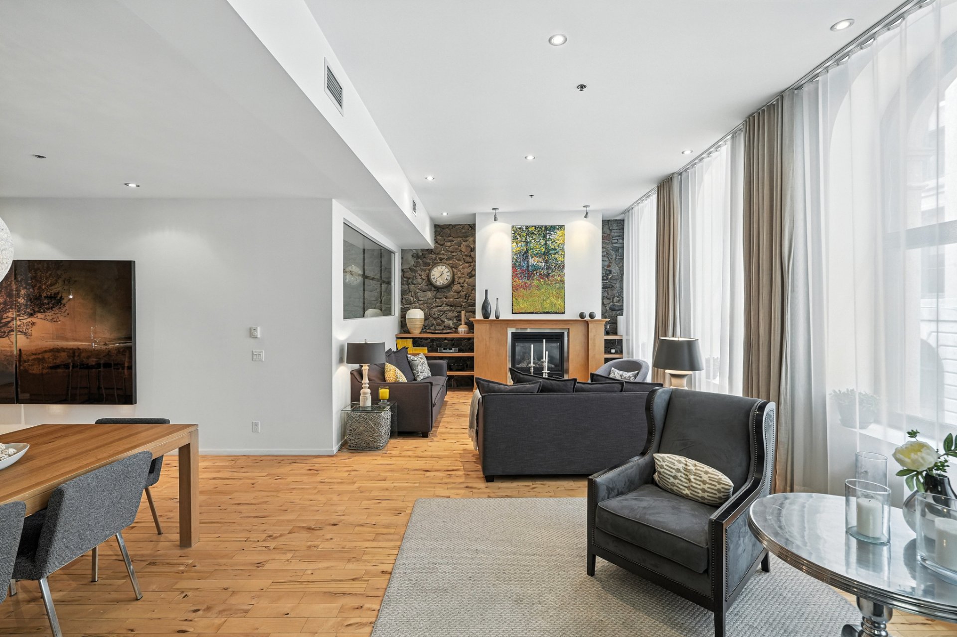Discover this exceptional condo in the prestigious Cité du Nouveau Monde, blending historic charm with modern elegance. High ceilings, exposed stone and brick walls, and expansive arched windows that flood the interior with natural light. The open-concept layout includes the kitchen with a huge island flowing into the dining and living areas, ideal for both everyday living and entertaining. A spacious den offers a perfect place to unwind, while a gas fireplace adds cozy warmth. Ample storage ensures easy organization. Located in the heart of Old Montreal, this rare gem offers luxury, tranquility, and proximity to fine dining and shopping.