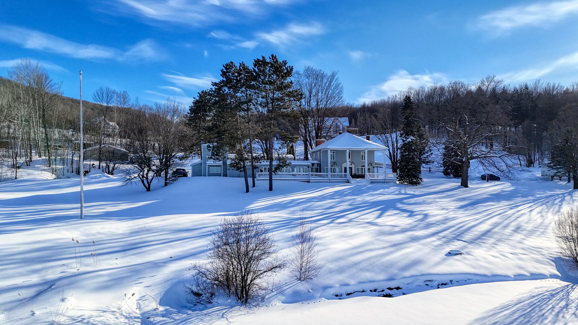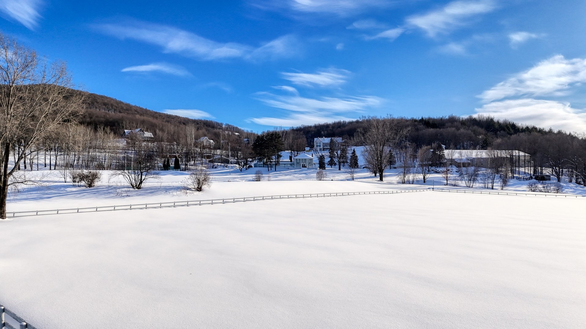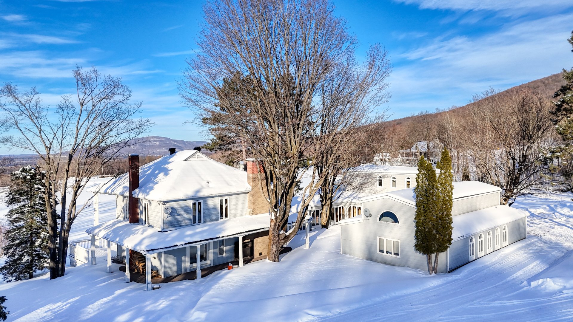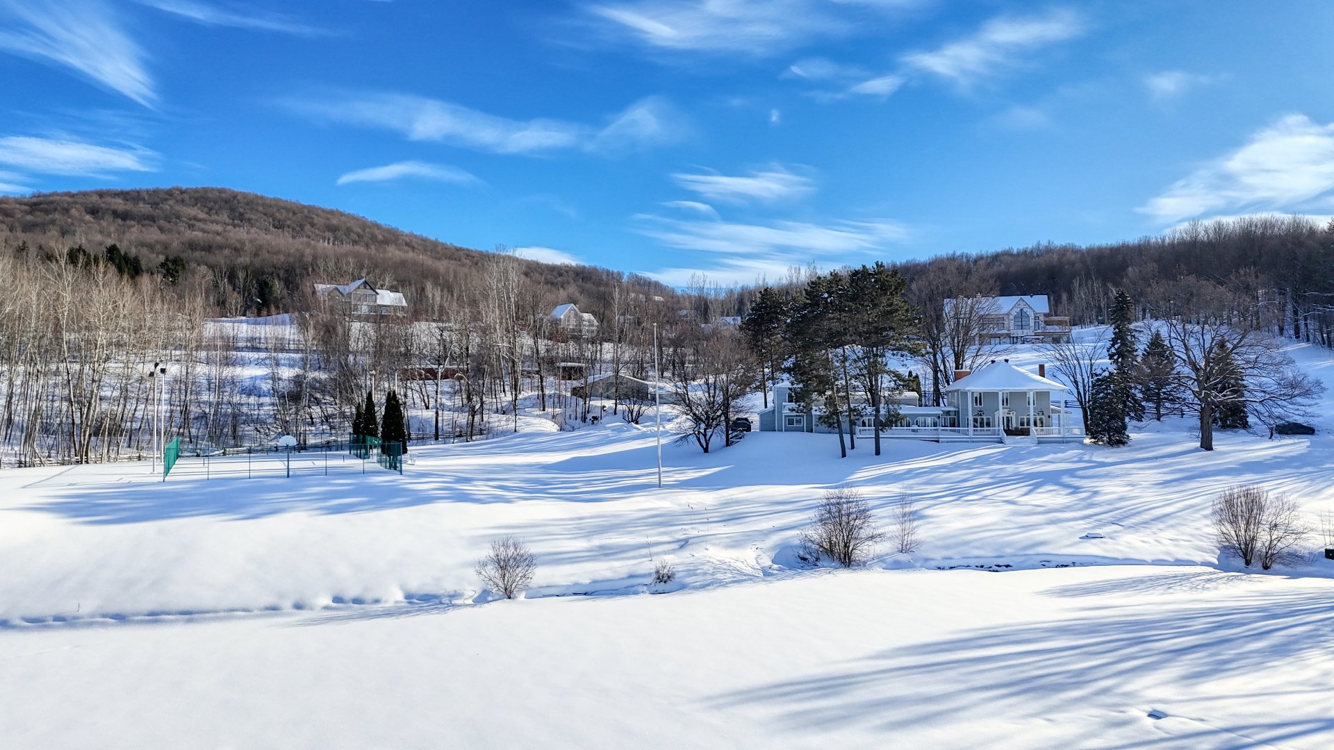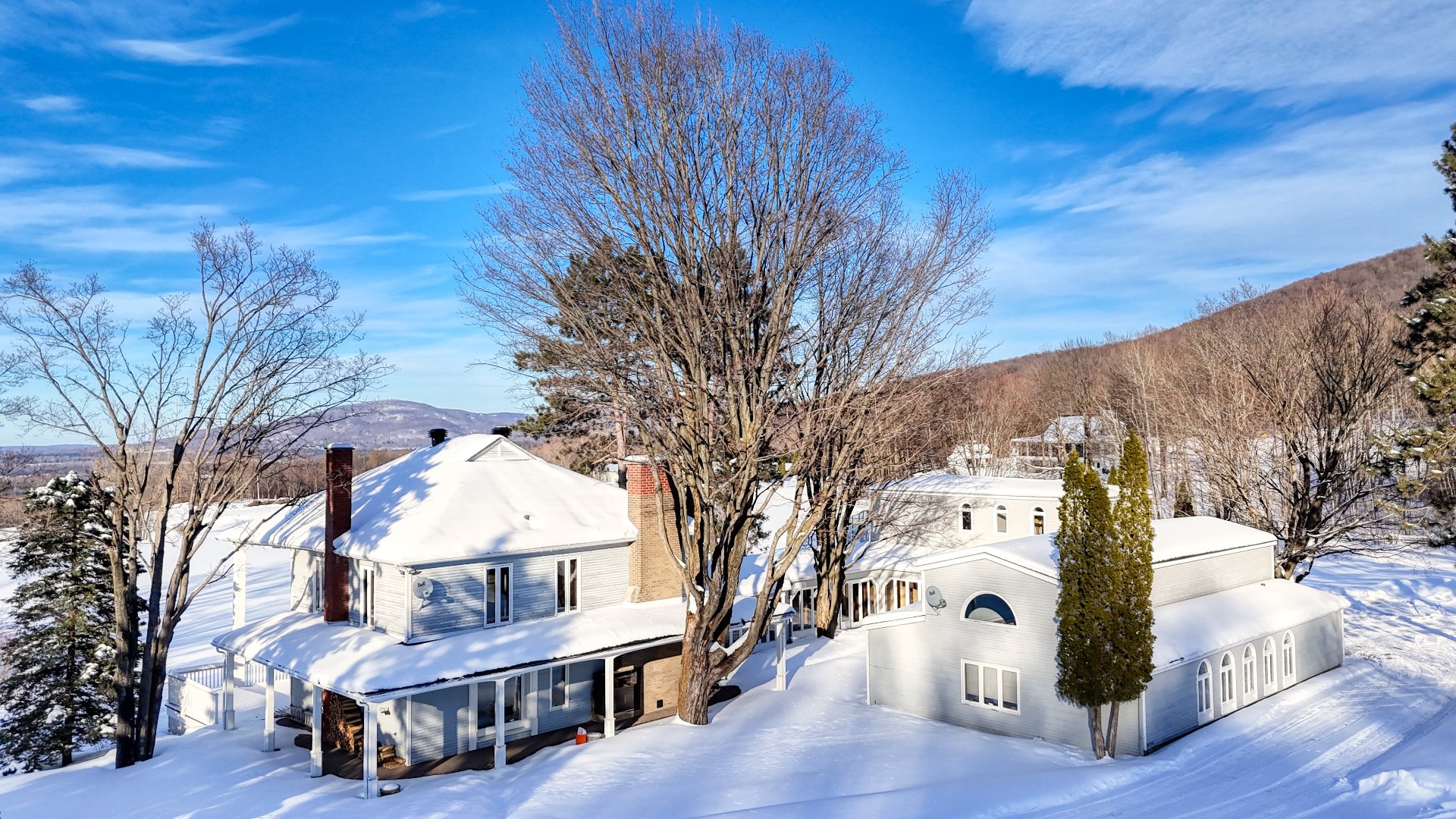 Located in one of Bromont's most beautiful areas, this exceptional property boasts approximately 14 acres of land, enjoying a prime elevated position and remarkable panoramic views of the surrounding mountains, valleys, and lakes. Bordered by the C1 hiking trail and situated opposite the site that hosted the equestrian events of the 1976 Winter Olympics, the property offers a rare living environment that combines nature, privacy, and outdoor activities.