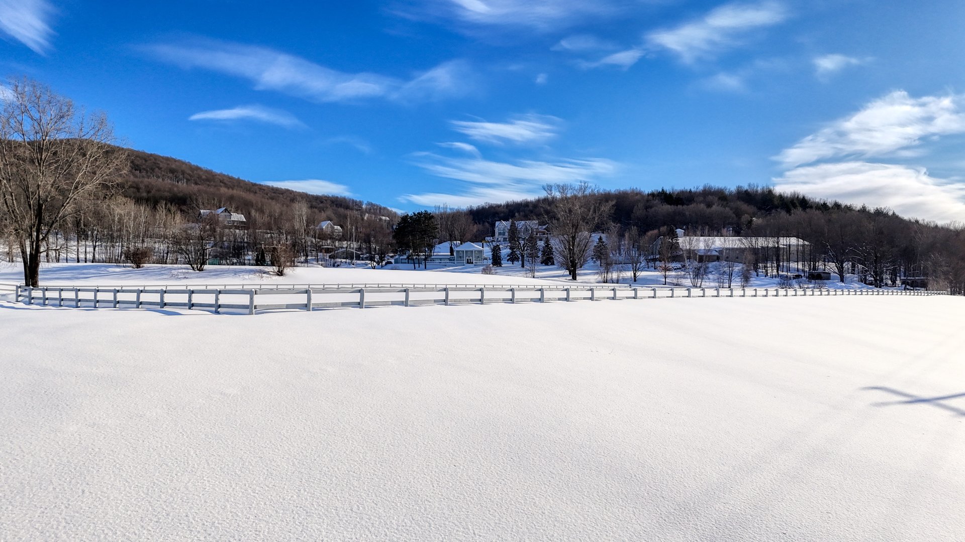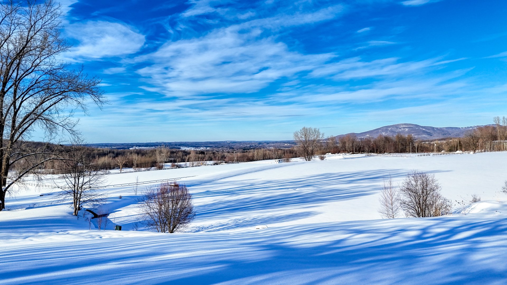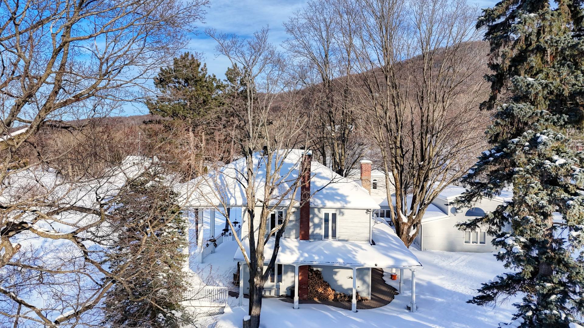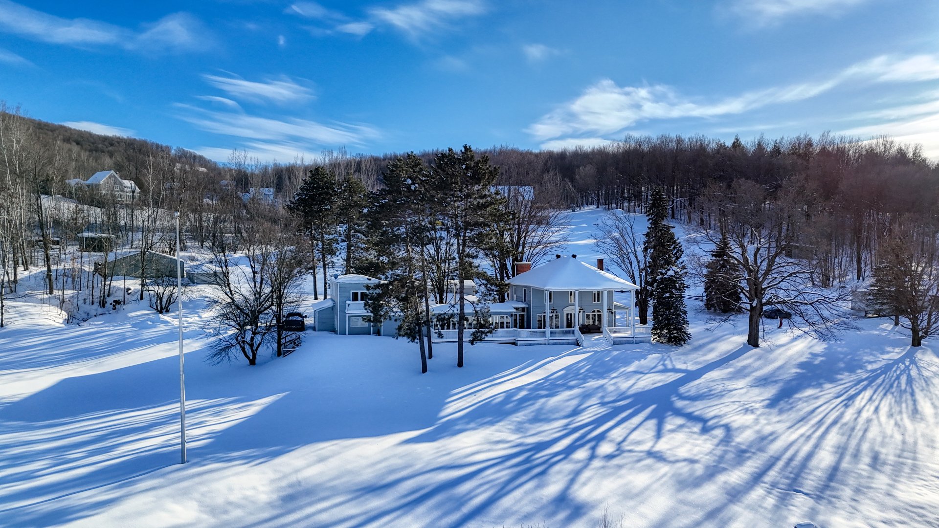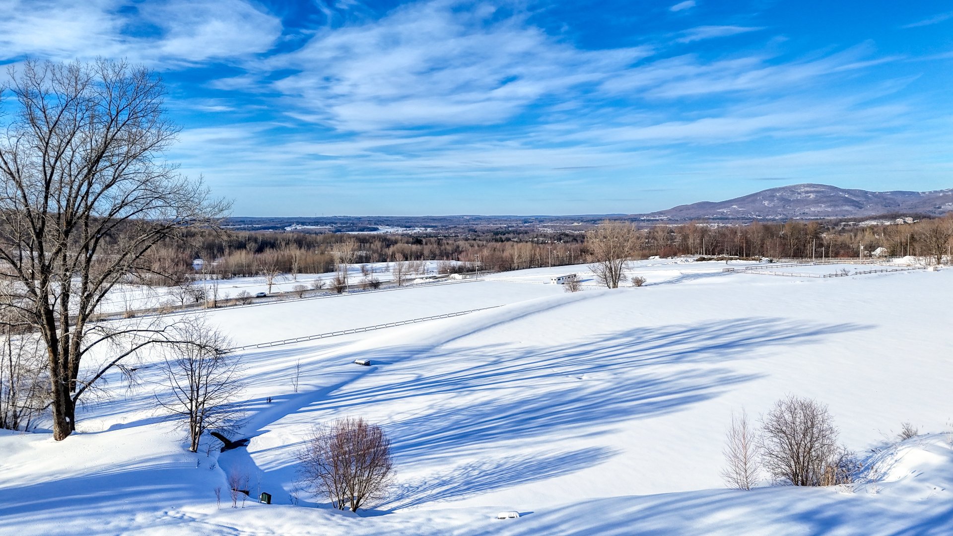 Located in one of Bromont's most beautiful areas, this exceptional property boasts approximately 14 acres of land, enjoying a prime elevated position and remarkable panoramic views of the surrounding mountains, valleys, and lakes. Bordered by the C1 hiking trail and situated opposite the site that hosted the equestrian events of the 1976 Winter Olympics, the property offers a rare living environment that combines nature, privacy, and outdoor activities.