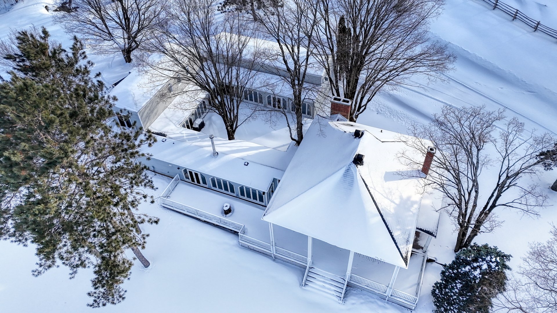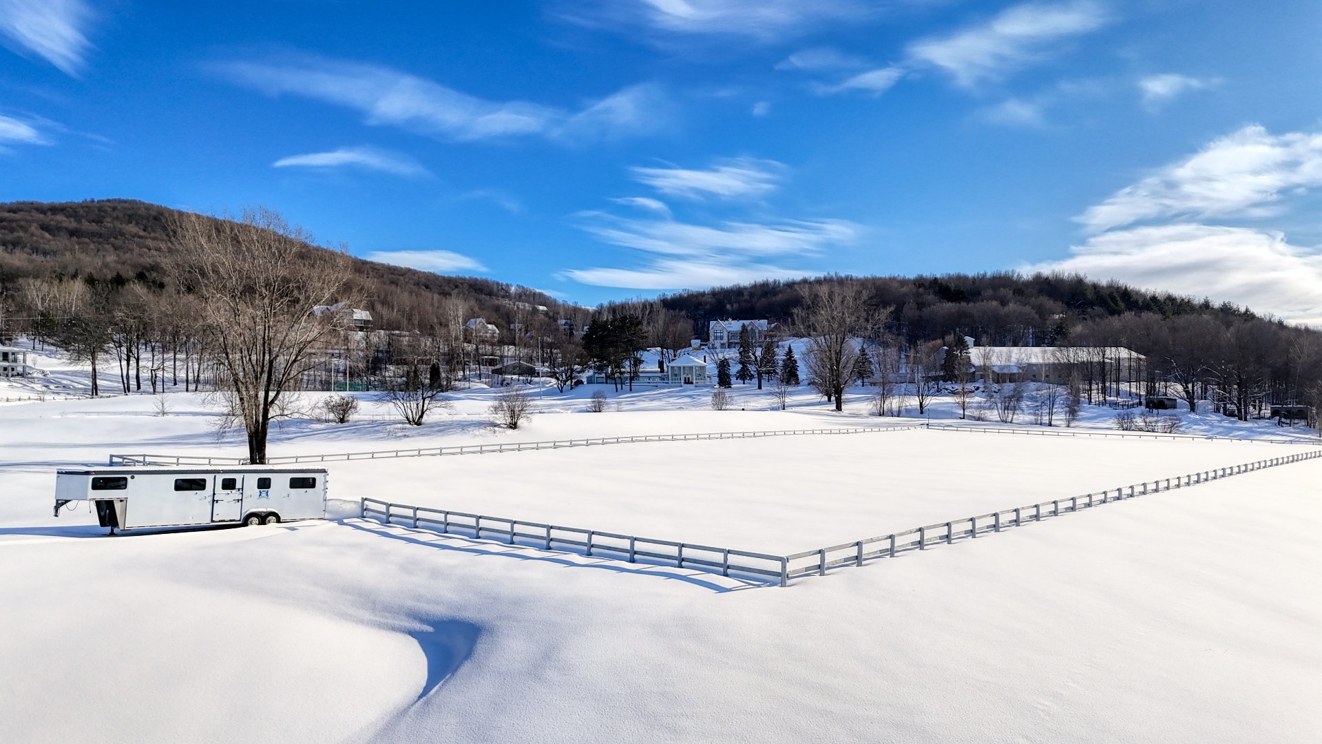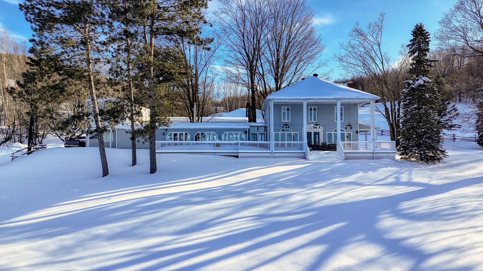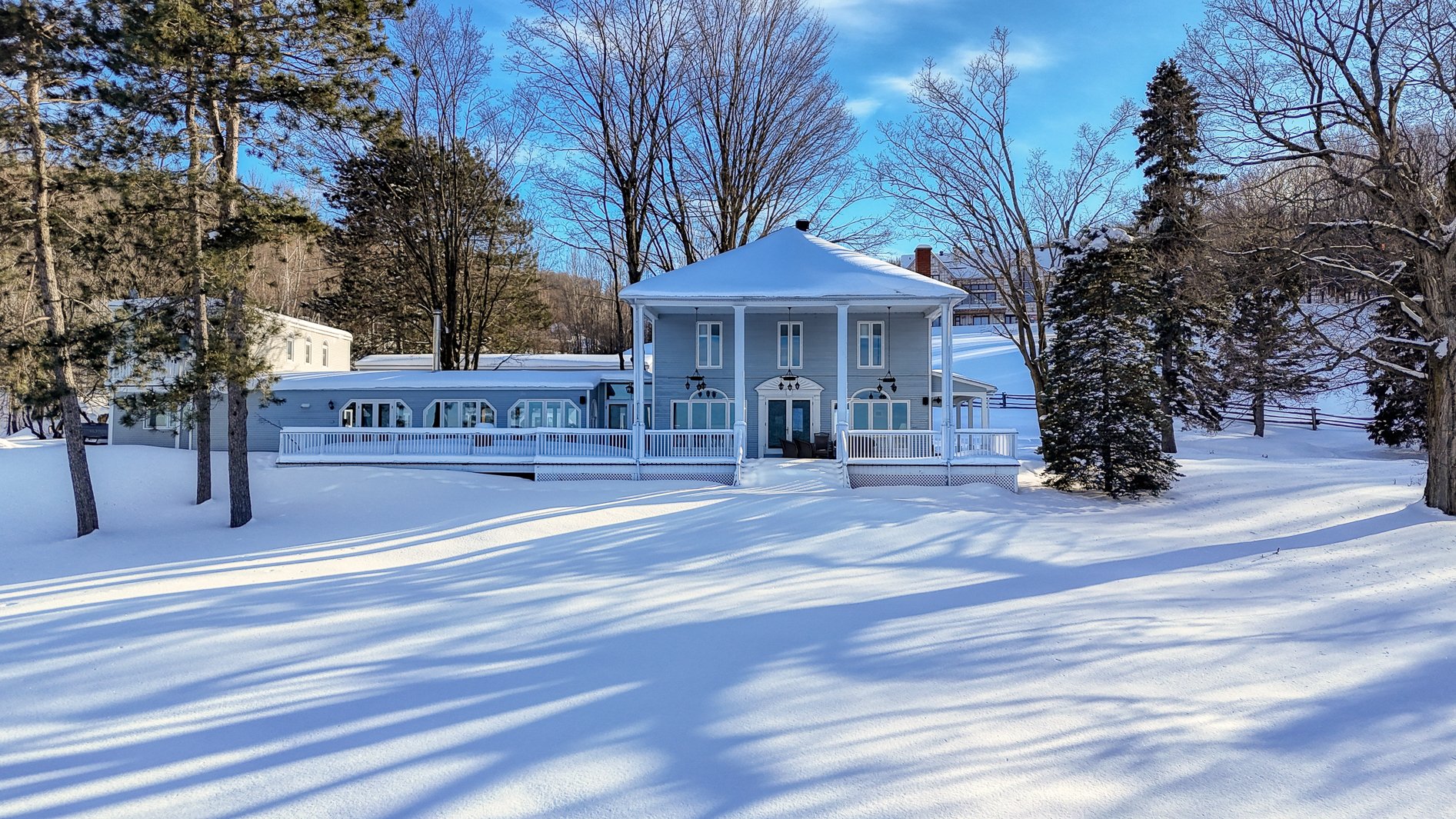 Nestled on a spectacular 14-acre property, this exceptional estate captivates with its panoramic views of the mountains and valleys, as well as a private lake, all within a sought-after equestrian setting. The spacious New England-style residence offers five bedrooms, expansive light-filled living areas, and relaxation spaces including a spa, sauna, and exercise room. An interior courtyard provides the perfect setting for memorable gatherings. An outdoor tennis court, garage/storage unit, and abundant natural surroundings complete this unique retreat, conveniently located near virtually all the attractions of Bromont and the surrounding regio