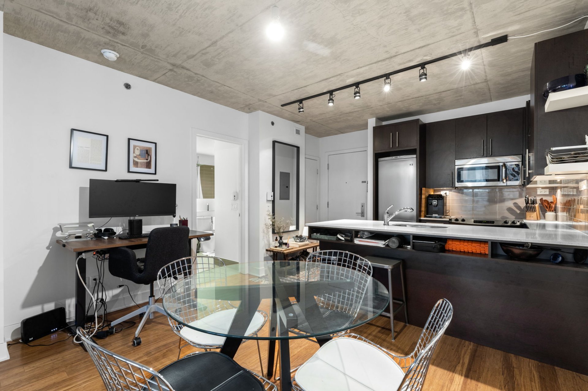 Welcome to a modern 1 bedroom unit in the Lowney building located in the vibrant Griffintown neighborhood. This modern unit features a bedroom with a walk-in closet, a modern bathroom, and an open living area that leads to a private balcony. You will also appreciate the convenience of indoor parking and two storage units, perfectly blending comfort with city living. Close to Bonaventure metro station, the REM, and the École de Technologie Supérieure (ETS), restaurants, cafés and more.