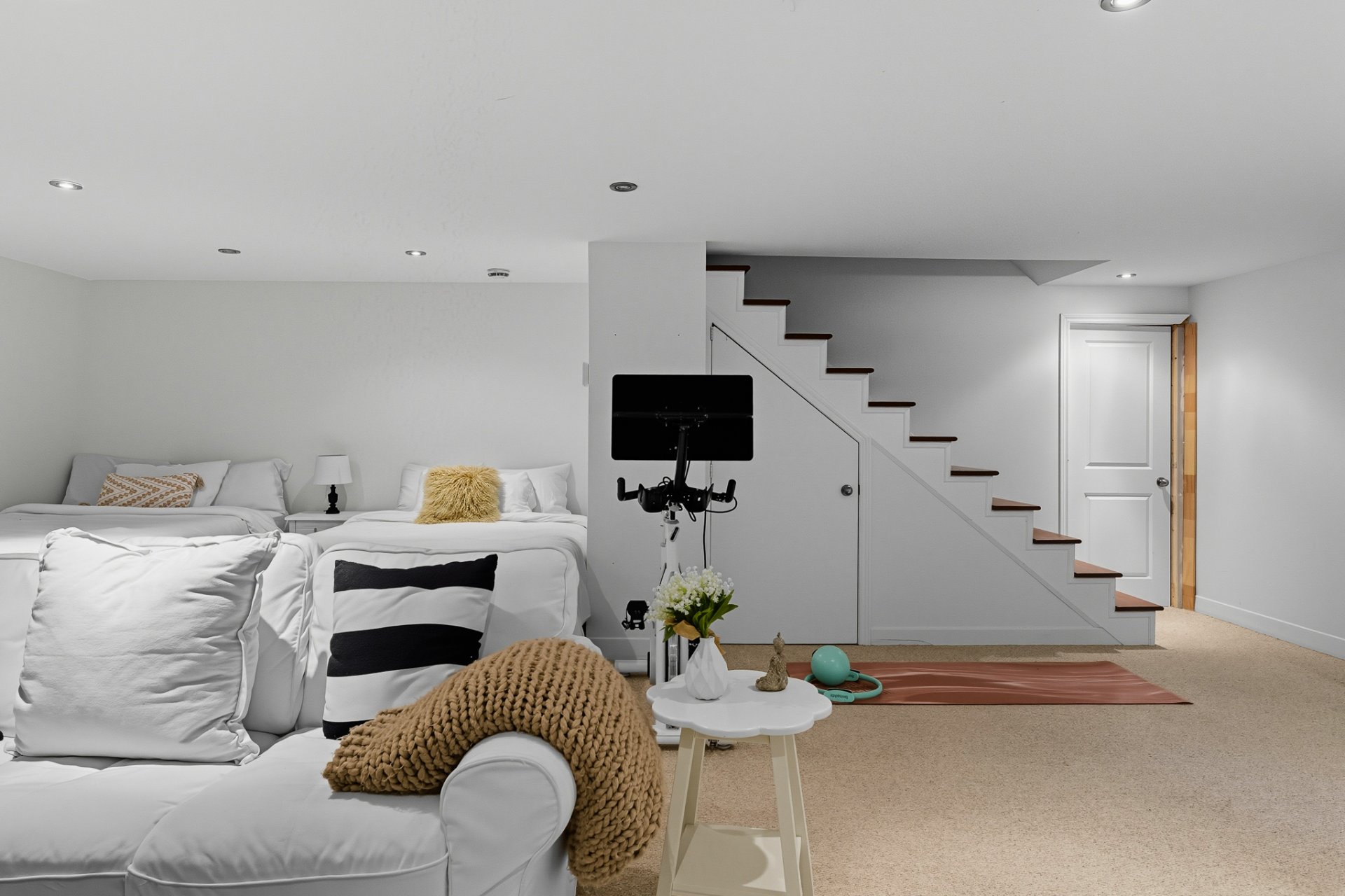 The fully finished basement provides versatile, practical living areas, including a vast family room, direct outdoor access, and generous storage spaces.