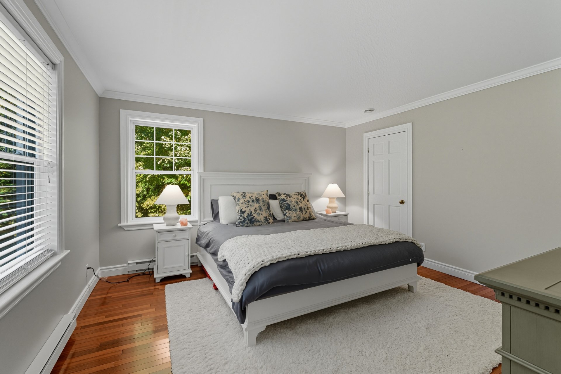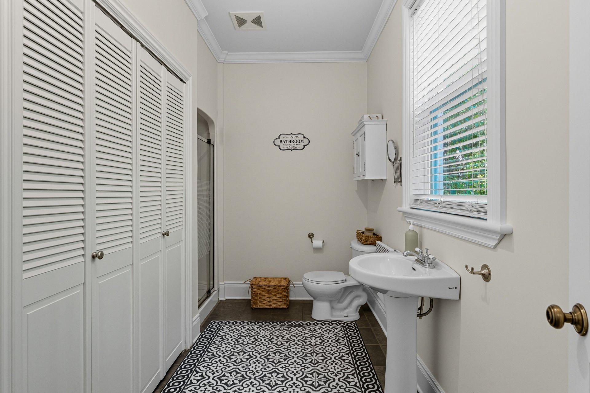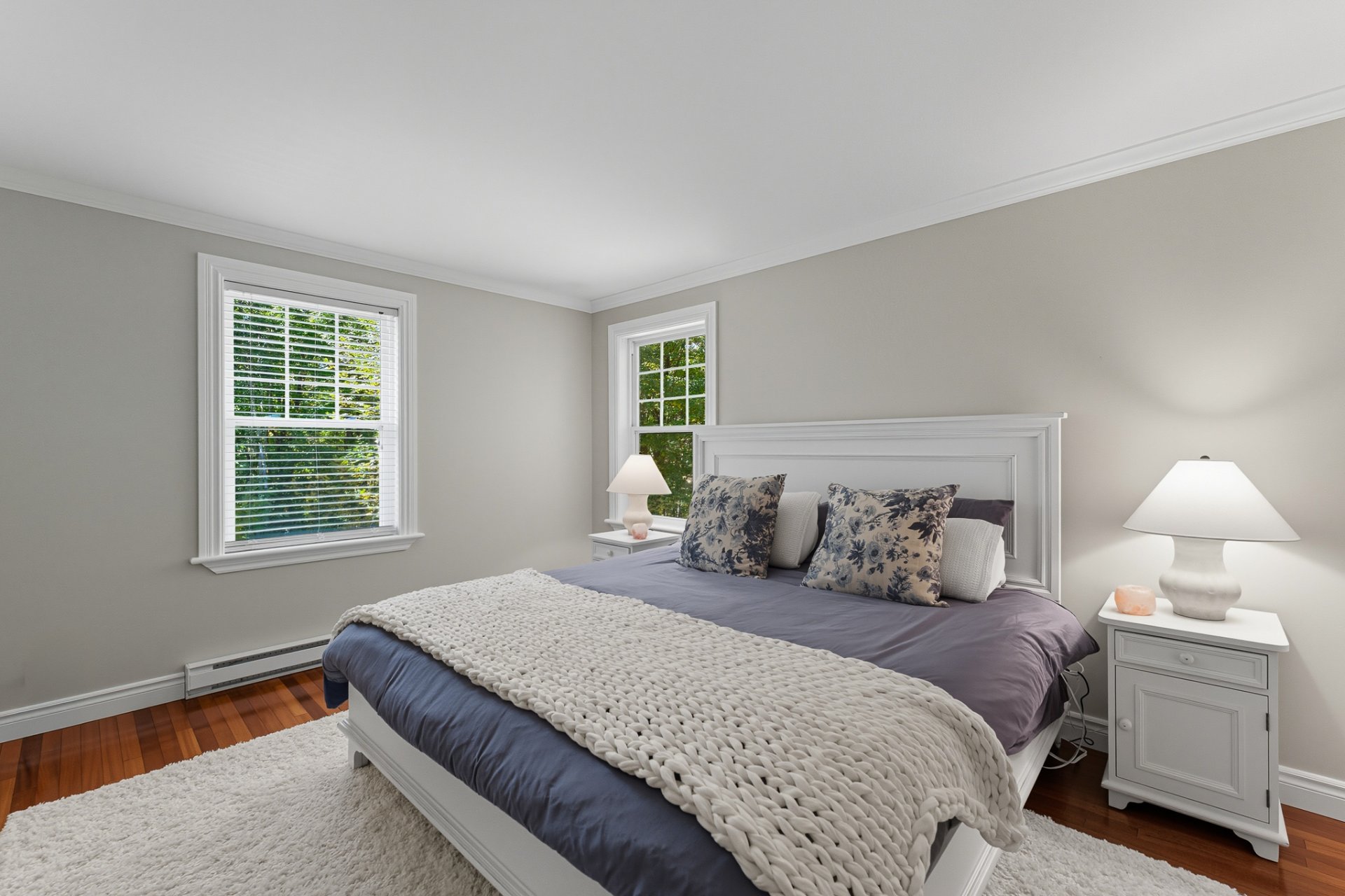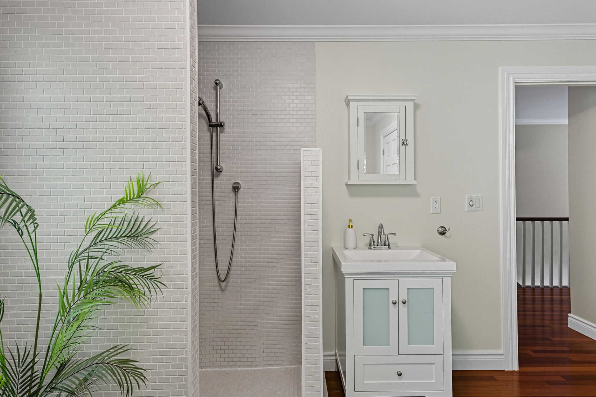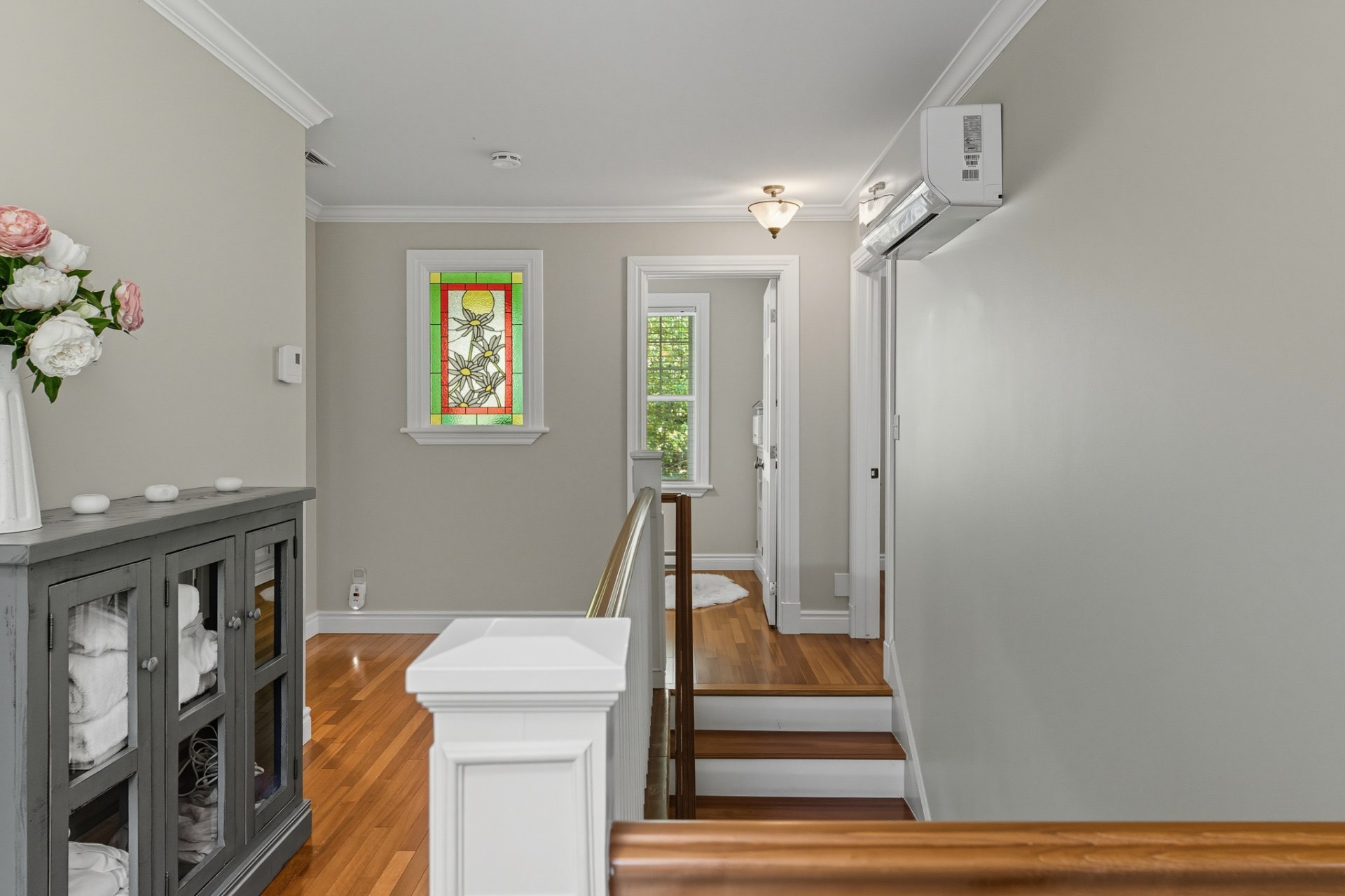 Upstairs, three bedrooms create an intimate and restful space. The master suite offers a practical walk-in closet and an ensuite bathroom featuring a clawfoot tub and a ceramic walk-in shower.