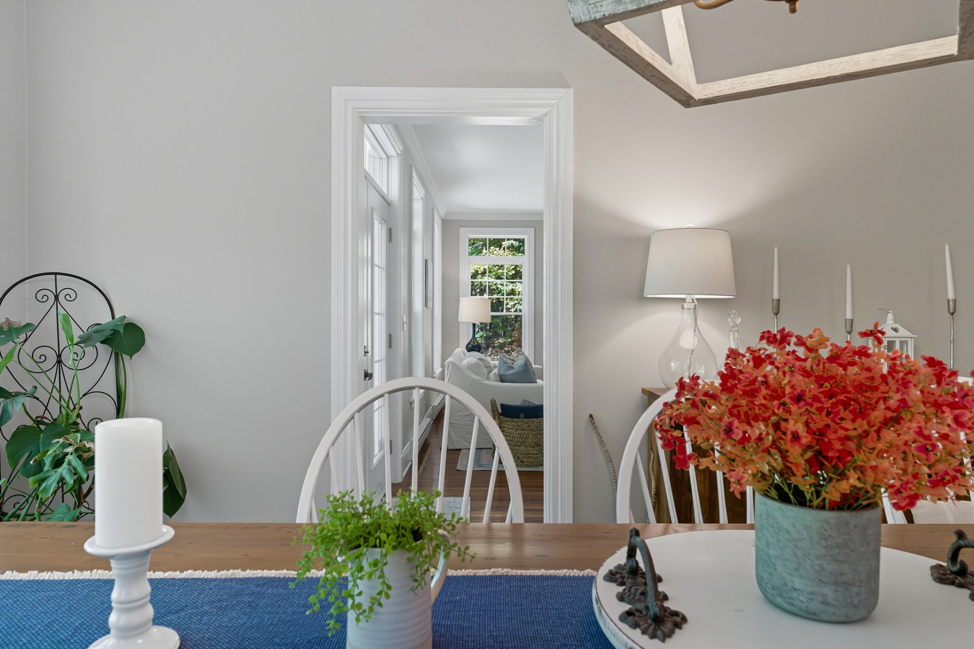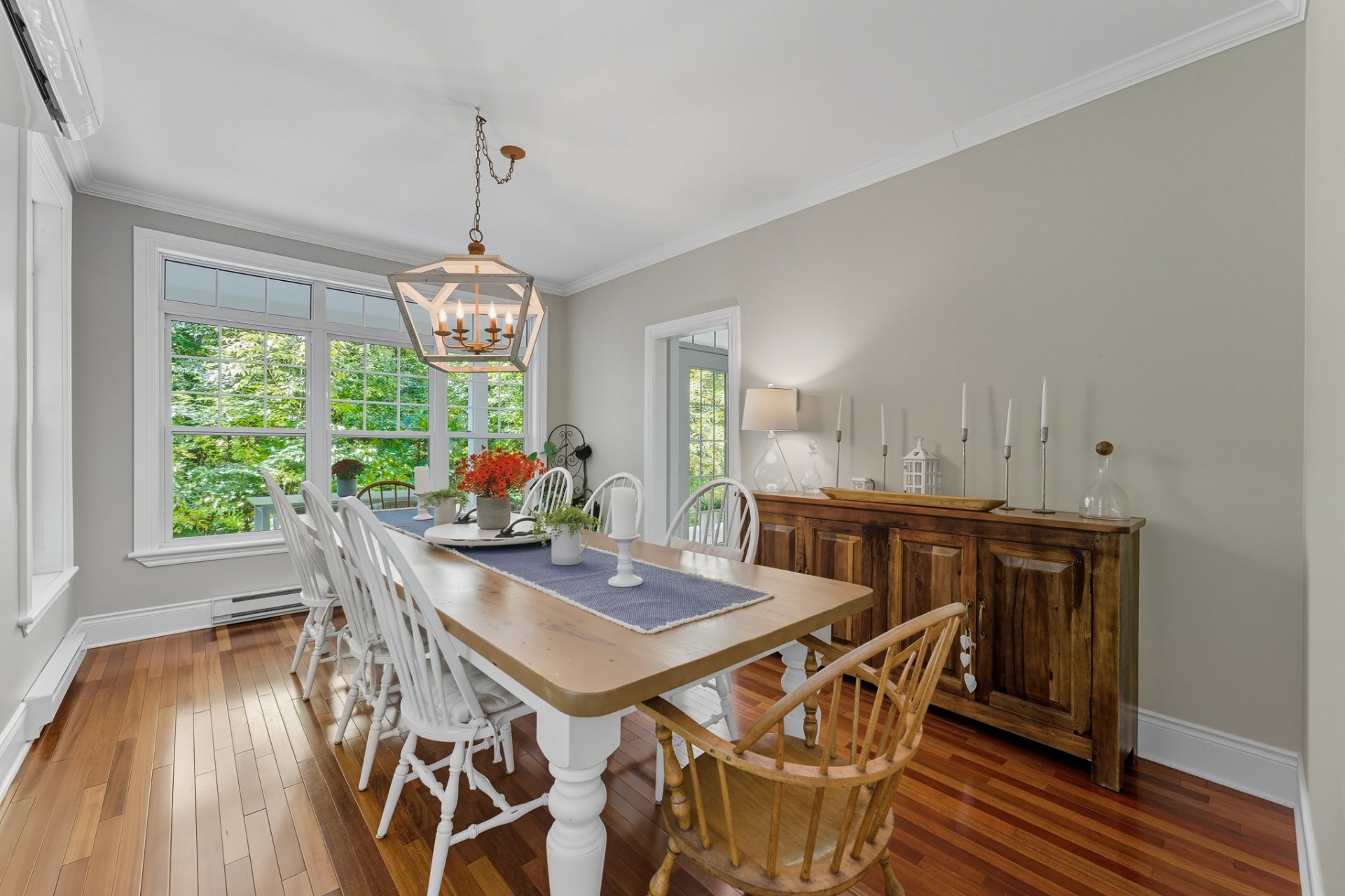 The spacious dining room, perfect for entertaining, opens widely onto the scenery, offering a living backdrop to every meal.