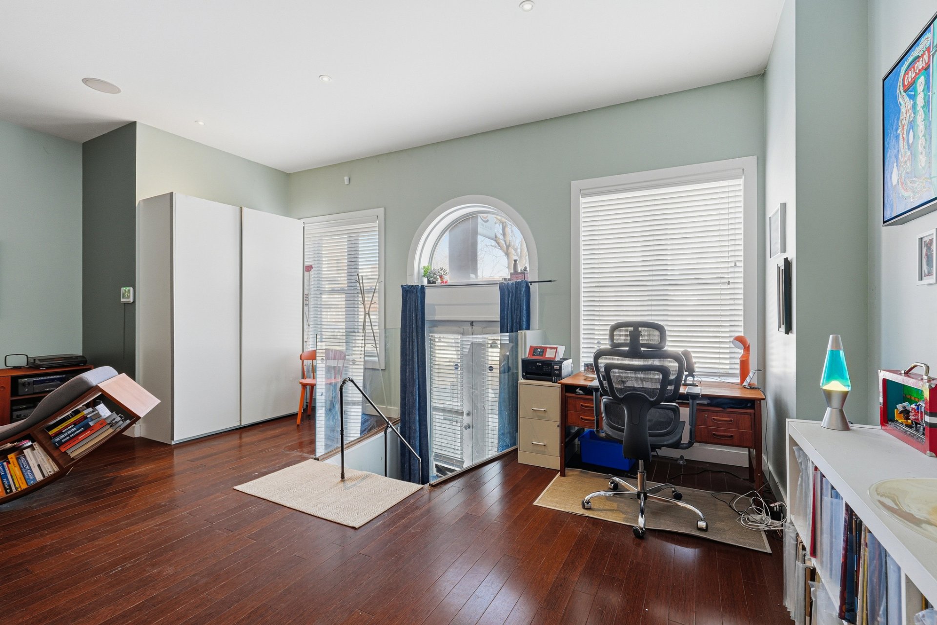 Large ground-floor condo located directly across from Little Italy Park, nestled in the heart of the Mile-Ex tech hub. You will be captivated by the spaciousness of the rooms--featuring 10'5" ceilings and the natural light that floods the living area! In the summer, enjoy a lovely terrace in the back. Parking included.