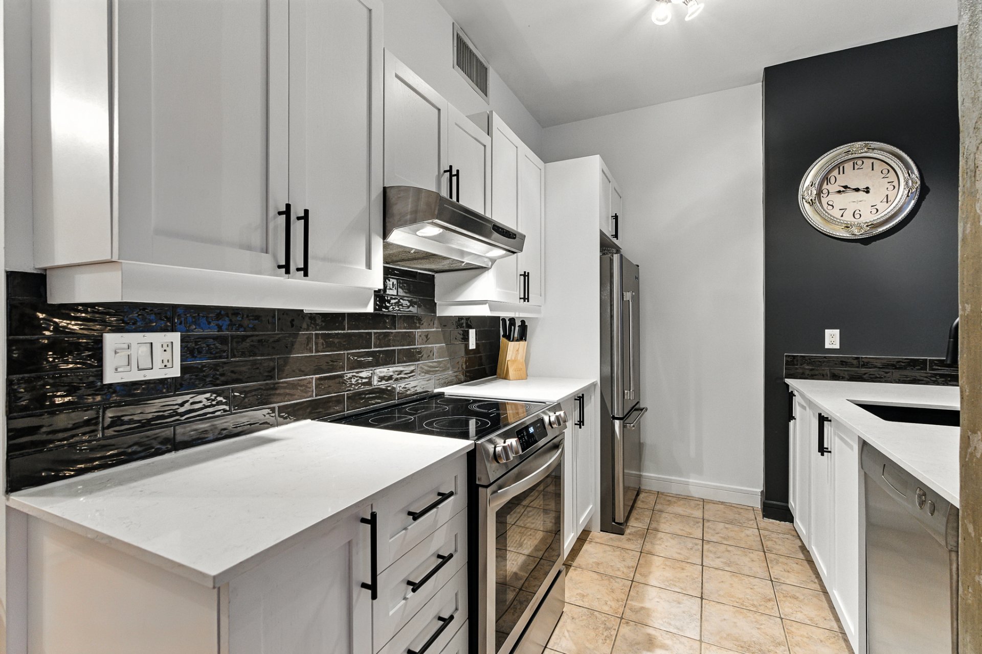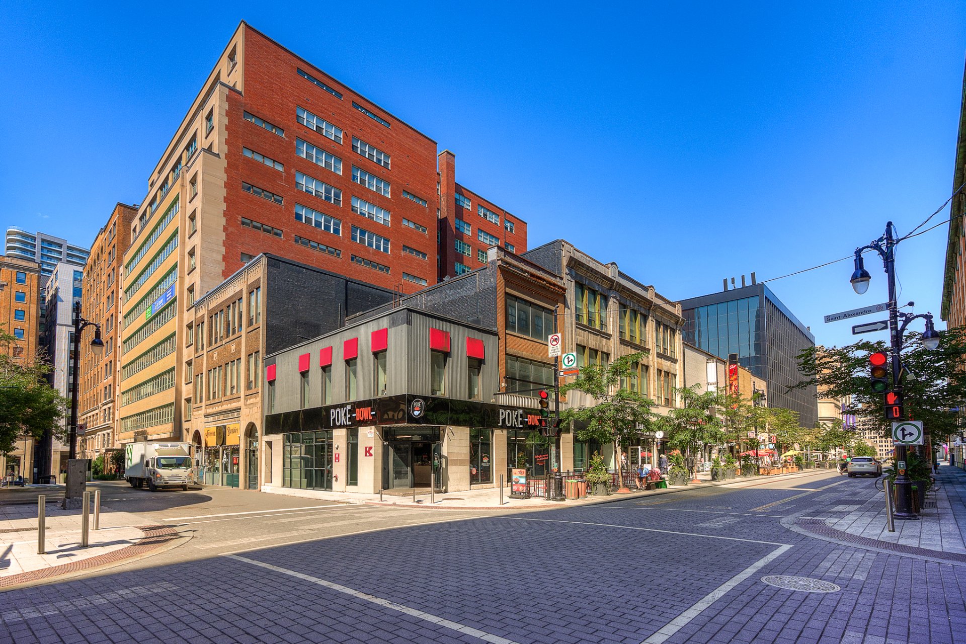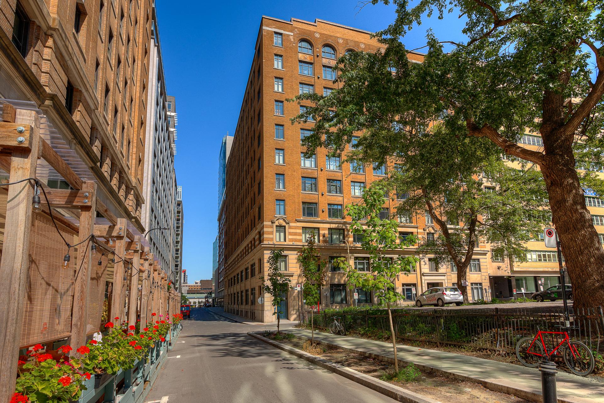 Les Lofts St-James #508: renovated 1-bedroom condo in the heart of Old Montreal. Loft-style open concept with mezzanine bedroom, large walk-in, exposed concrete columns, high ceilings and oversized windows flooding the space with light. Modern kitchen with high-end appliances, ideal for entertaining. Prime location steps from McGill metro, Place-des-Arts, shops and services. Common areas include rooftop terrace with panoramic views, gym and evening security. Storage locker included.