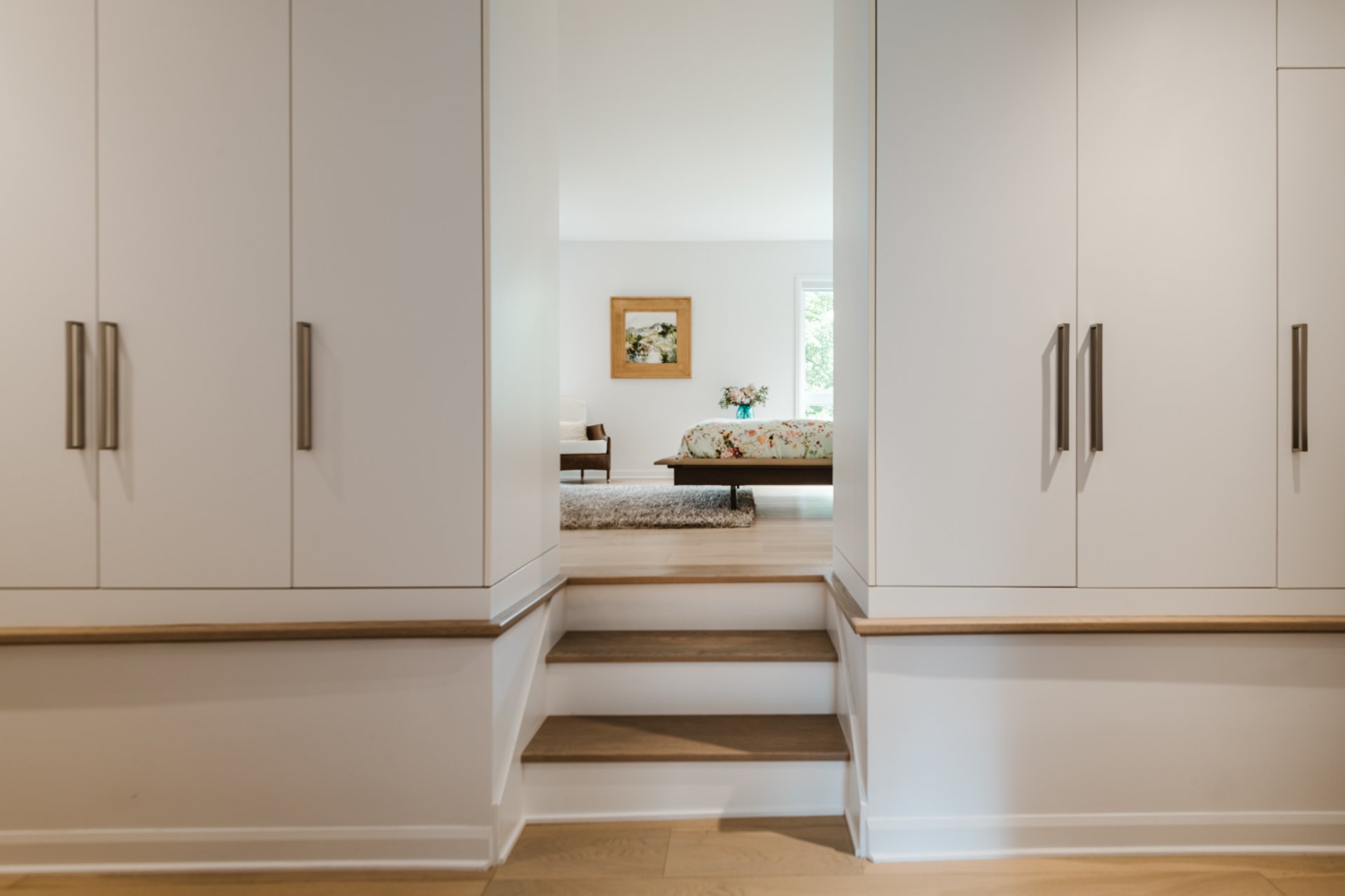 Impressive primary suite with custom walk-in closet