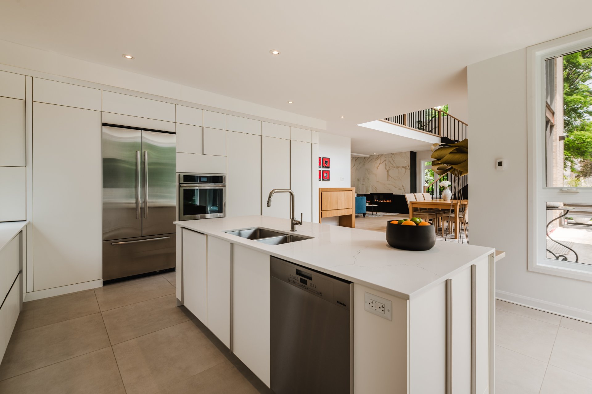- Bosch gas range, hood, Jenn-Air refrigerator-freezer, two Jenn-Air convection ovens, Miele dishwasher, Miele washer and dryer, water heater, CycloVac central vacuum, Marquis indoor gas fireplace, window shades in bedrooms and bathrooms.