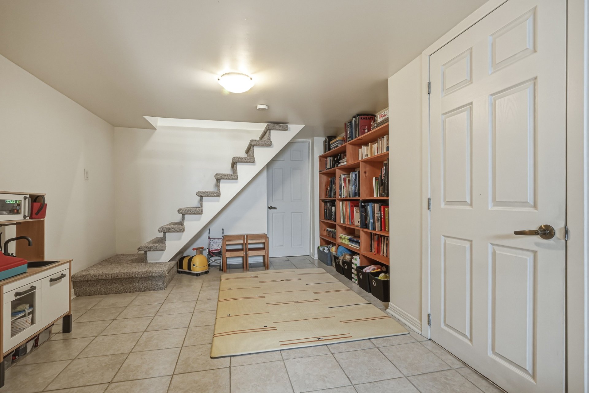 - Blinds, light fixtures, wall-mounted bunk bed in the 2nd bedroom on the main floor (option to remove it), built-in closet organizer in the master bedroom, bookshelf in the basement.