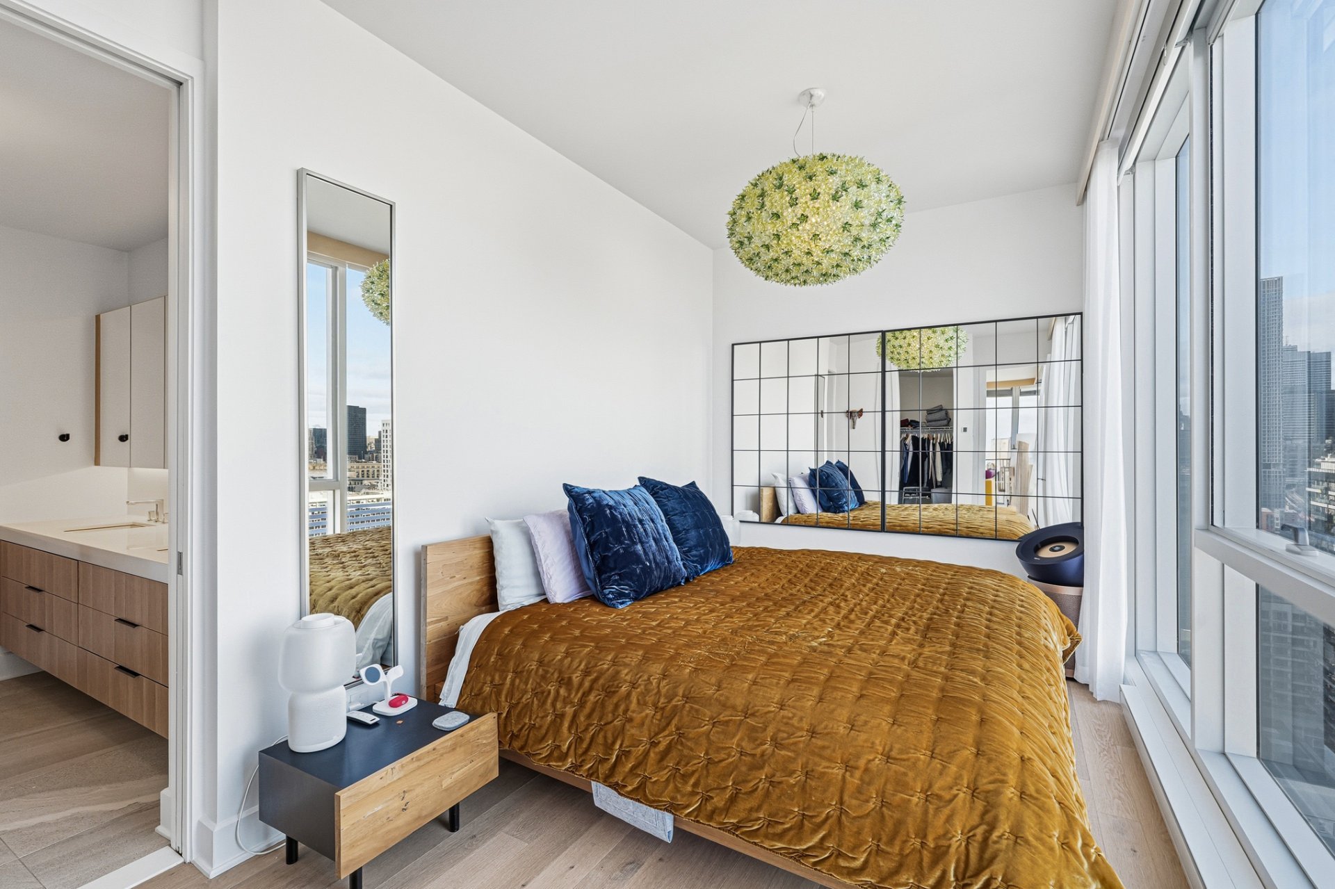 This extraordinary double-corner penthouse, perched on the top floor of the prestigious Mary-Robert project, offers a rare blend of sophistication, panoramic views, and refined contemporary design. With three spacious bedrooms and two full bathrooms, the residence features an expansive open-concept layout enhanced by floor-to-ceiling windows that flood the space with natural light from sunrise to sunset. Its exceptional east, south, and west exposures provide sweeping city, waterfront, and skyline views, creating an impressive backdrop for both everyday living and elegant entertaining. The unit showcases high-end finishes throughout, including premium flooring, a sleek modern kitchen with built-in appliances, luxurious bathroom fixtures, and carefully selected materials that elevate the overall ambiance. Two indoor parking spaces add comfort and convenience to this exclusive offering.