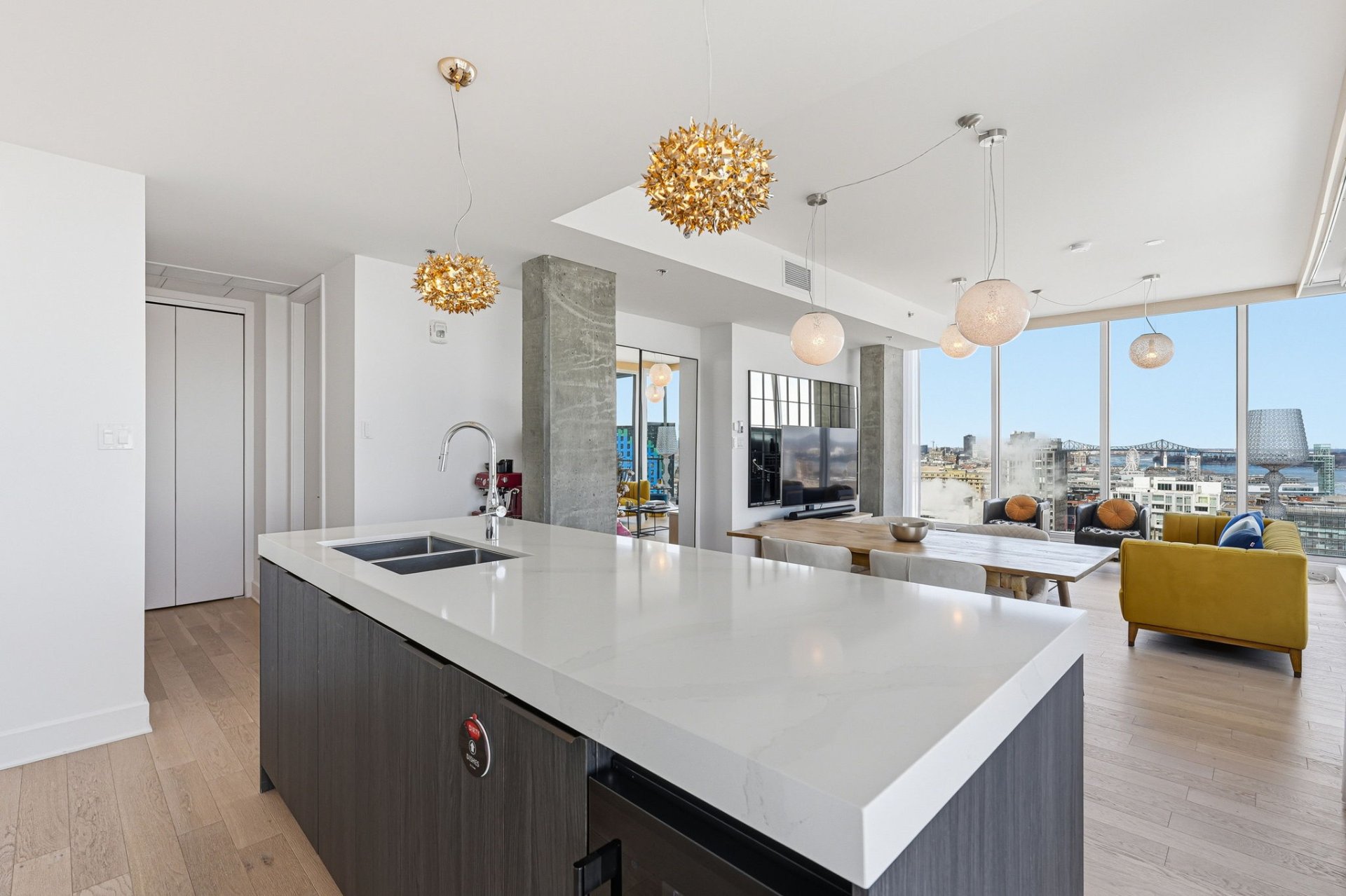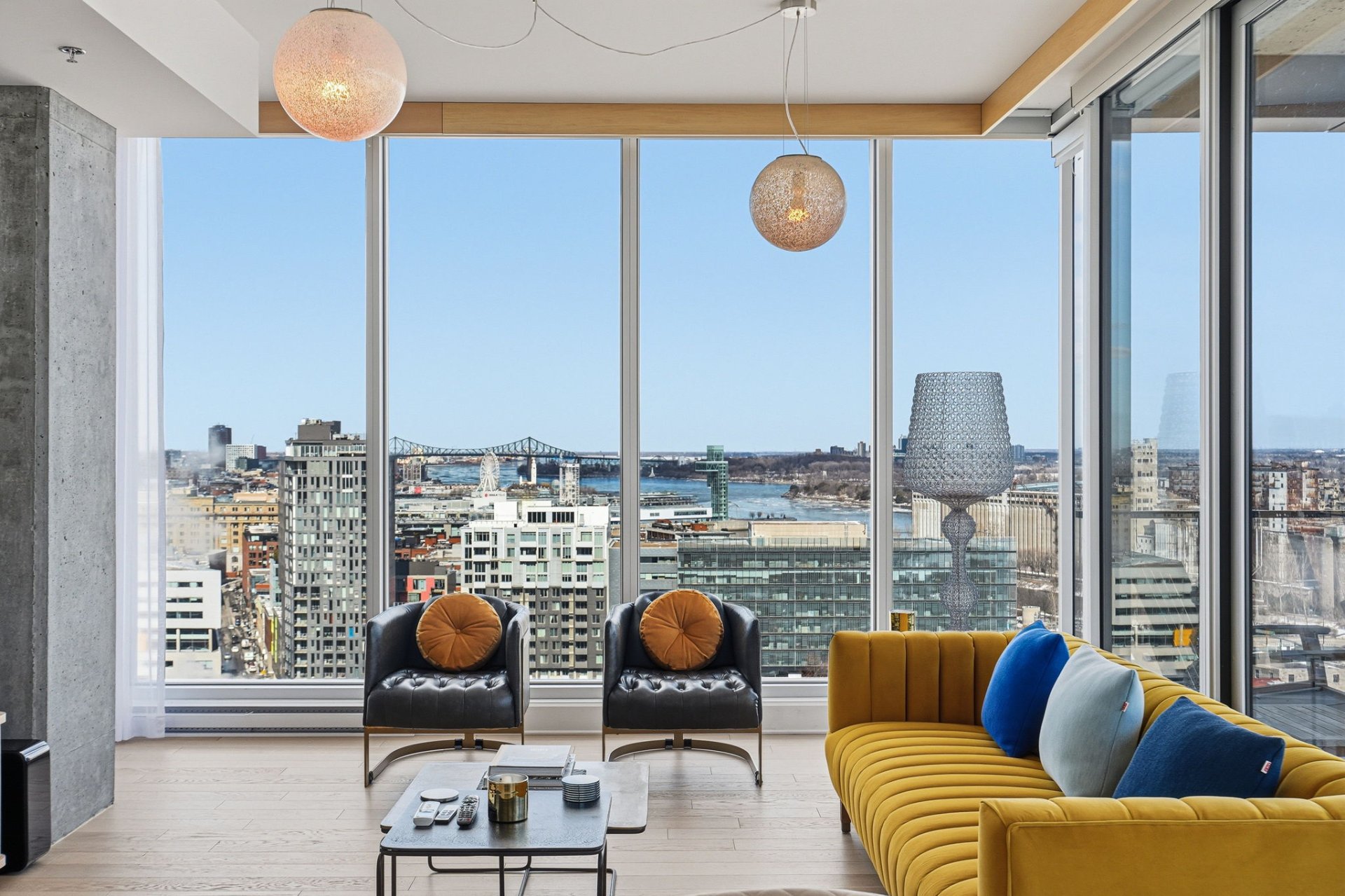 Experience unparalleled luxury in this extraordinary double-corner penthouse on the top floor of the prestigious Mary-Robert. This expansive 3-bed, 2-bath residence offers panoramic east, south, and west views, refined high-end finishes, and an elegant open-concept layout framed by floor-to-ceiling windows. Two indoor parking spaces, world-class amenities, and a premier location steps from metro stations, fine dining, boutiques, and the historic charm of the Old Port.