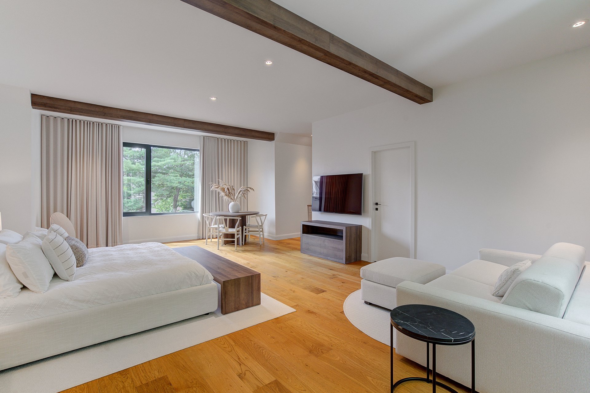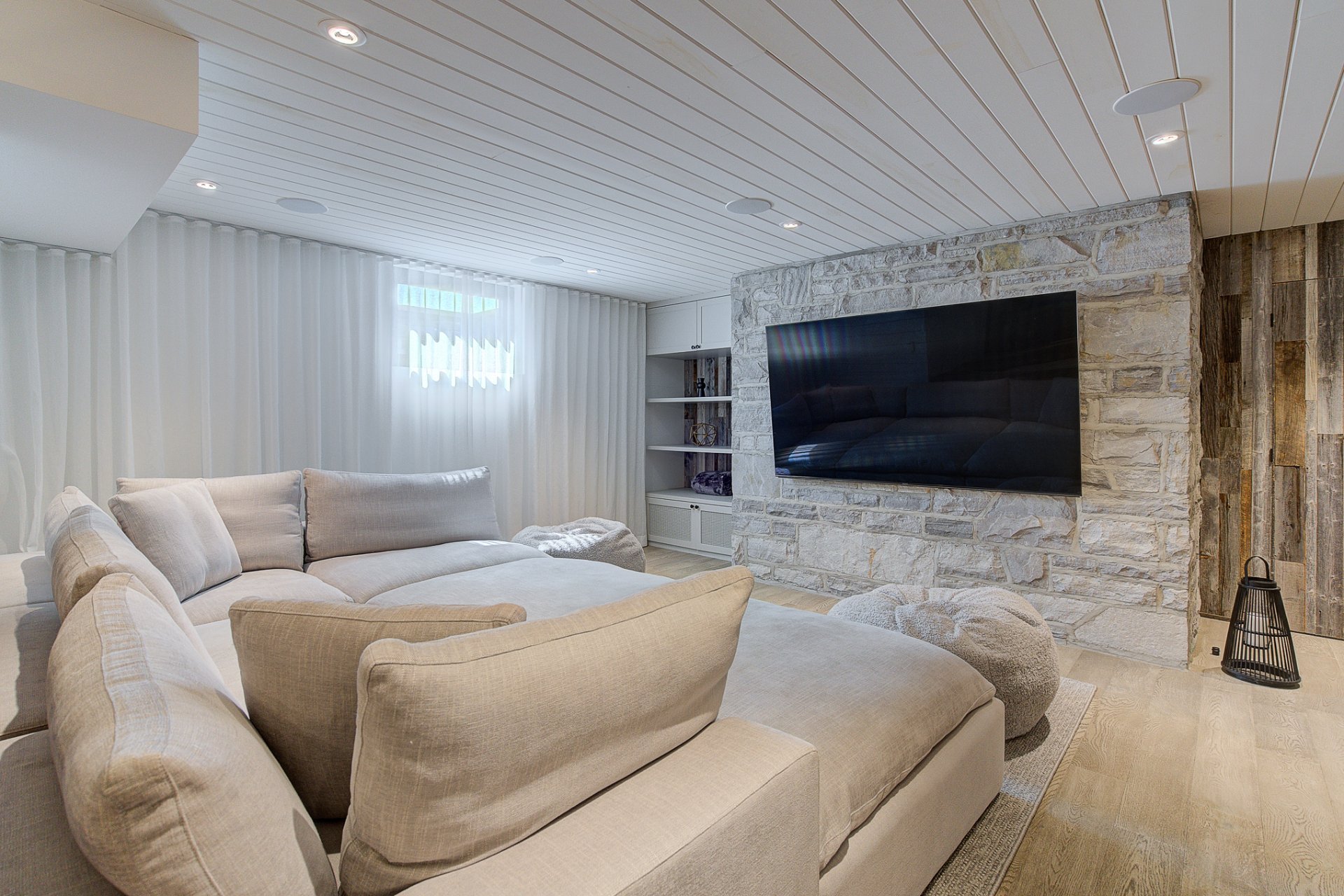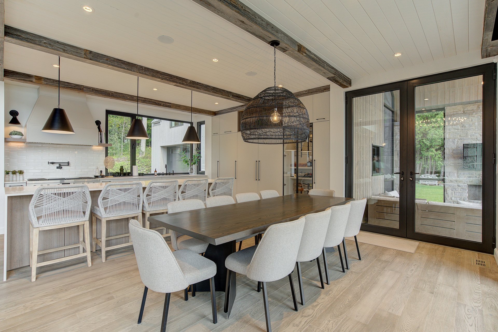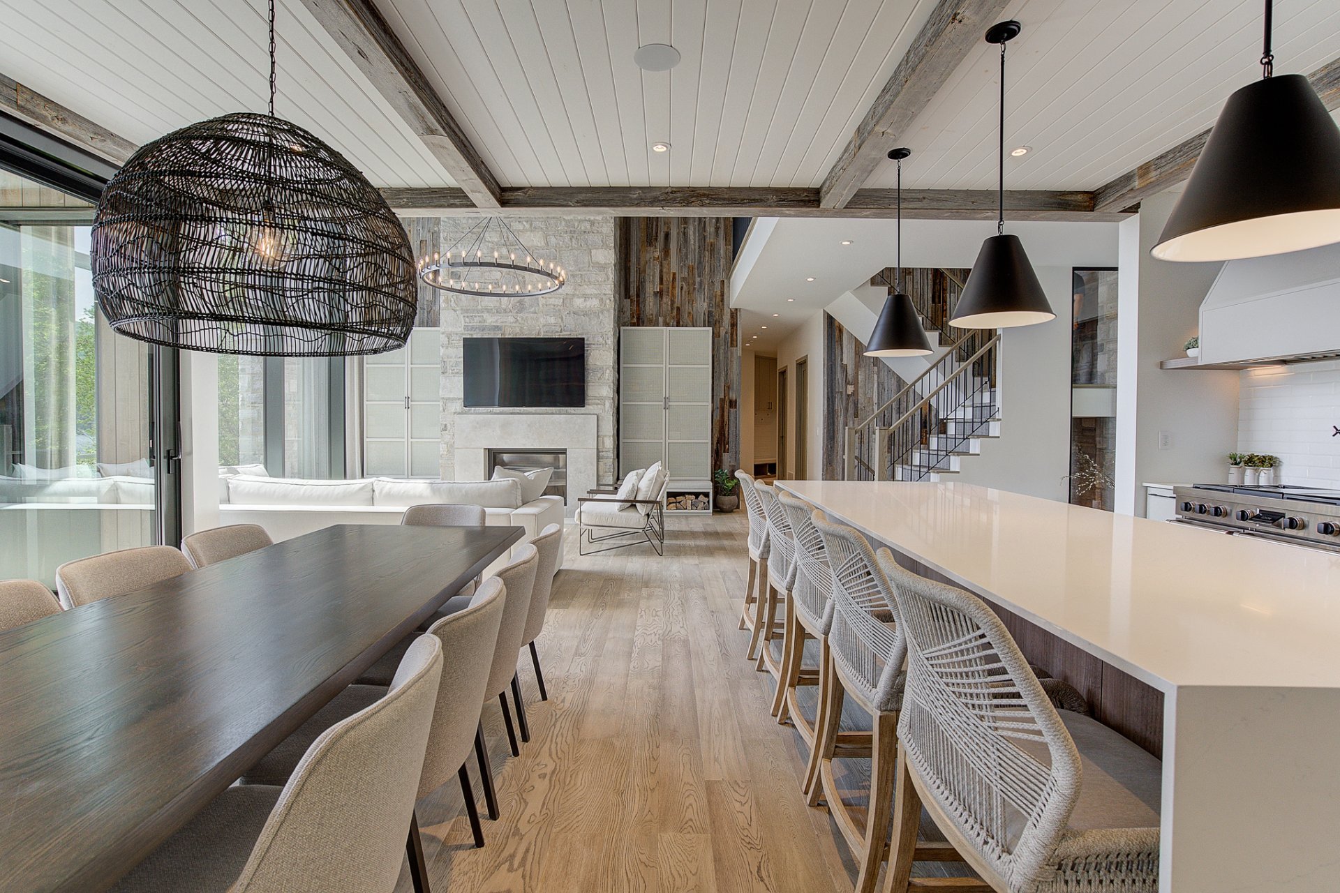 Exceptional materials, such as stone walls, imposing beams, and barn wood, give this home a unique authenticity. Modernity is ensured by high-end equipment, including glycol heating and the Control4 home automation system, which manages lighting, security, sound, and blinds. Fully furnished, the house features pieces from Restoration Hardware and Cabinet P.