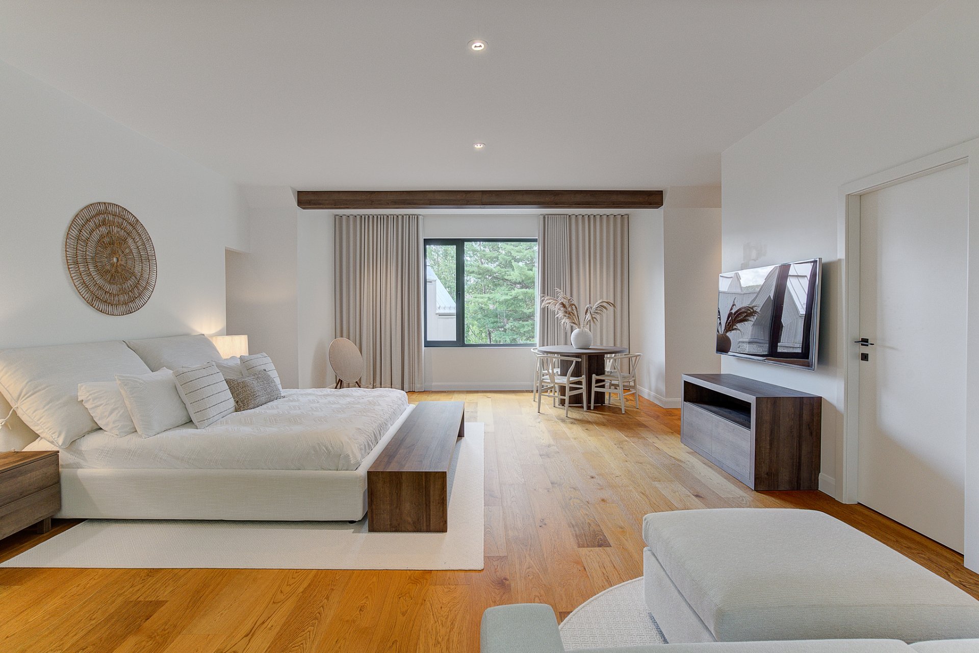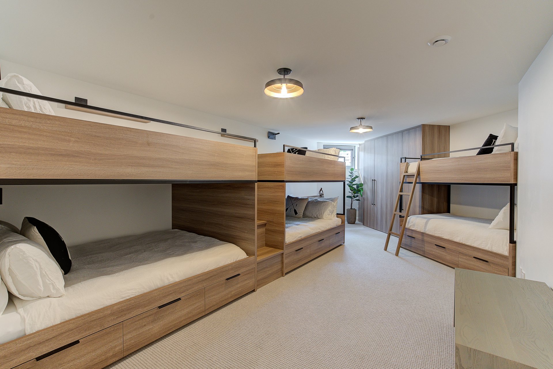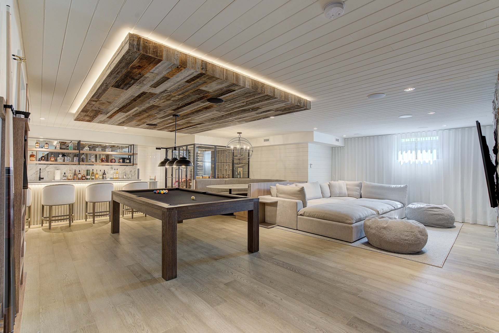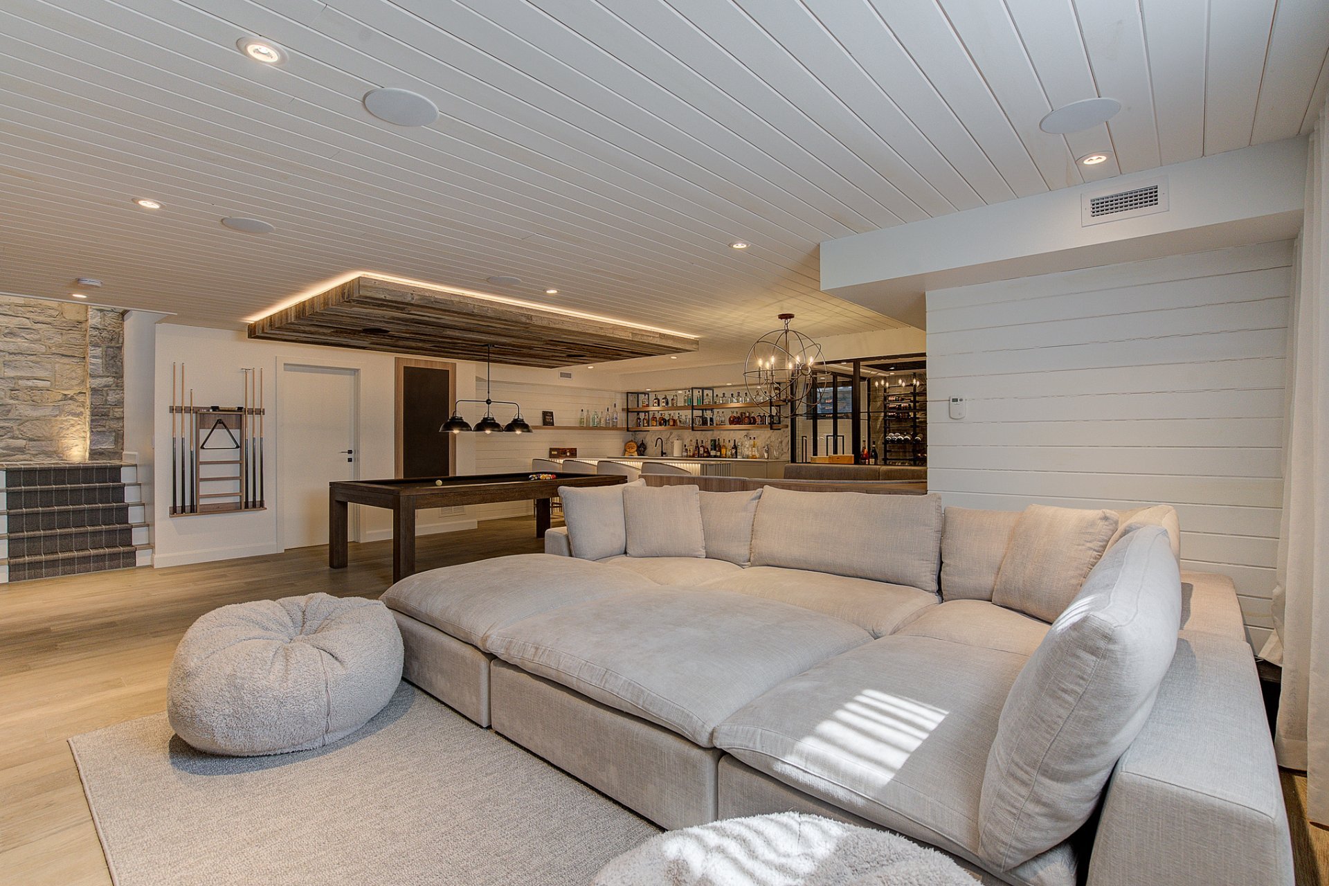The property includes 5 bedrooms, one of which is in the basement with 4 queen beds and 2 double beds to accommodate family and friends. With 3 full bathrooms and a powder room, the basement is designed for entertainment, featuring a pool table, bar, banquette, and a beautifully appointed wine cellar for wine enthusiasts.