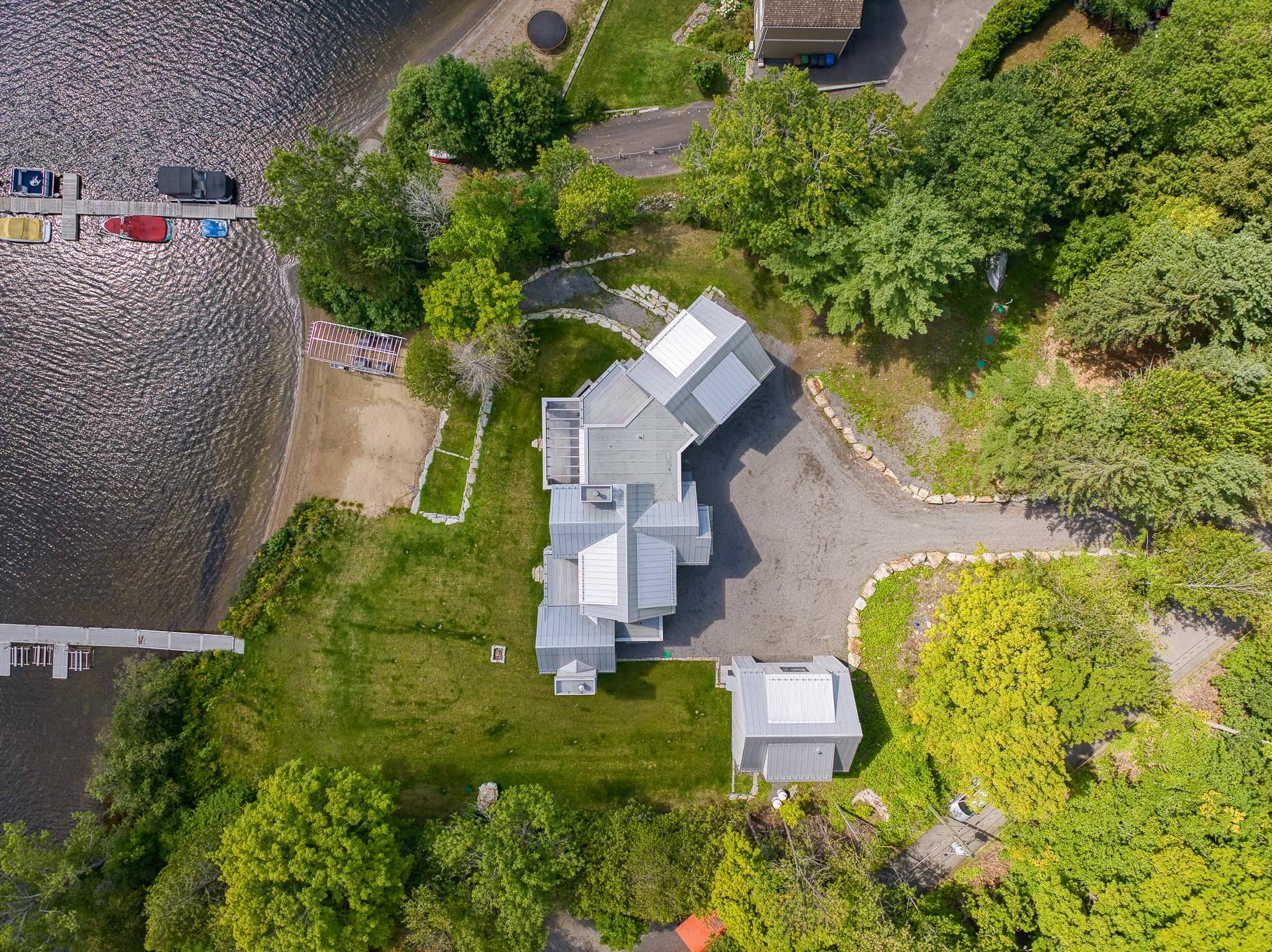 The lot of over 50,000 square feet, enhanced with a private gate, benefits from optimal sunlight from morning until late afternoon thanks to its south-facing orientation. Enjoy a private sandy beach for direct lake access and a customizable outdoor space to create your own tailored oasis.