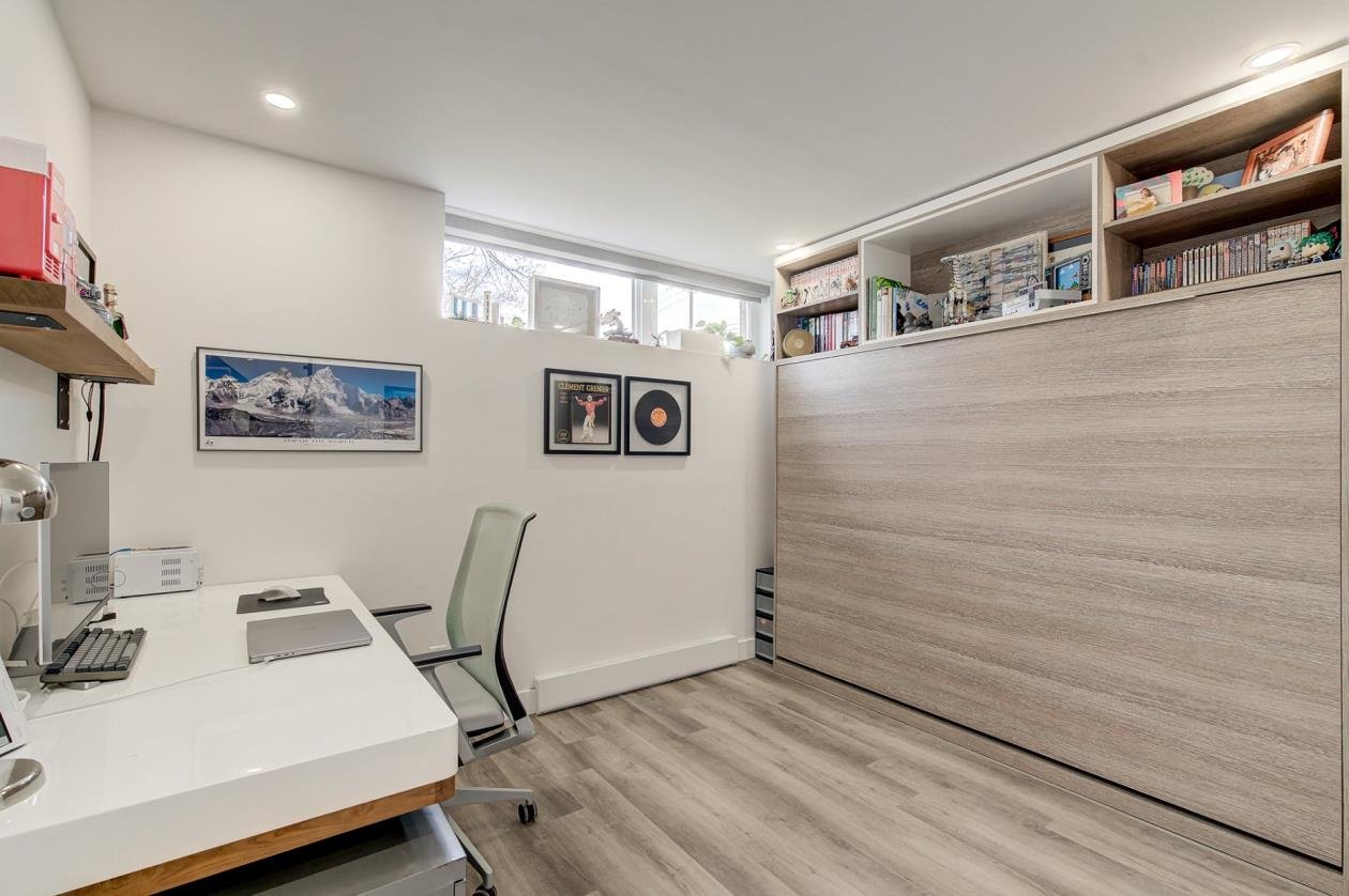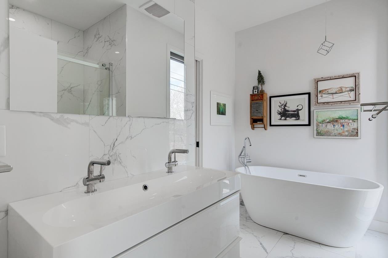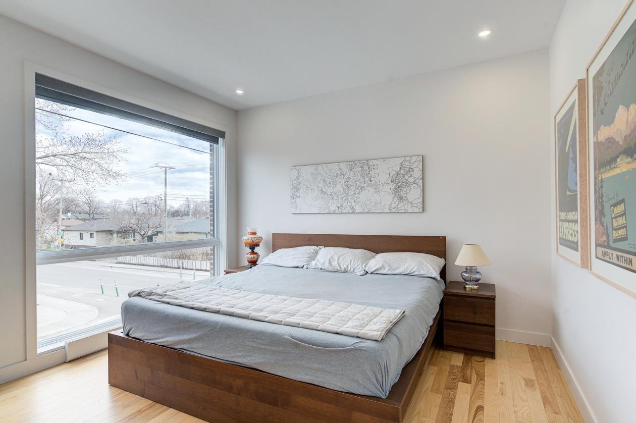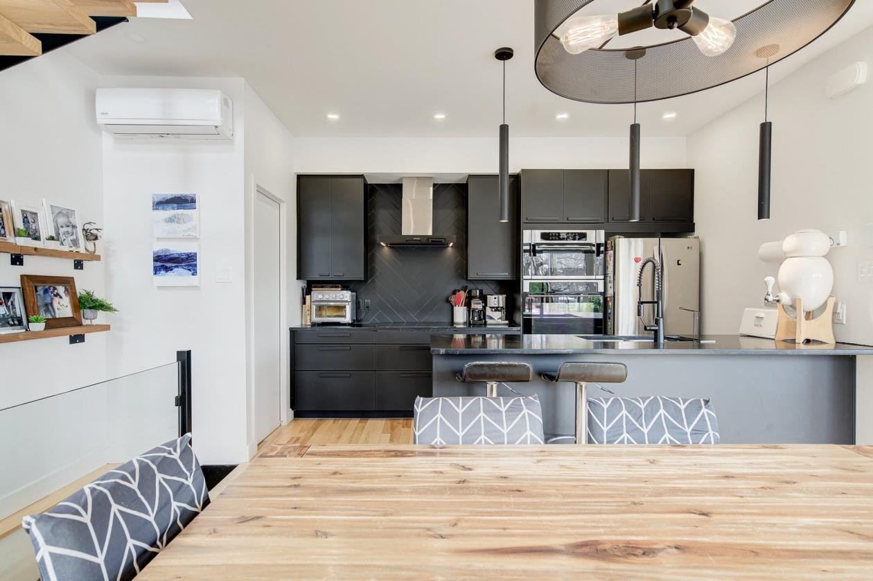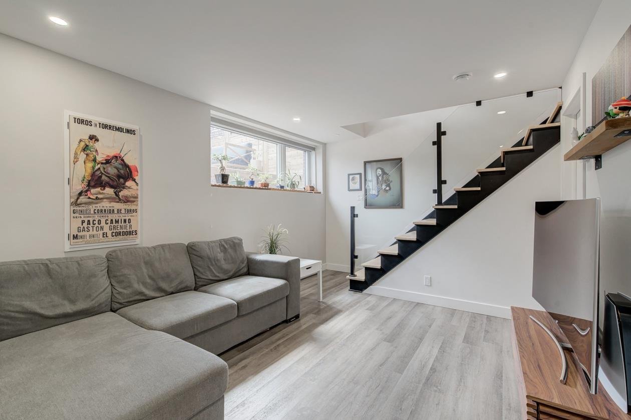Elegant semi-detached townhouse (designed by ADHOC architectes) located in a sought-after family neighborhood, close to schools, parks, and amenities. Spread over three levels, it offers four bedrooms, including three on the upper floor. The primary suite features a walk-in closet and an ensuite bathroom. A second full bathroom is also located on the upper level, while a powder room with a laundry area is found in the basement. A bright living area with a high-end kitchen and walk-in pantry, family room, integrated garage, and landscaped yard complete this property.