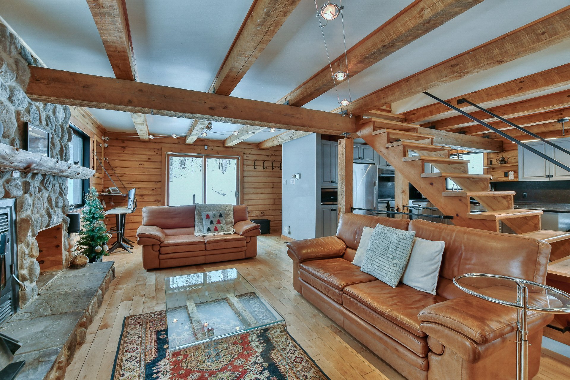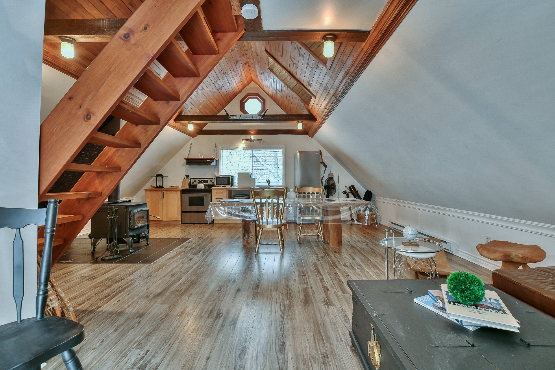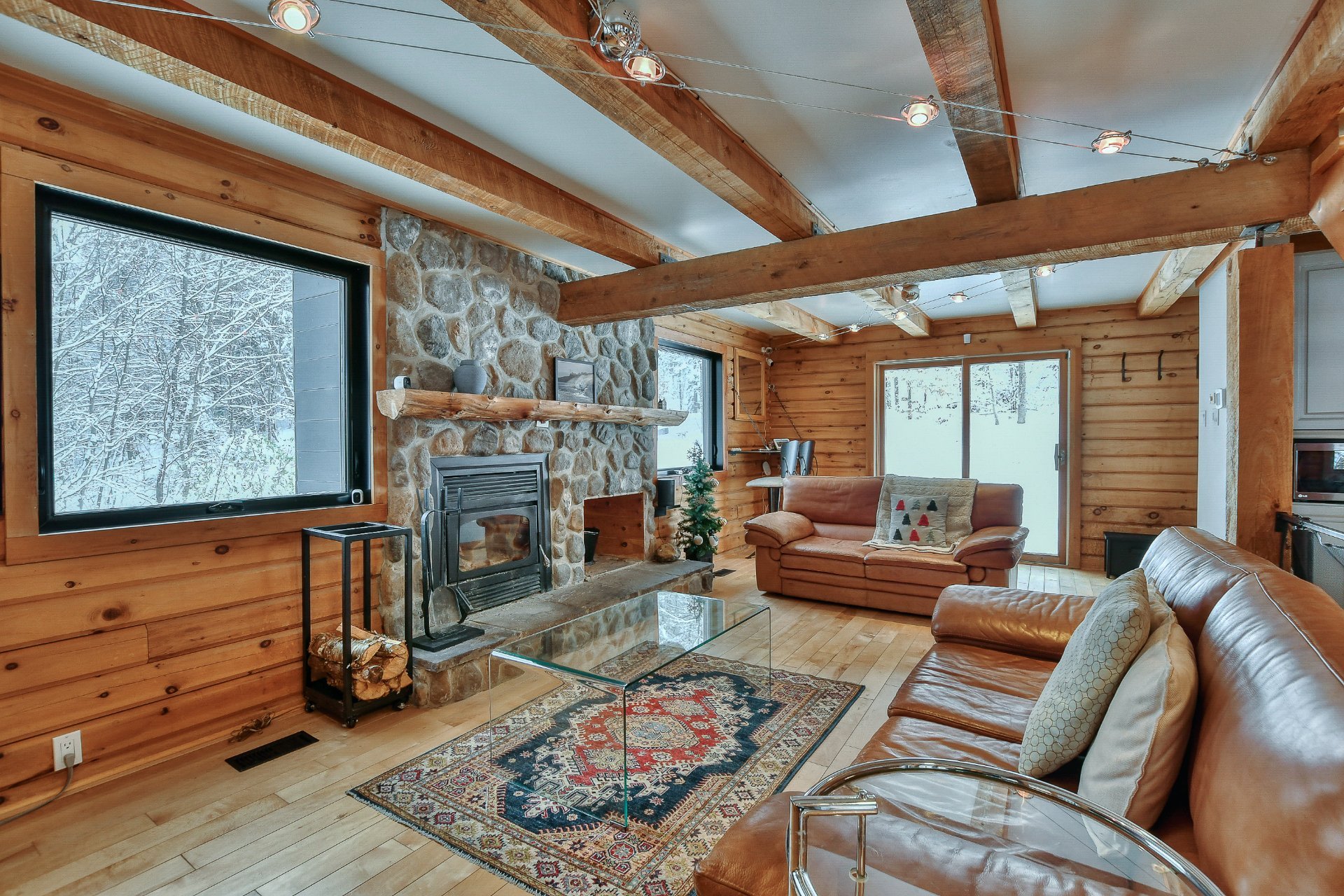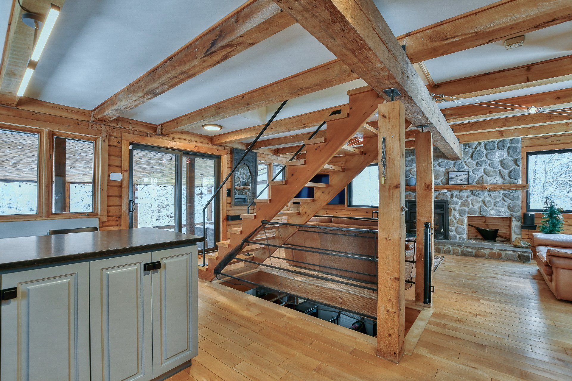 Beautiful log home with a double garage and guest quarters, set on a large wooded lot. A portion of the property (3,000 sq. ft.) lies directly on the magnificent Lake St. François-Xavier and includes a dock. Ideally located along the Aerobic Corridor, in one of the most peaceful and secure areas.