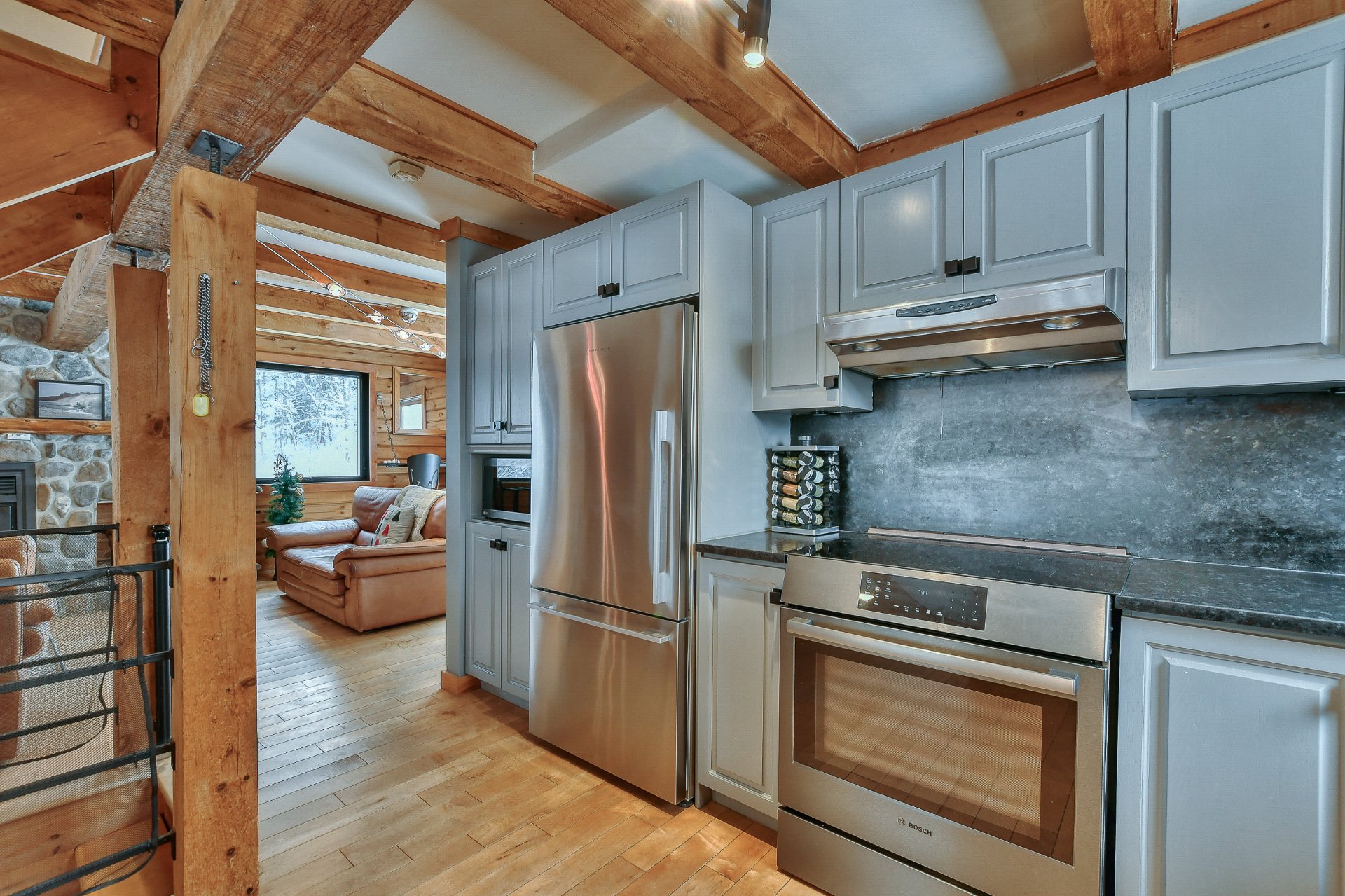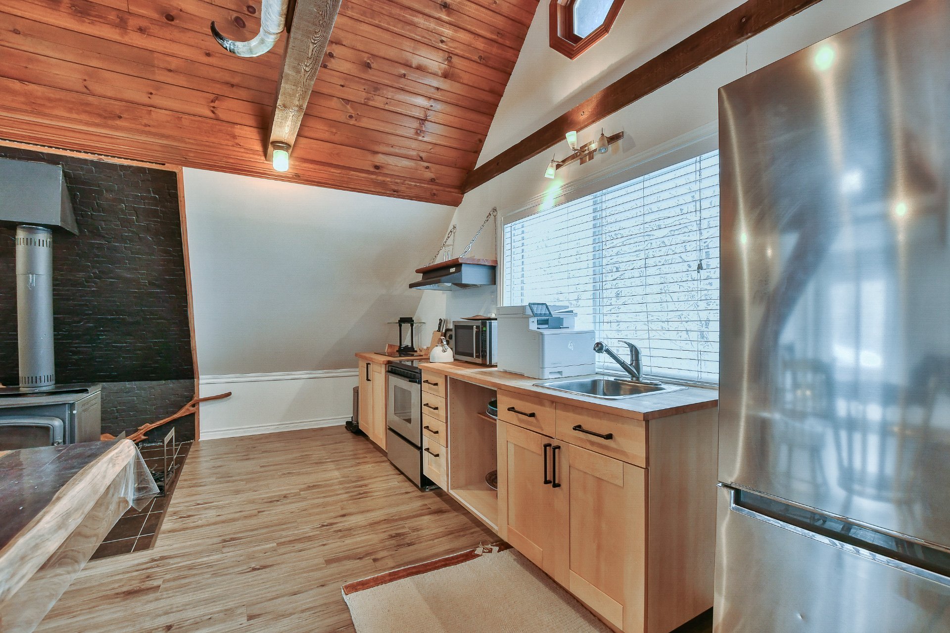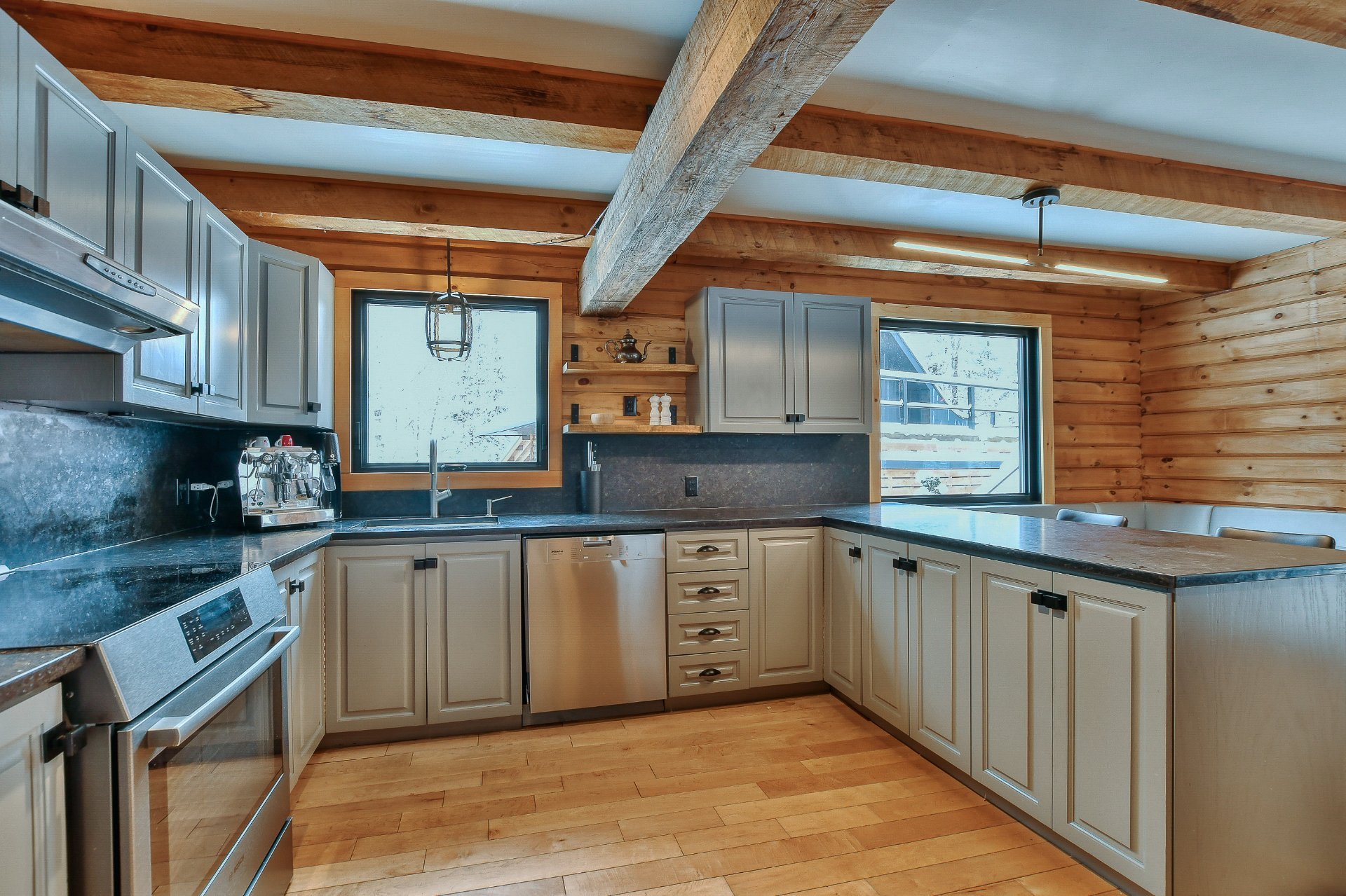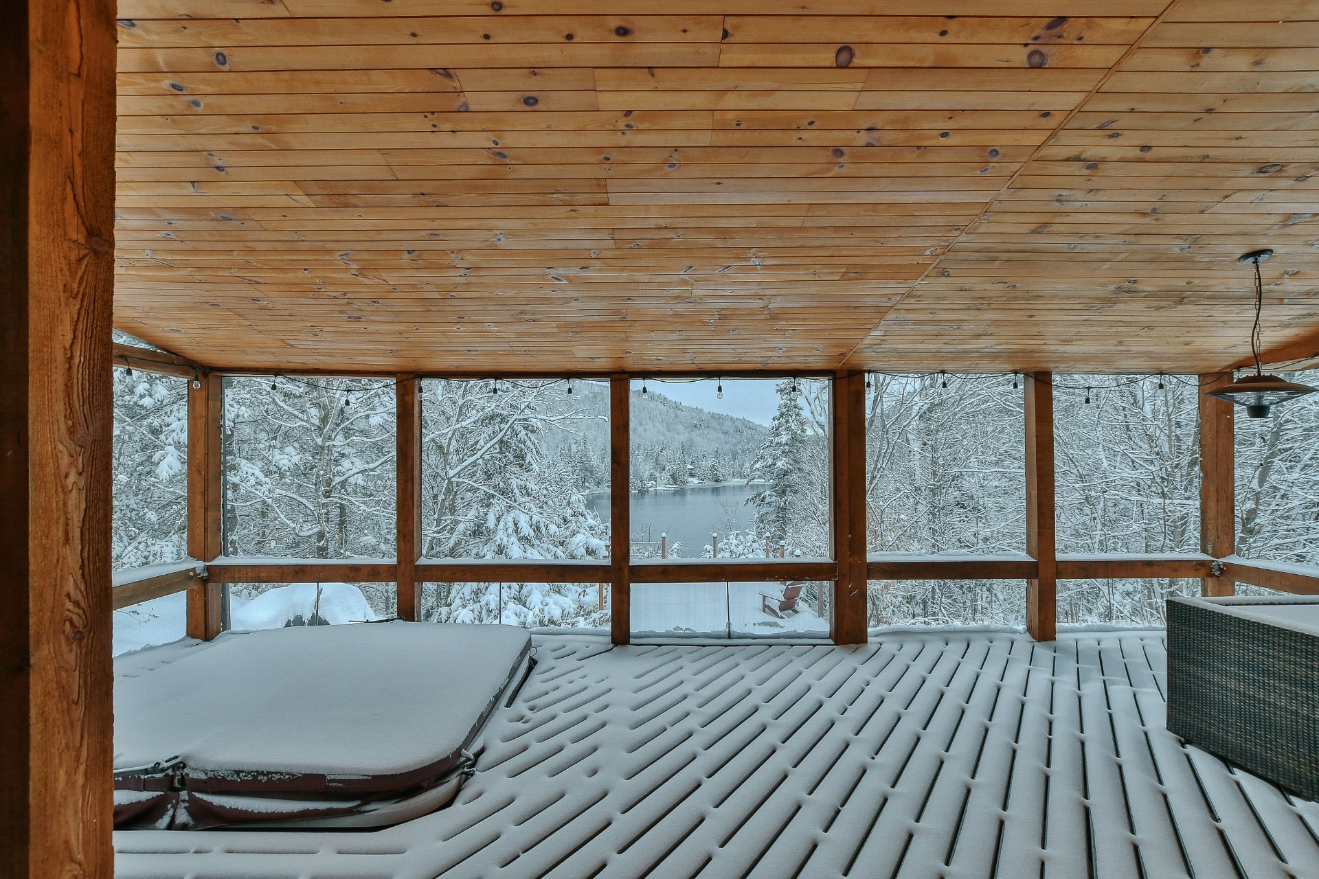 Beautiful log home with a double garage and guest quarters, set on a large wooded lot. A portion of the property (3,000 sq. ft.) lies directly on the magnificent Lake St. François-Xavier and includes a dock. Ideally located along the Aerobic Corridor, in one of the most peaceful and secure areas.