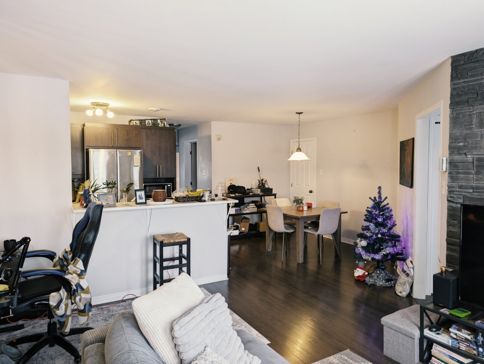 Bright and spacious 2-bedroom condo ideally located near the Dix30 and REM. This well-maintained unit offers an open and functional layout with abundant natural light, quality finishes, and generous living spaces. Features a full bathroom with separate shower and bathtub, a private balcony, and a storage locker. Equipped with wall-mounted A/C and heat pump, electric baseboards, and includes fridge, stove, washer and dryer. Two outdoor parking spaces included. Close to shops, restaurants, services and public transit.