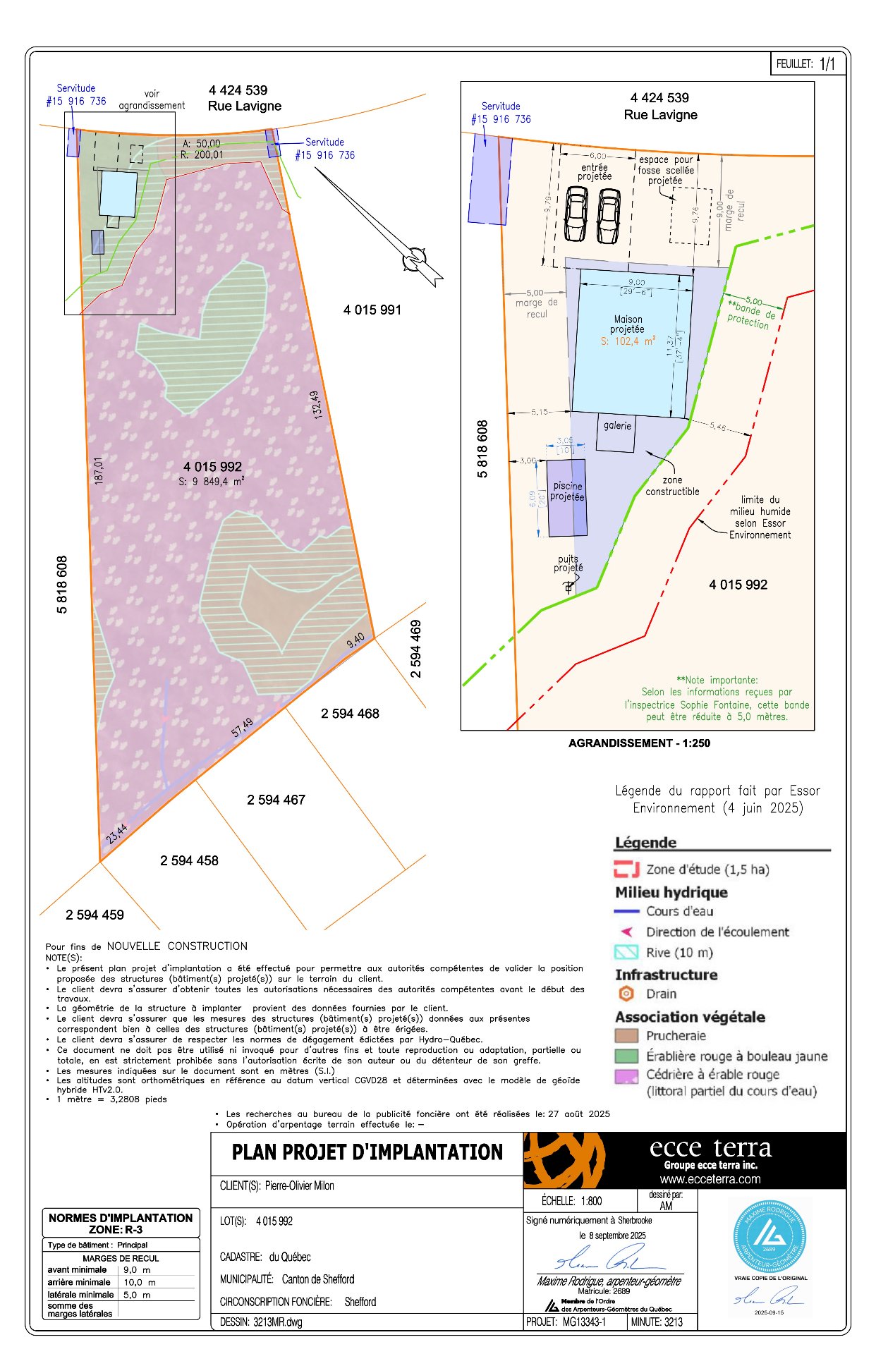 ** Recommendation from the city: A PROJECT IMPLEMENTATION PLAN IS AVAILABLE. It was prepared by a land surveyor from the firm ECCE TERRA, which demonstrates that it is possible to build a residence that meets the city's criteria in the remaining buildable space.