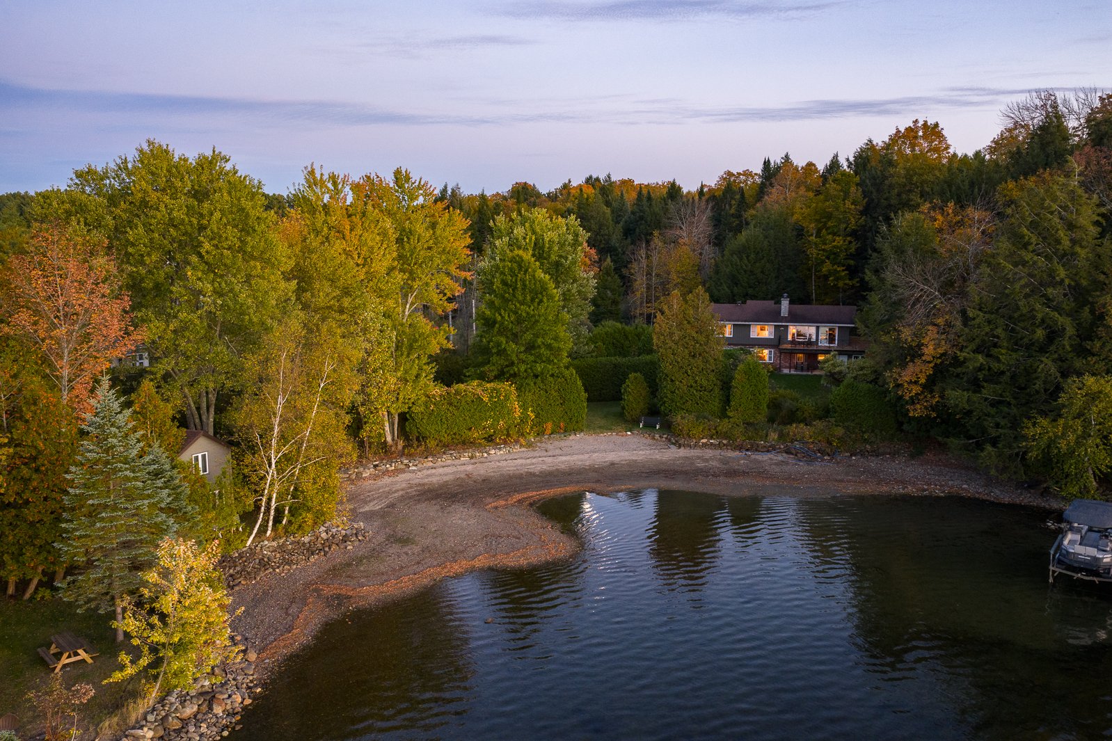 * ON THE SHORES OF LAKE MEMPHREMAGOG * PRIVATE SANDY BEACH * This remarkable 1.27 acre Exceptional Domain presents an extraordinary opportunity to own a piece of paradise. With 206 linear feet of Waterfront, the property offers breathtaking views of the crystal-clear waters, beautiful sunsets and the surrounding mountain landscape. Every detail has been thoughtfully considered to optimize lakeside living; spacious rooms with a breathtaking view of the lake, large terrace for unforgettable memories, a direct access to the beach on one of Quebec's most prestigious lakes, plus 2 summers's chalet. Paradise less than 80 mins from Montreal awaits.