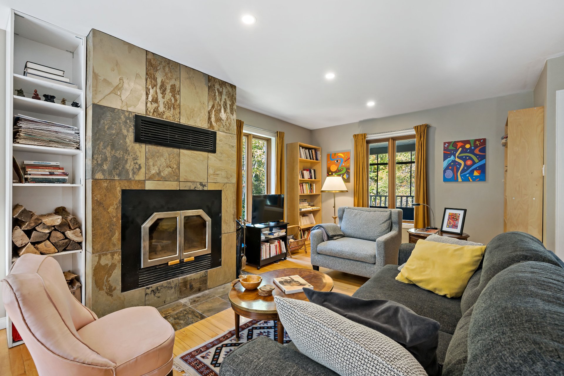- Wood fireplace