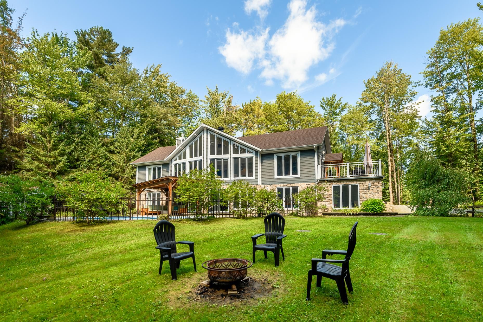 Nestled in the heart of a beautiful wooded area, this spacious property offers an exceptional living environment with a trail at the back leading to privileged access to Lake Brome. Designed to accommodate six bedrooms with its three bathrooms, it is ideal for a large family or for establishing a home-based professional practice with its private exterior access. The house benefits from abundant natural light thanks to its generous windows and a garden-level floor that maximizes brightness and provides direct access to the in-ground pool. An integrated garage, a large terrace, and a carport perfectly complete this home.