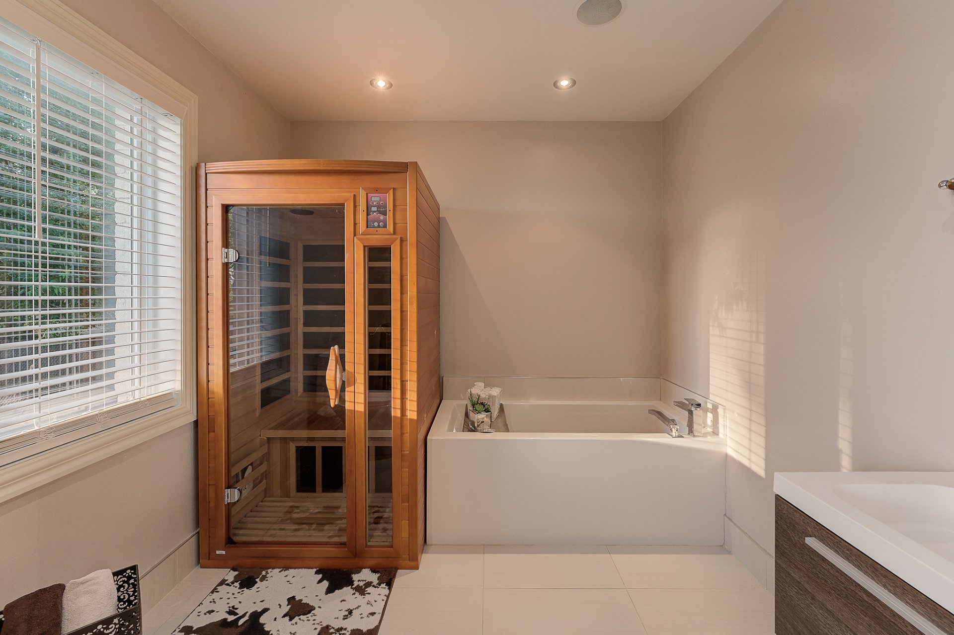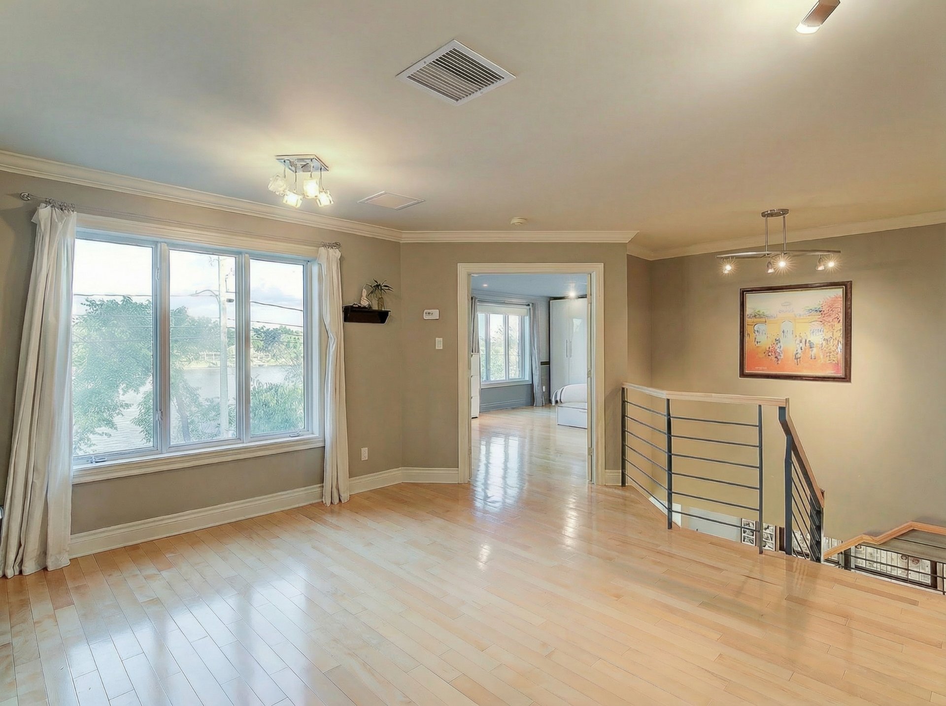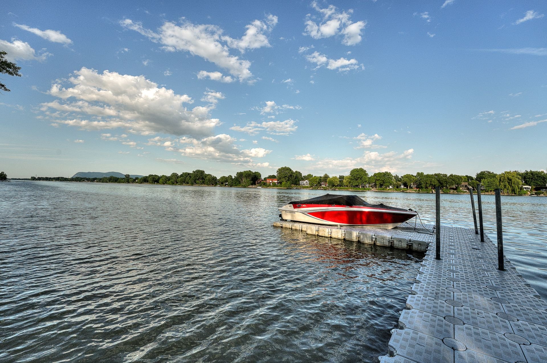 Gracefully nestled on over 39,000 sq. ft. along the serene banks of the Richelieu River, this distinguished residence embodies timeless elegance and elevated living. Bathed in natural light, its open-concept layout features a sculptural staircase, radiant heated floors, a chef's kitchen adorned with granite, a private sauna, EV charging station, double garage, and generous parking for up to 8 vehicles. Manicured grounds, an intimate firepit lounge, and a private dock complete this rare sanctuary of sophistication and quiet grandeur.