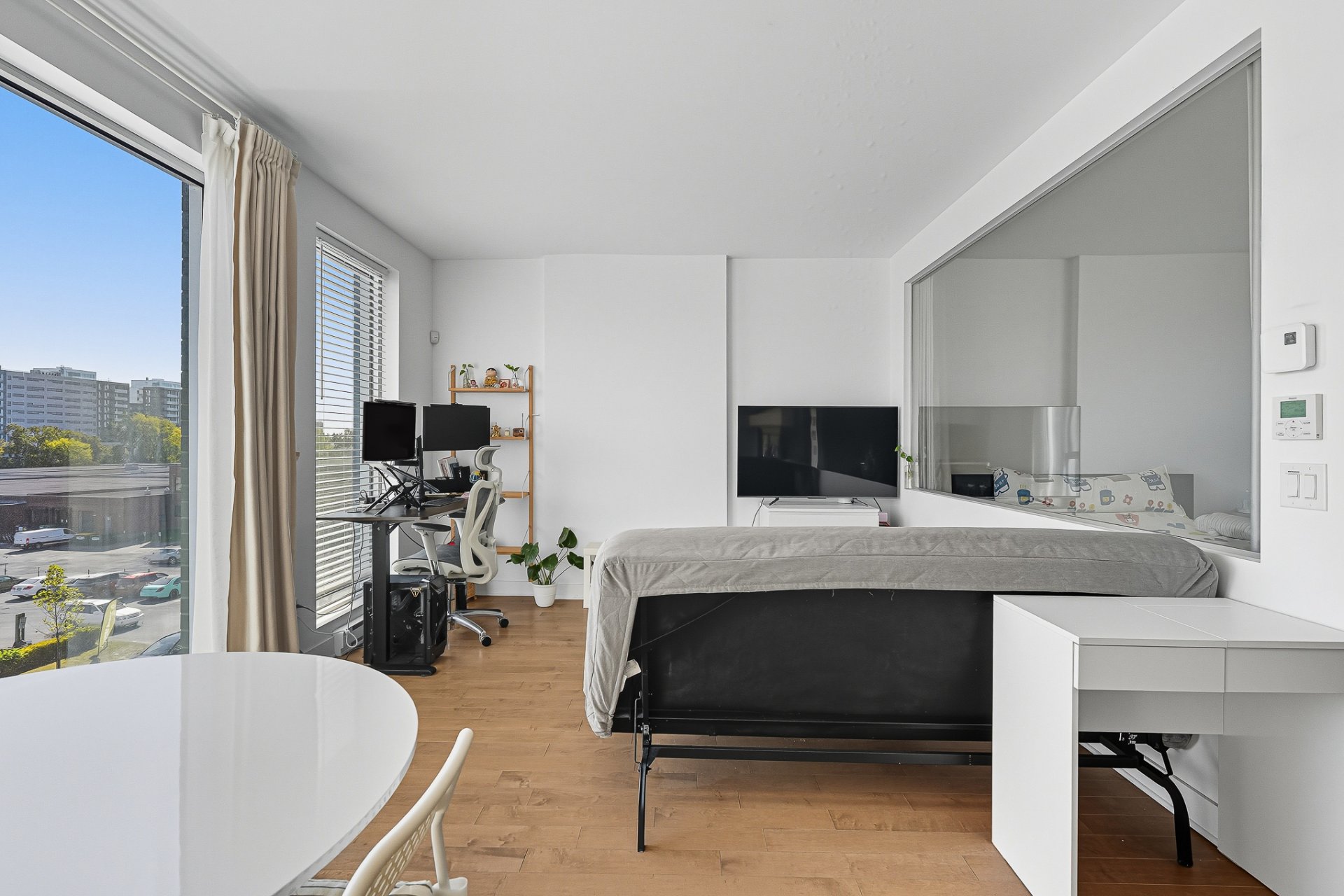 Lovingly cared for by the owner! Bright and inviting 1-bedroom condo in Condo Rouge Phase 6 featuring floor-to-ceiling windows, tasteful decor, wood floors, and wall-mounted A/C. Ideally located in The Triangle near Town of Mount Royal, just steps from Namur Metro, close to highways, REM station, schools, parks, and local shops. Perfect for anyone seeking comfort, convenience, and a welcoming community vibe!