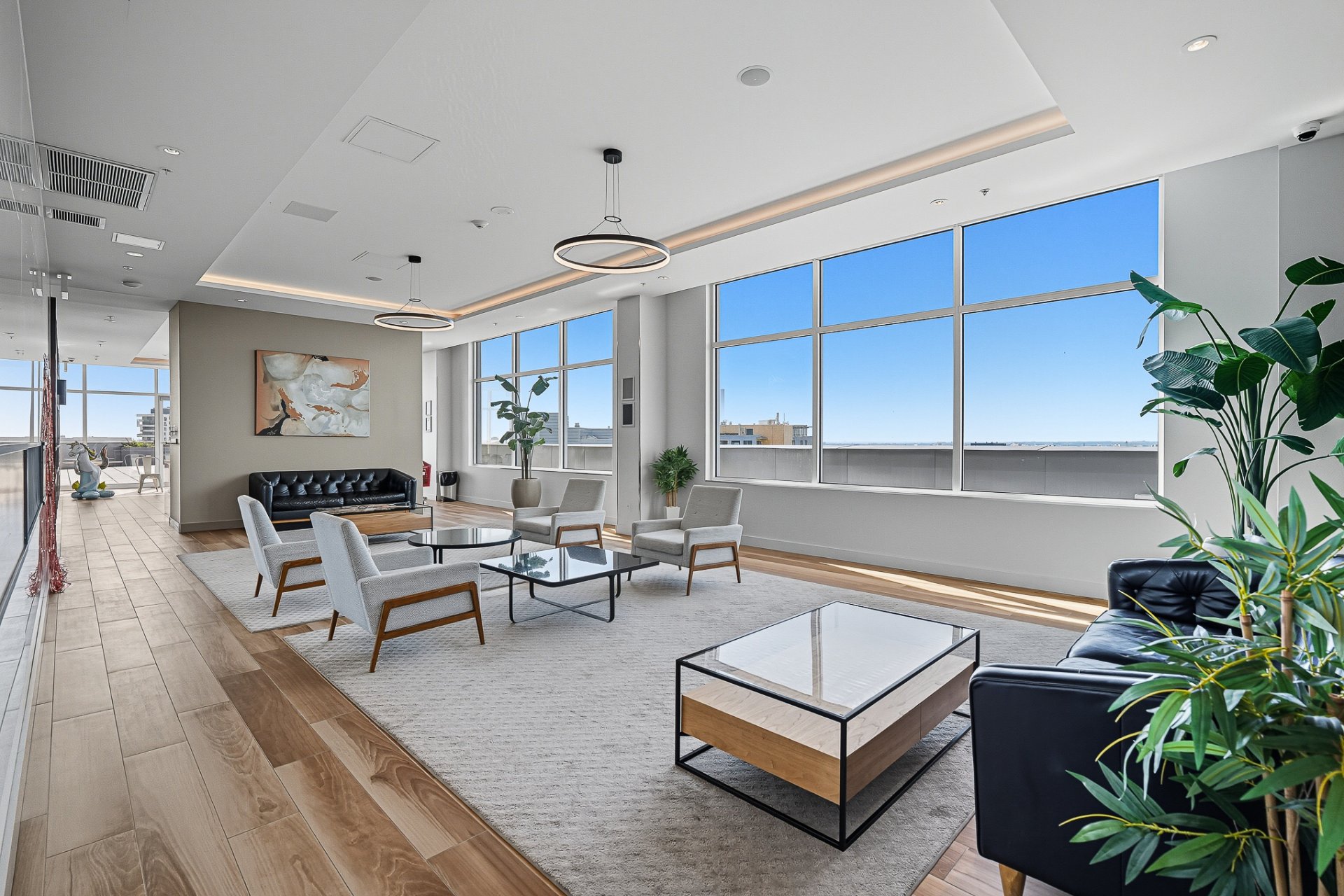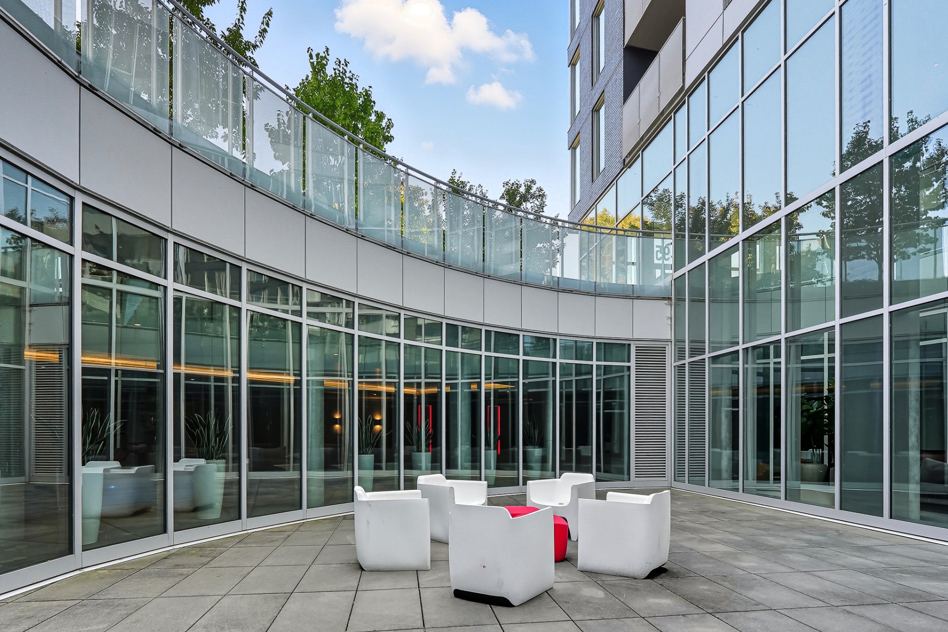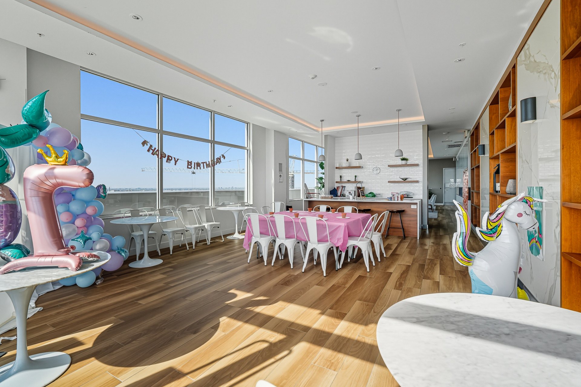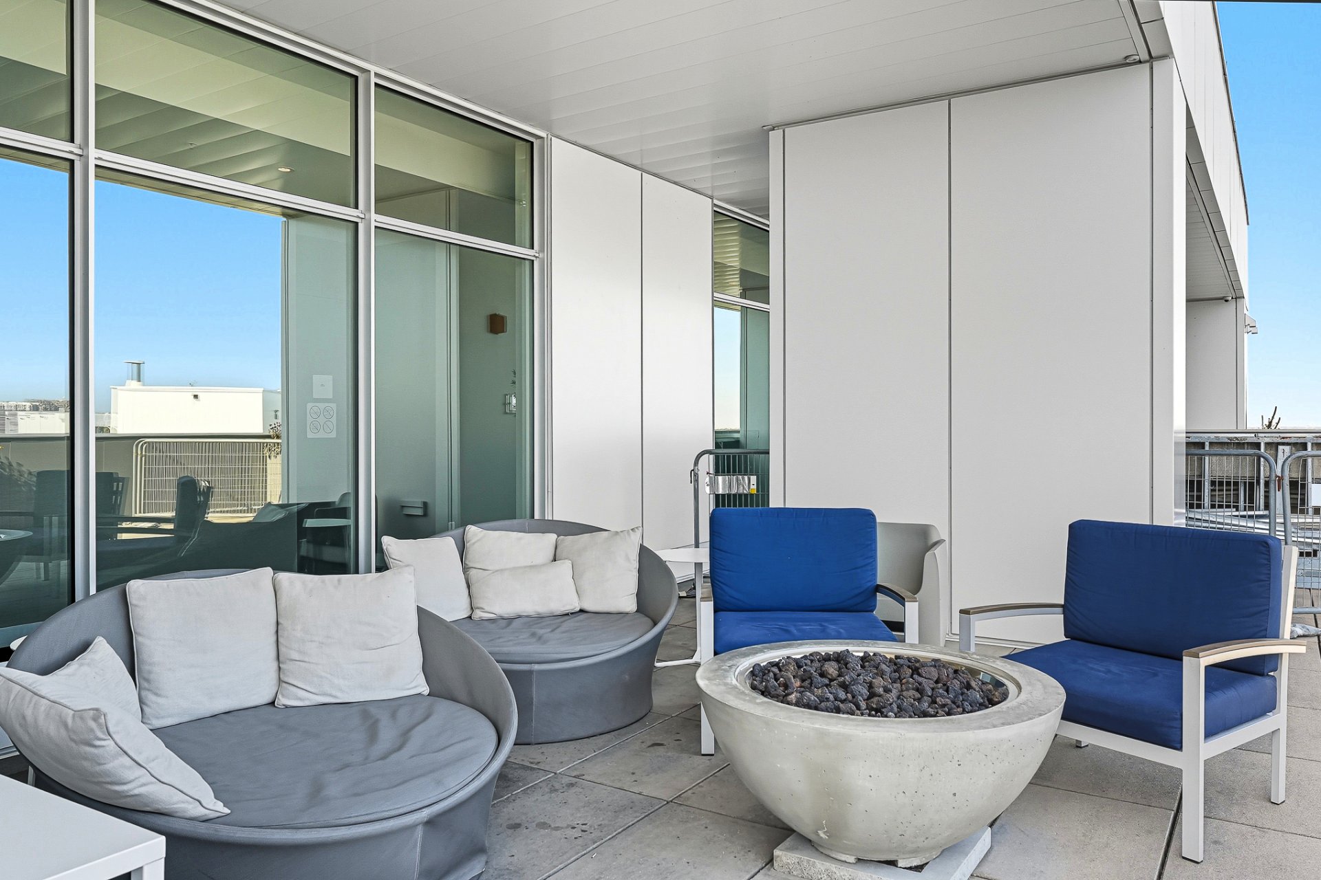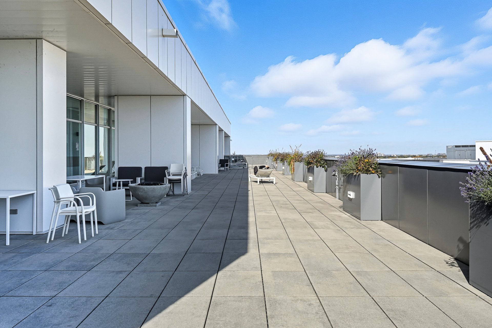 - A rooftop terrace offering breathtaking city views, complete with lounge chairs, parasols, BBQs, and a gas fireplace