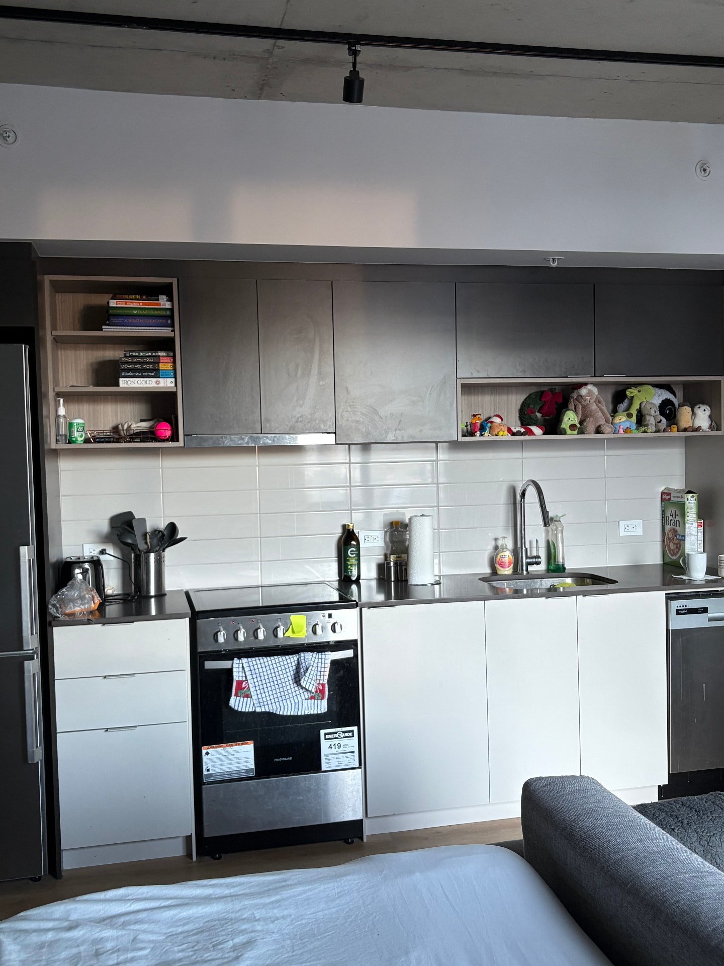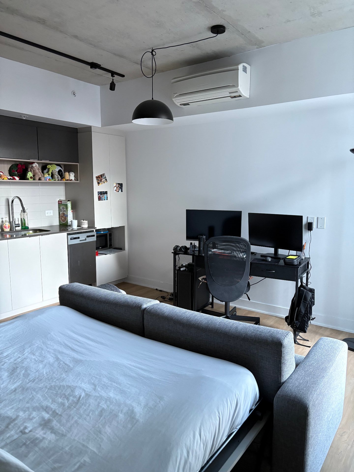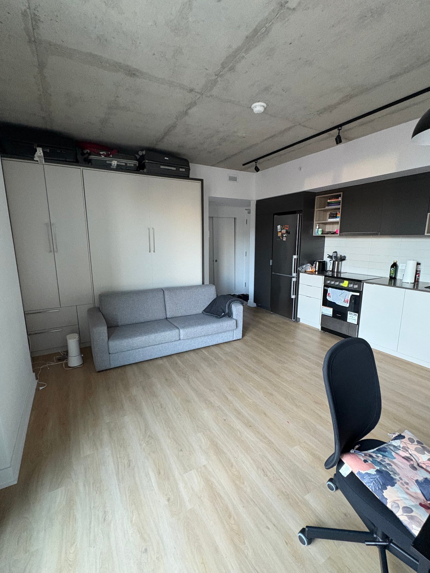 The studio benefits from an intelligent layout featuring a Murphy bed that maximizes space and flexibility. Large windows brighten the living area and offer dynamic views of the Quartier des Spectacles. The unit is all-included, making it practical and budget-friendly. Furniture can be purchased from the outgoing tenant for added convenience.