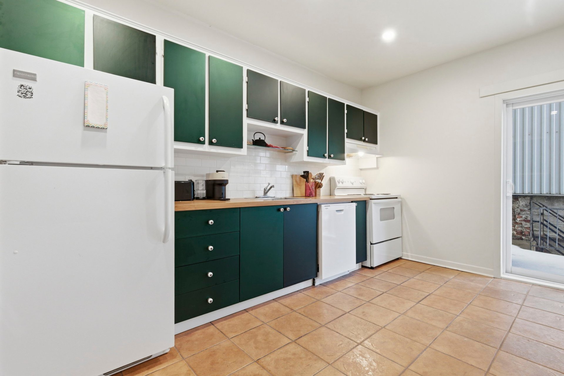 Occupation; 1st of July. Plateau on the limits of Mile-End, 2 bedroom unit with exclusive outdoor space. Household appliances; oven, refrigerator, washer and dryer, dishwasher. Parking on the street. Electricity, heating, hot water payable by tenants. Minimum 12 month lease, non-smoking unit, no dogs allowed without exception, proof of employment and/or credit check and references required.