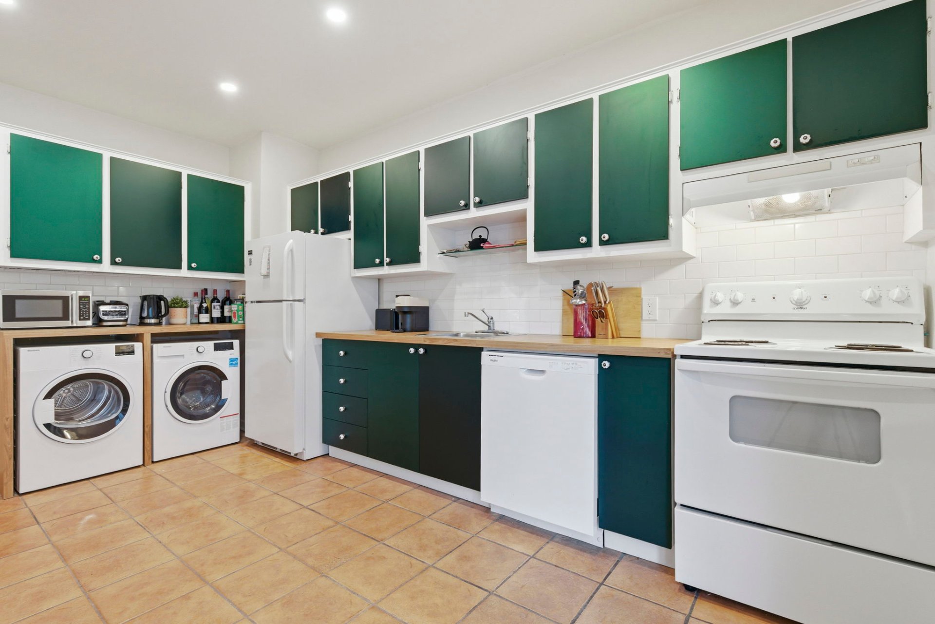 - refrigerator, dishwasher, cooktop oven, washer, and dryer.