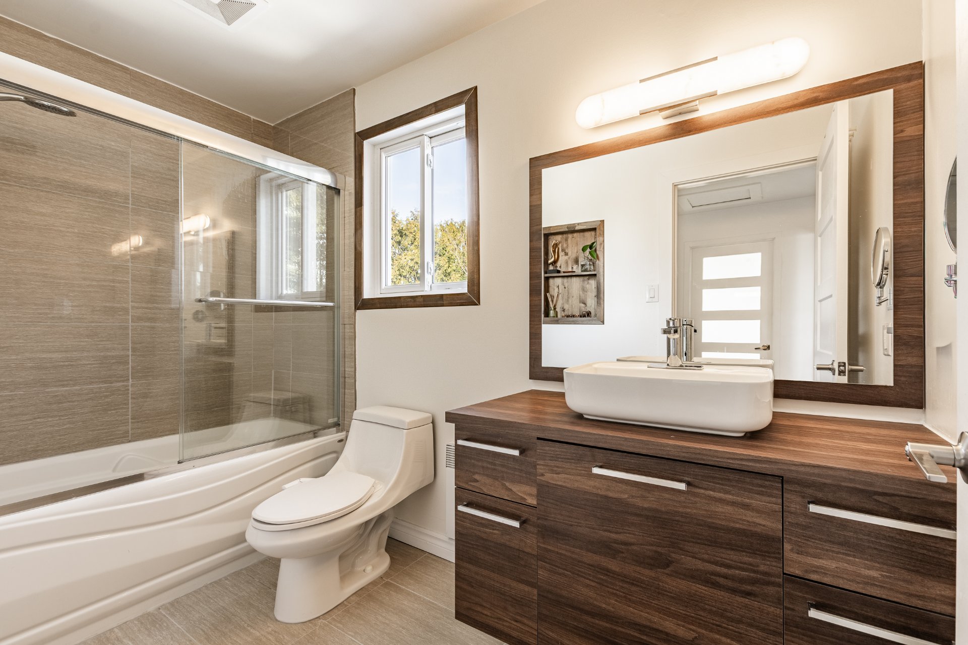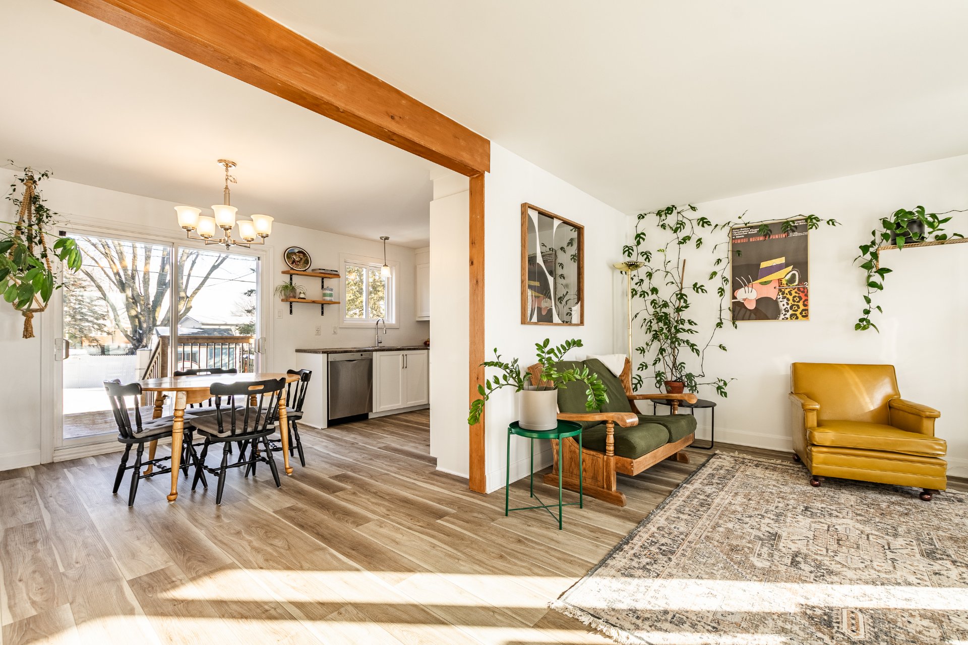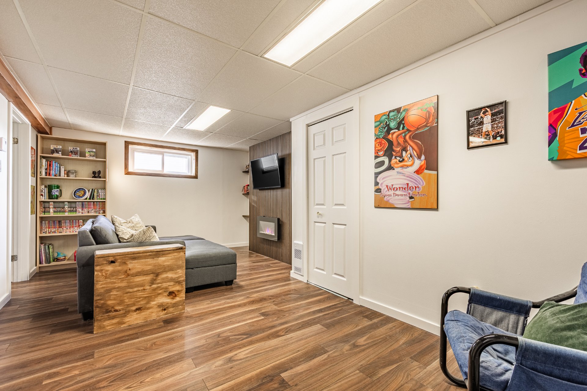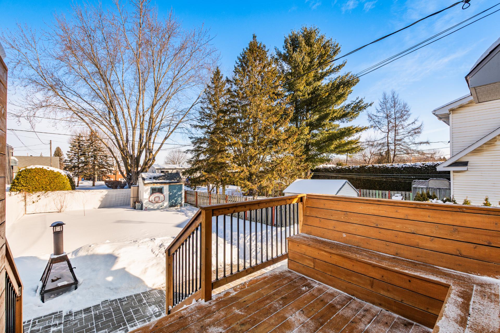 Charming semi-detached home offering 3 bedrooms, 1 full bathroom and 1 powder room, ideally located directly across from Parc de la Joie-de-Vivre. Landscaped lot with a large wooden deck and privacy wall, perfect for entertaining. Asphalt driveway with parking for 3 vehicles. Two bedrooms on the upper level, including a spacious primary bedroom that could easily be divided to create an additional bedroom. Finished basement featuring a family room, bedroom, storage space and laundry area. Quick access to Highways 10 and 35, in a sought-after family-friendly neighborhood close to schools and services.